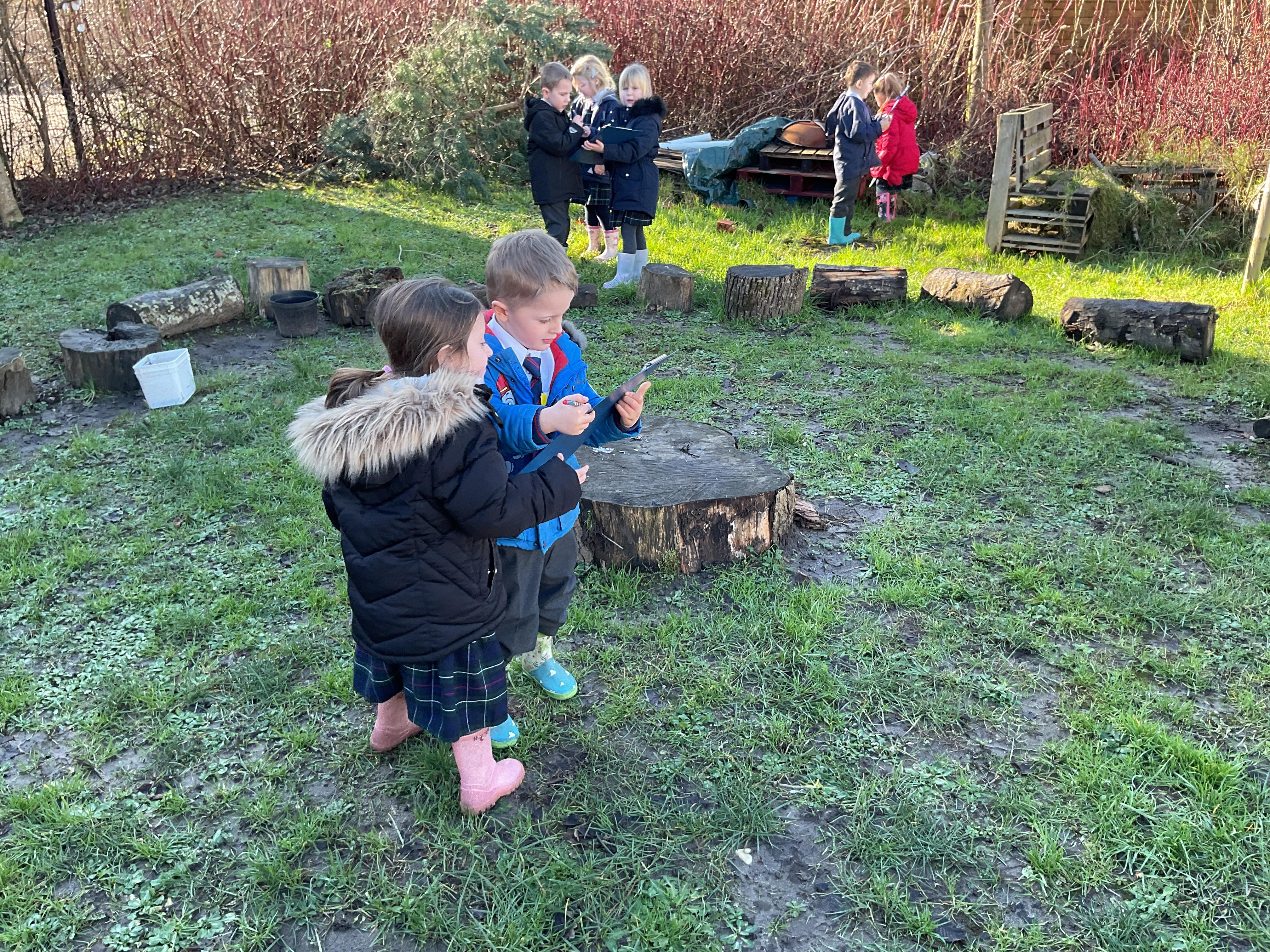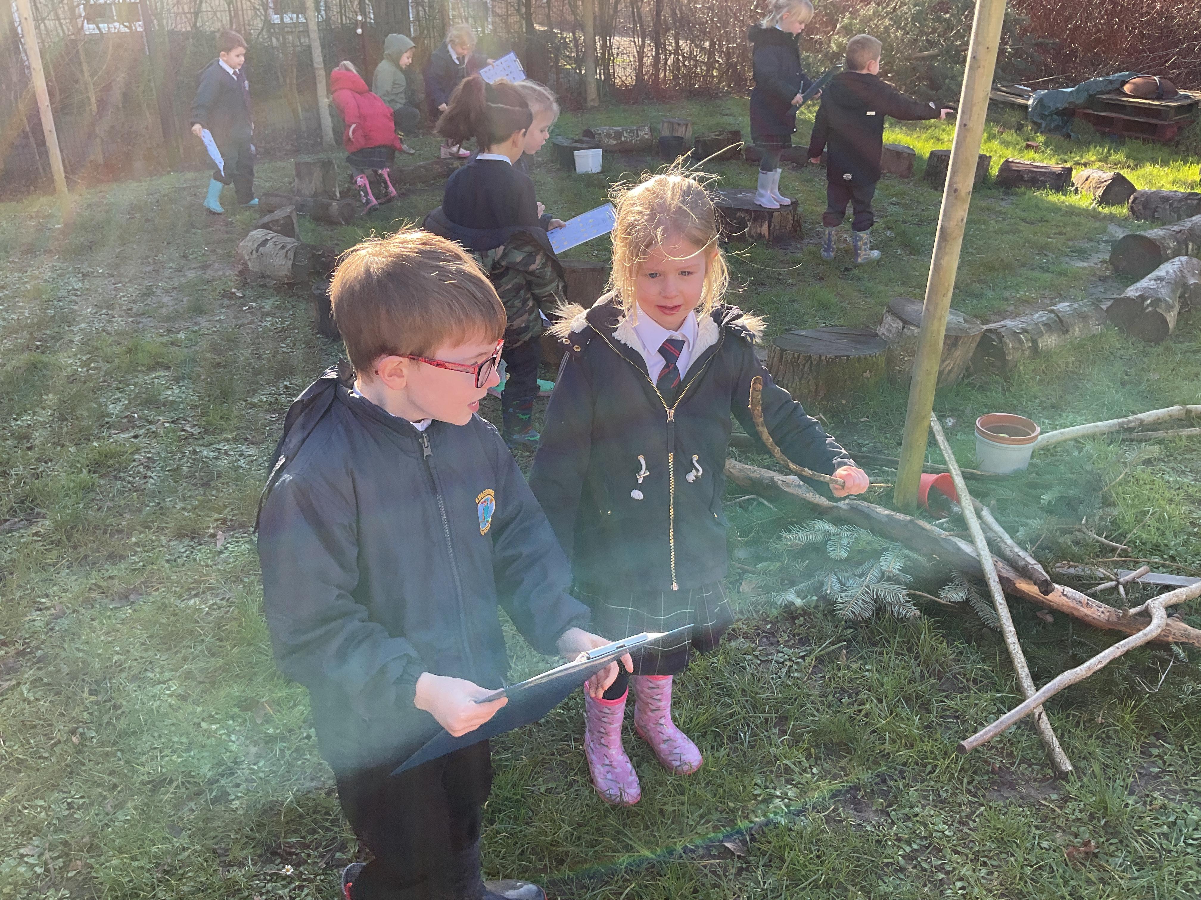 In outdoor learning we have been exploring the nature around the school. We worked with a partner to go on a nature hunt to see if we could find lots of different natural objects around the school.