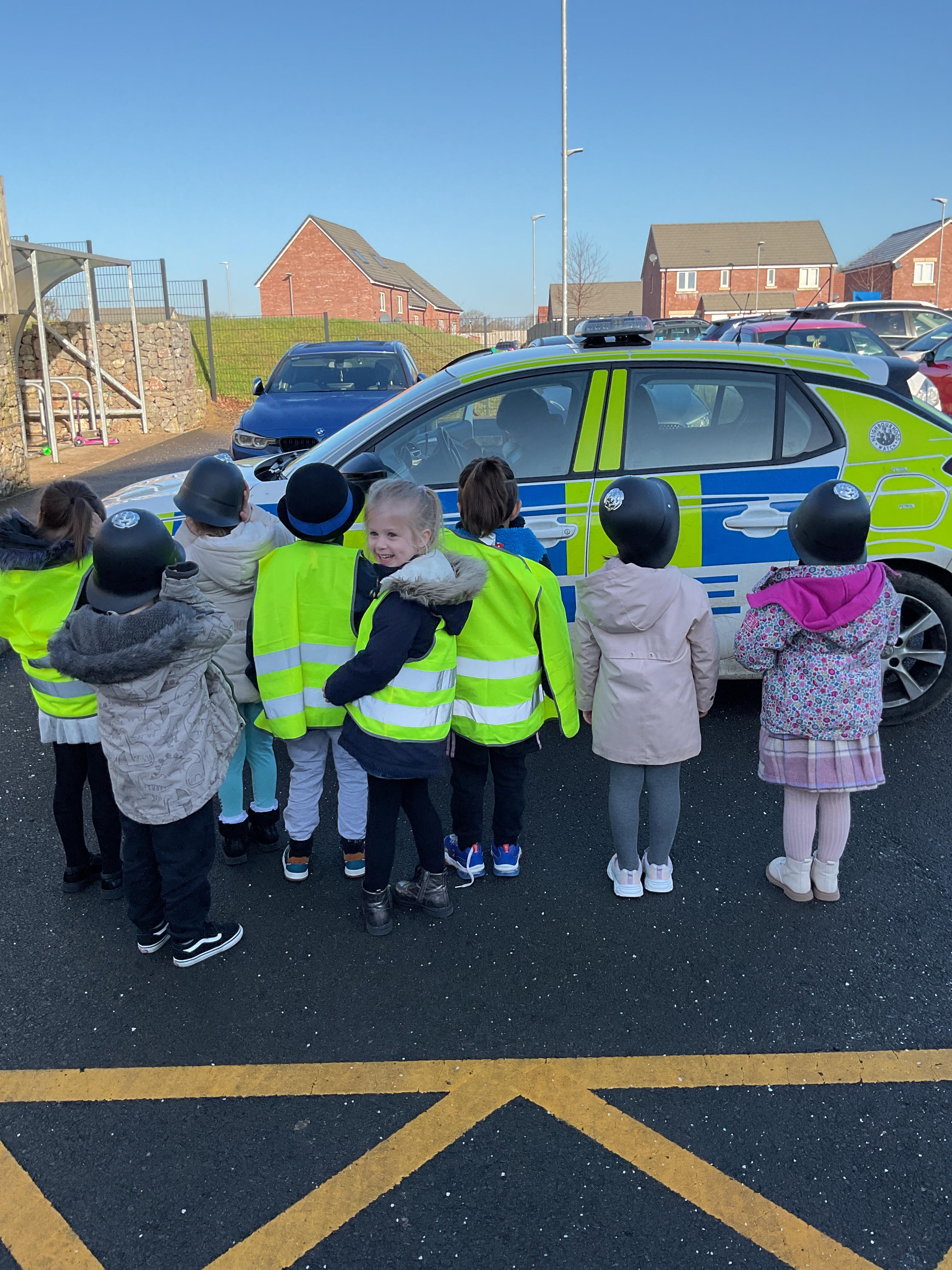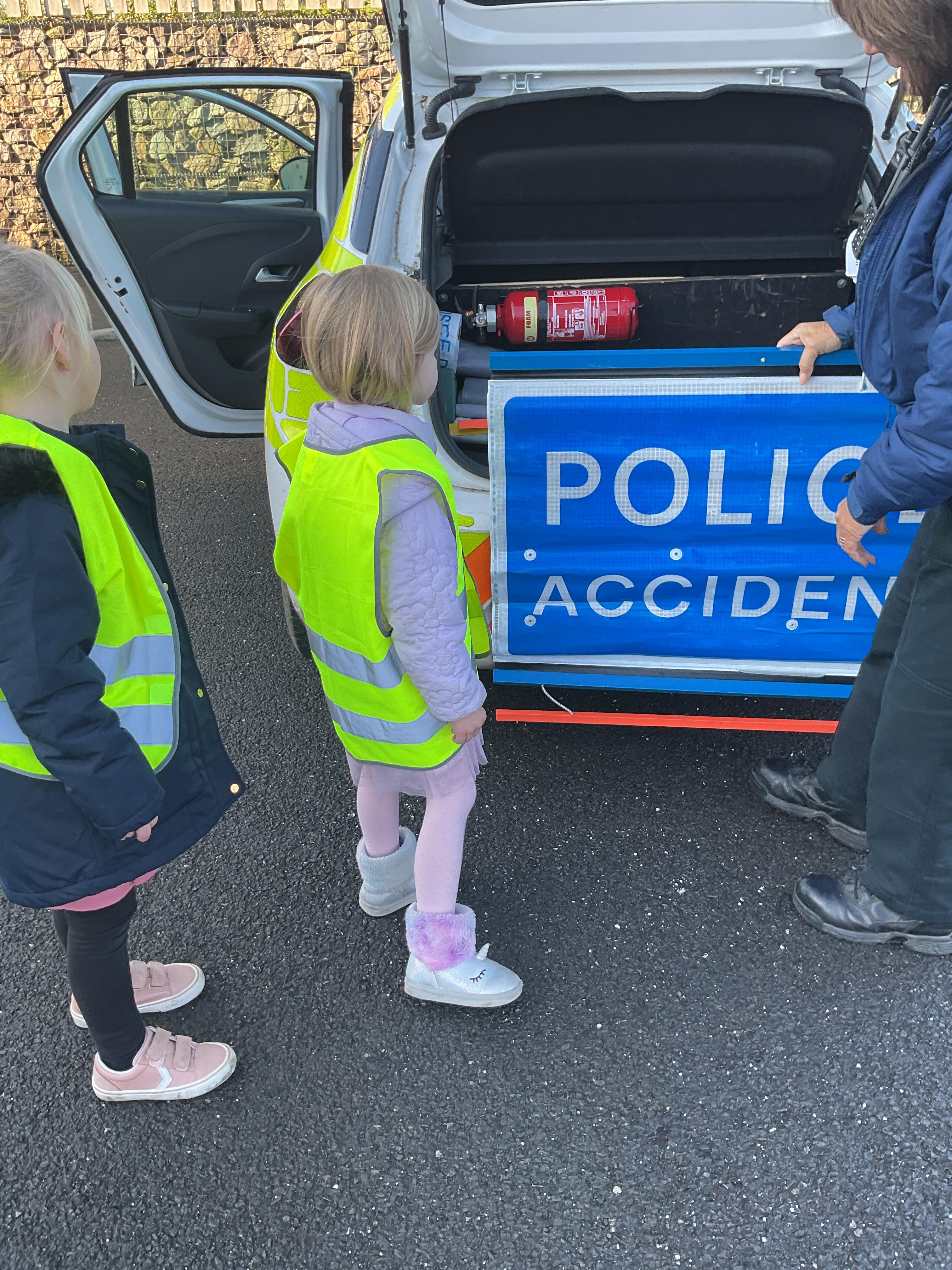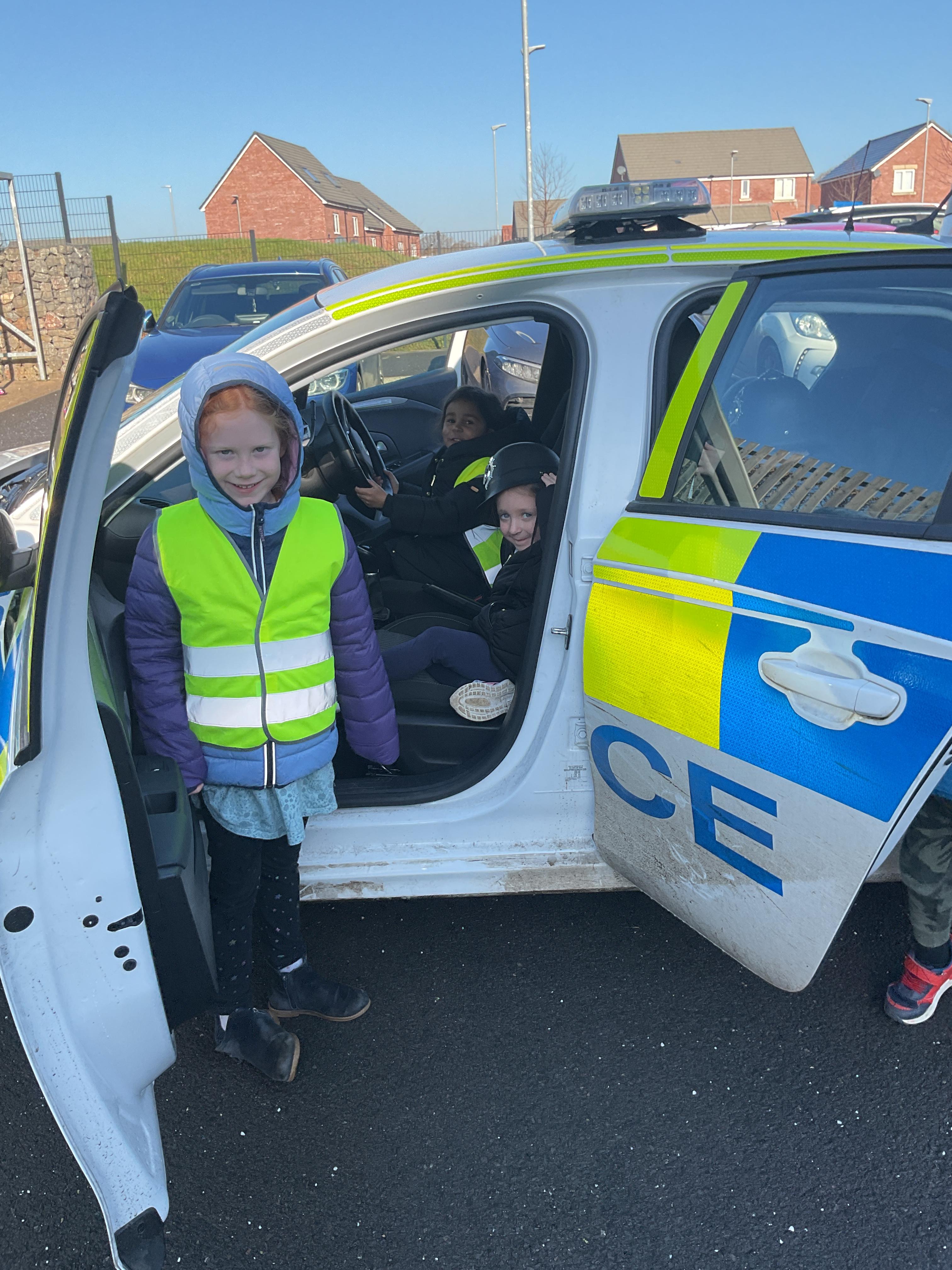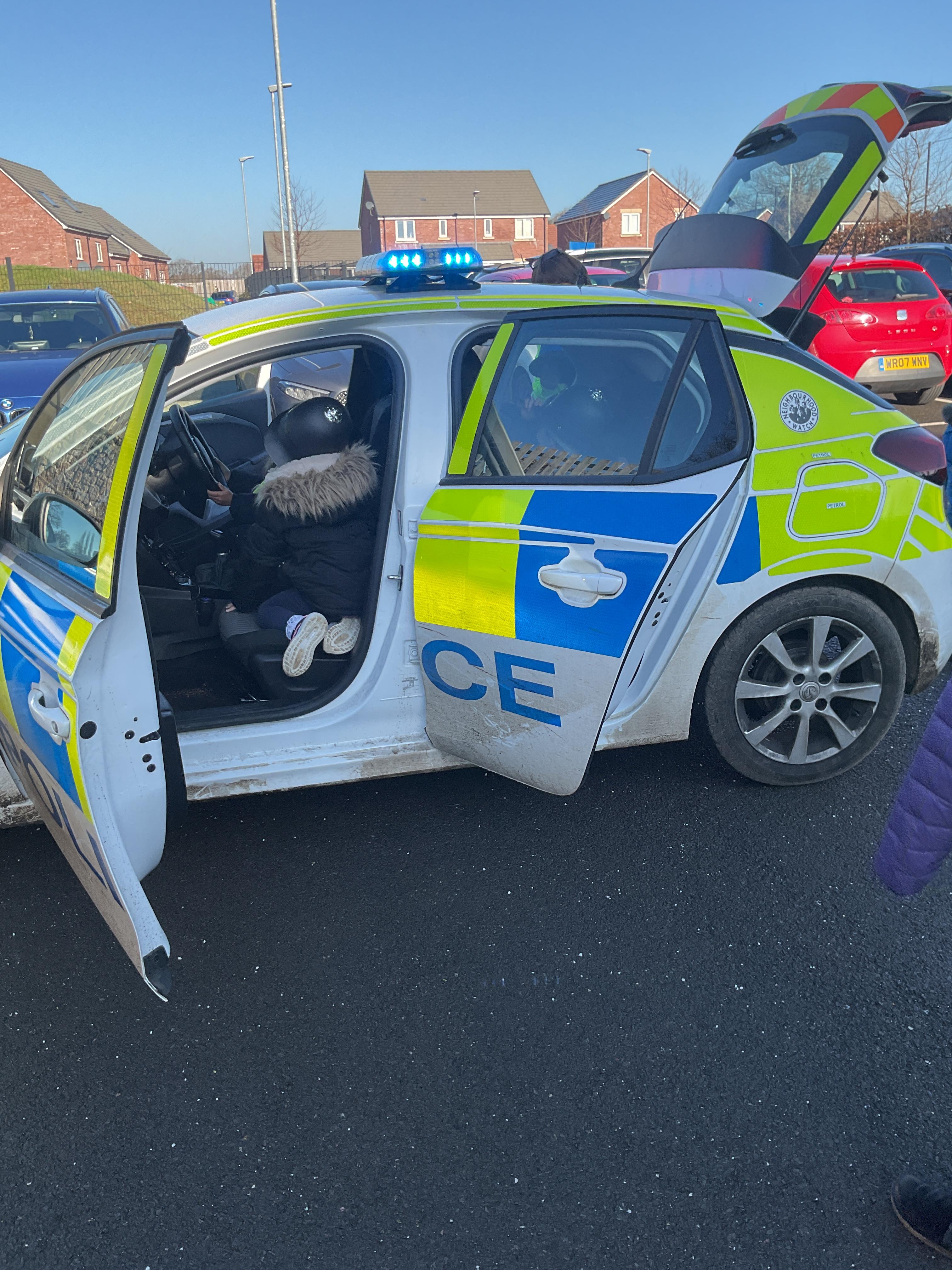 We really enjoyed having the PCSO come and visit us. She talked to us all about her job and how she can keep us safe. She then took us out to have a sit in the police car. Blue group even got to practise their traffic officer skills and coned off Mr Glentworths car!