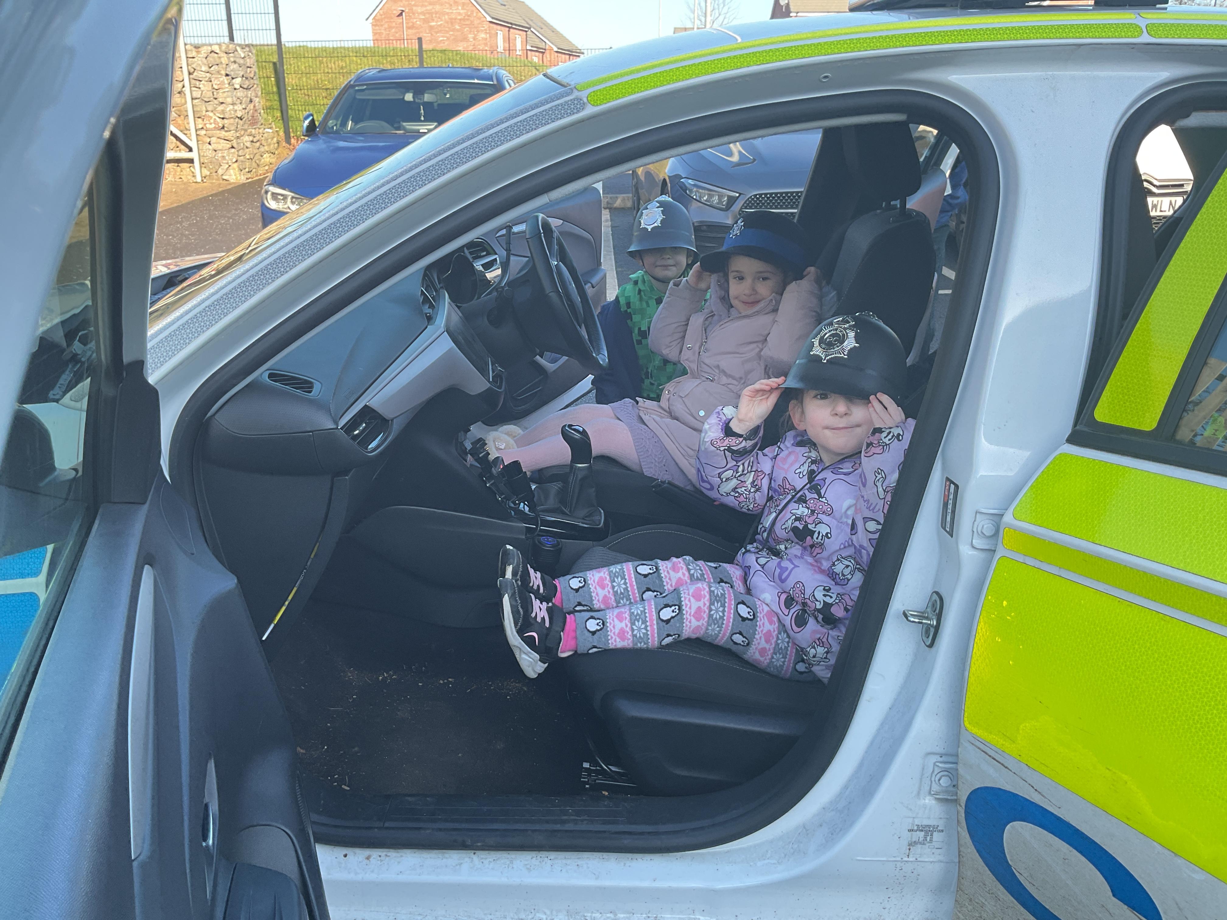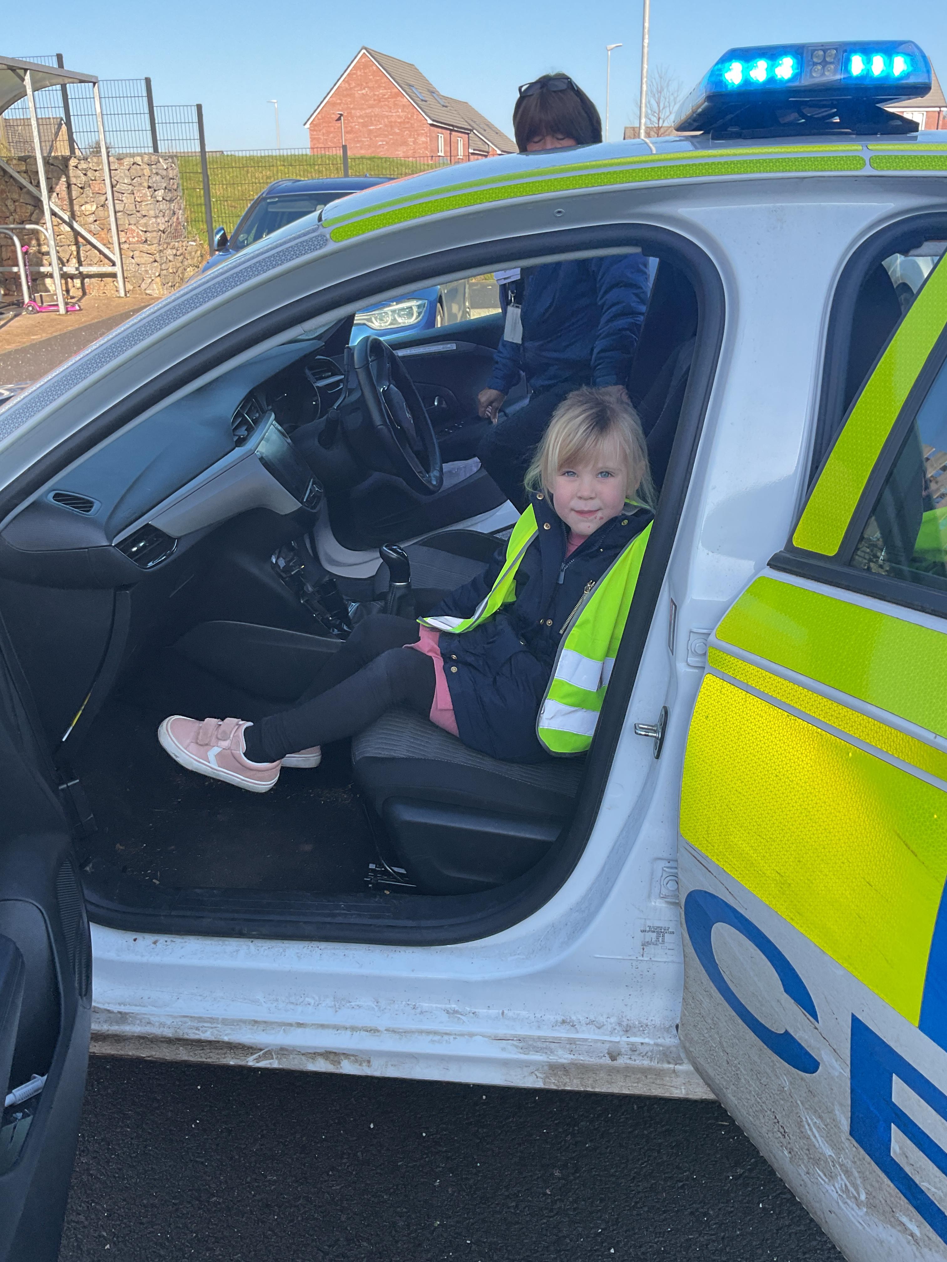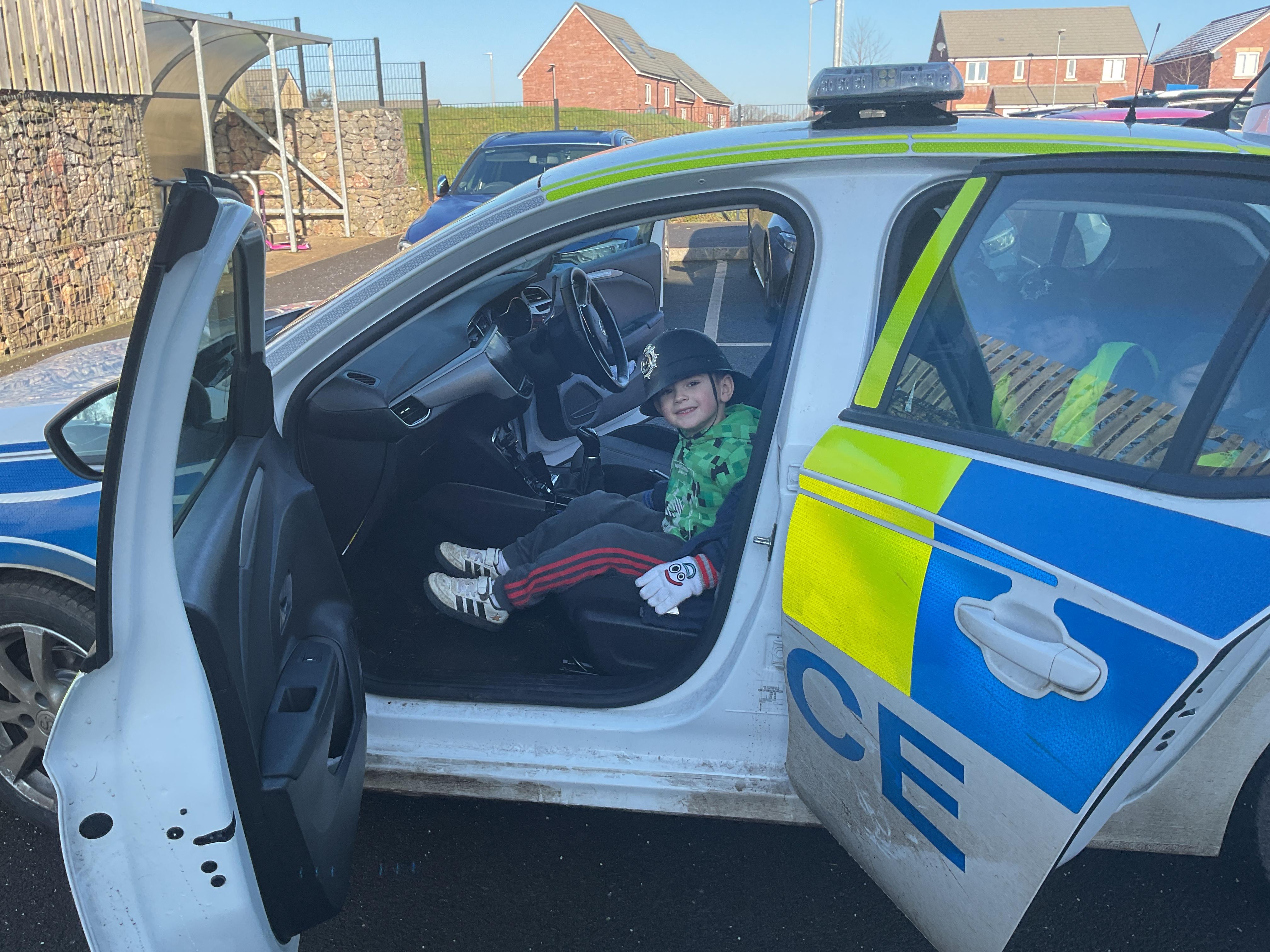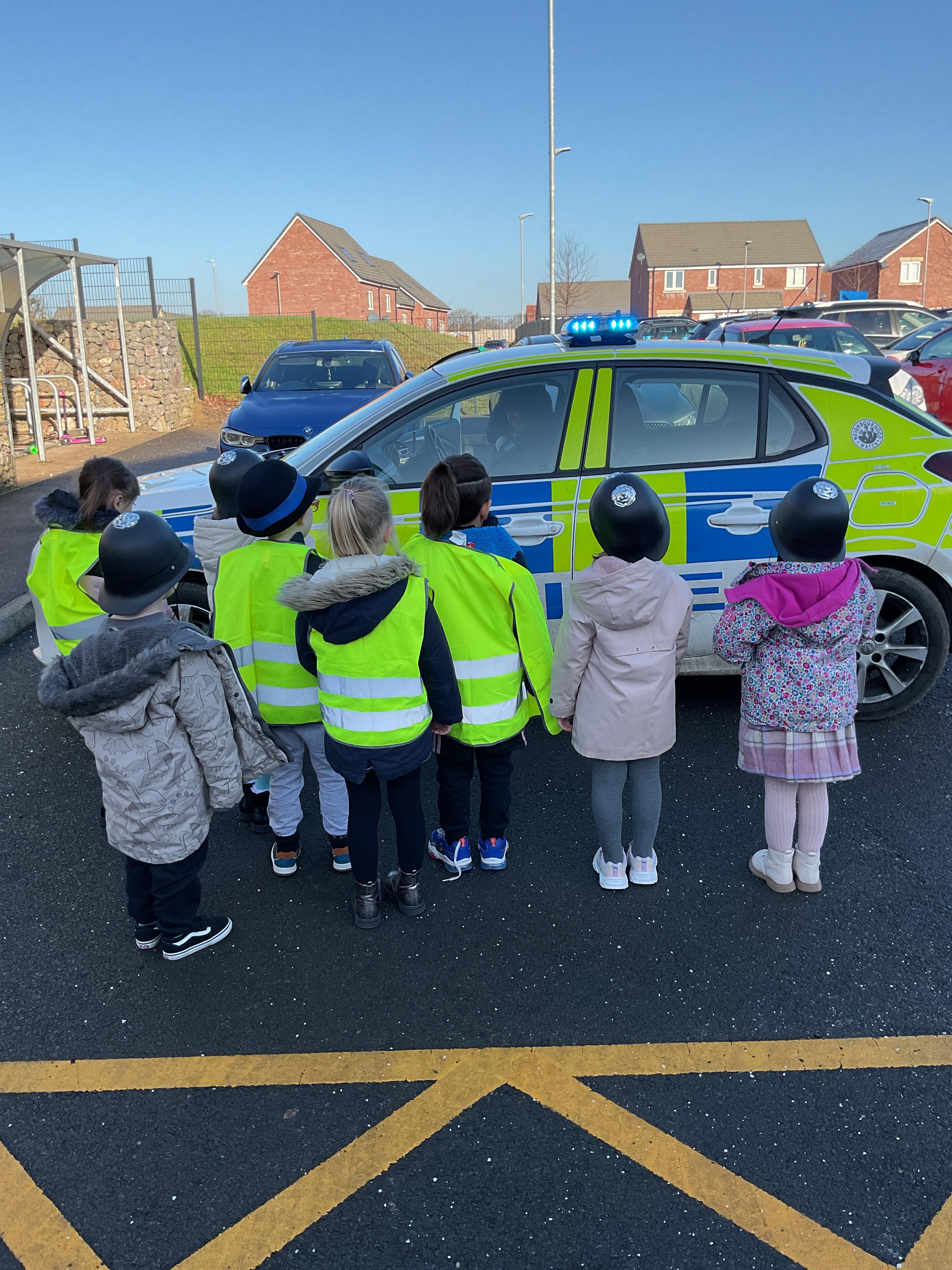 We really enjoyed having the PCSO come and visit us. She talked to us all about her job and how she can keep us safe. She then took us out to have a sit in the police car. Blue group even got to practise their traffic officer skills and coned off Mr Glentworths car!