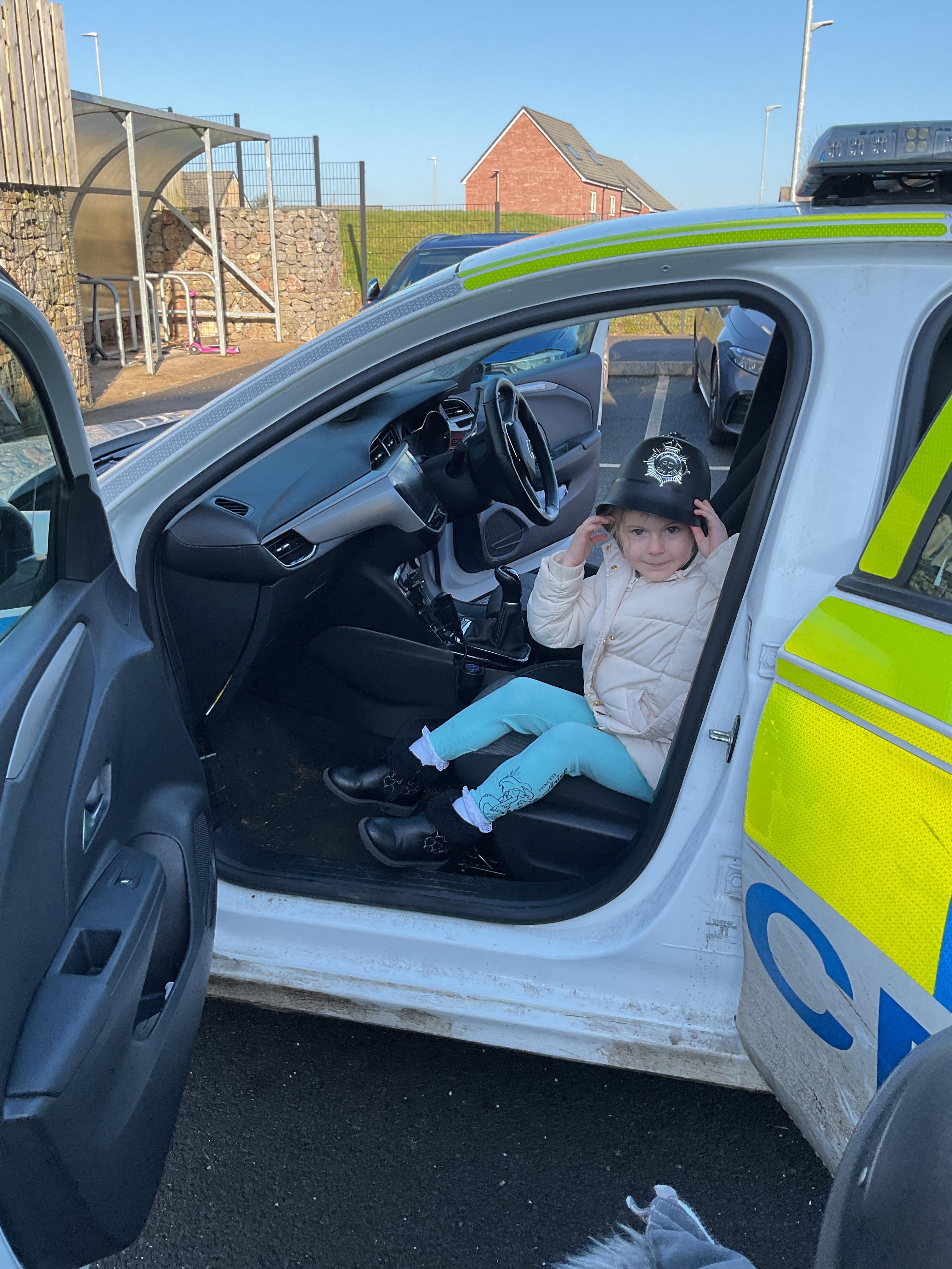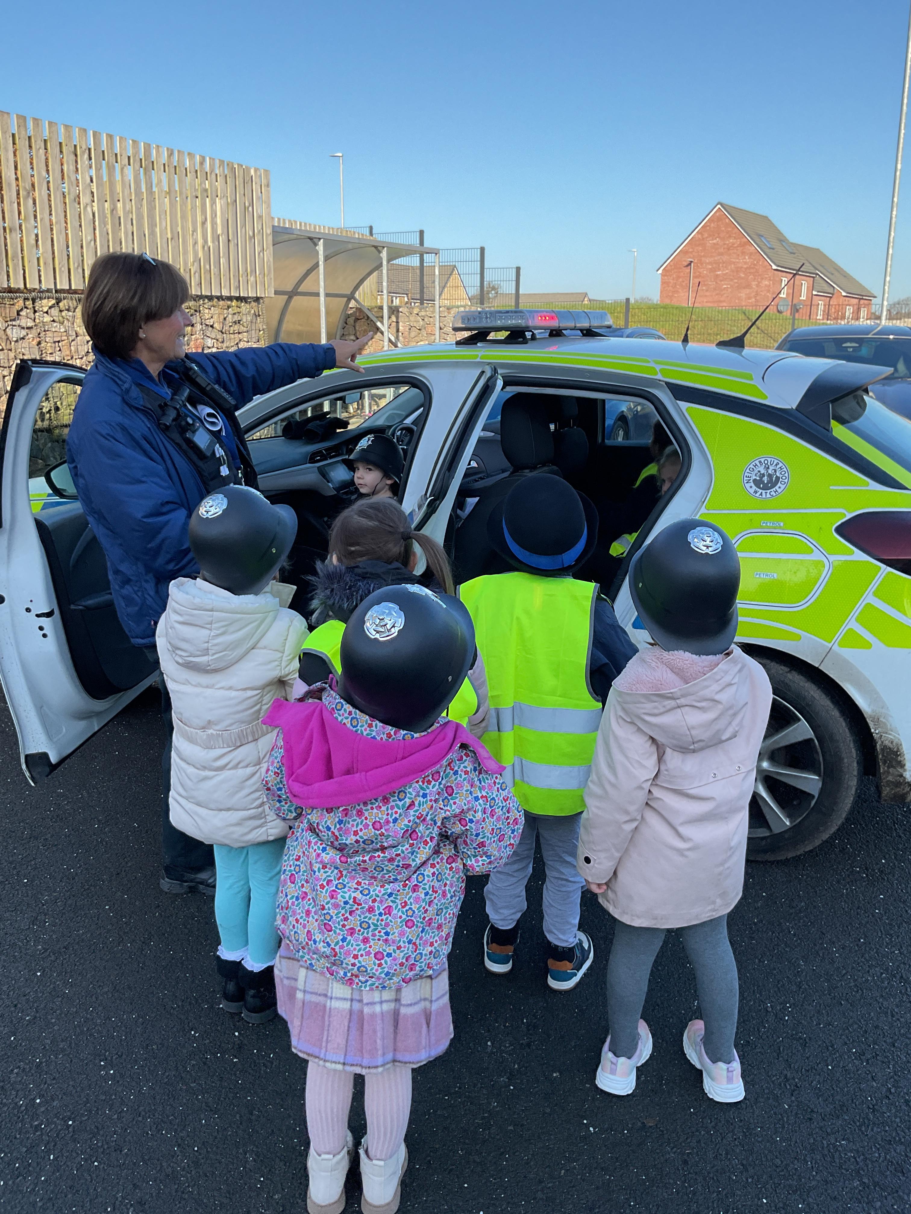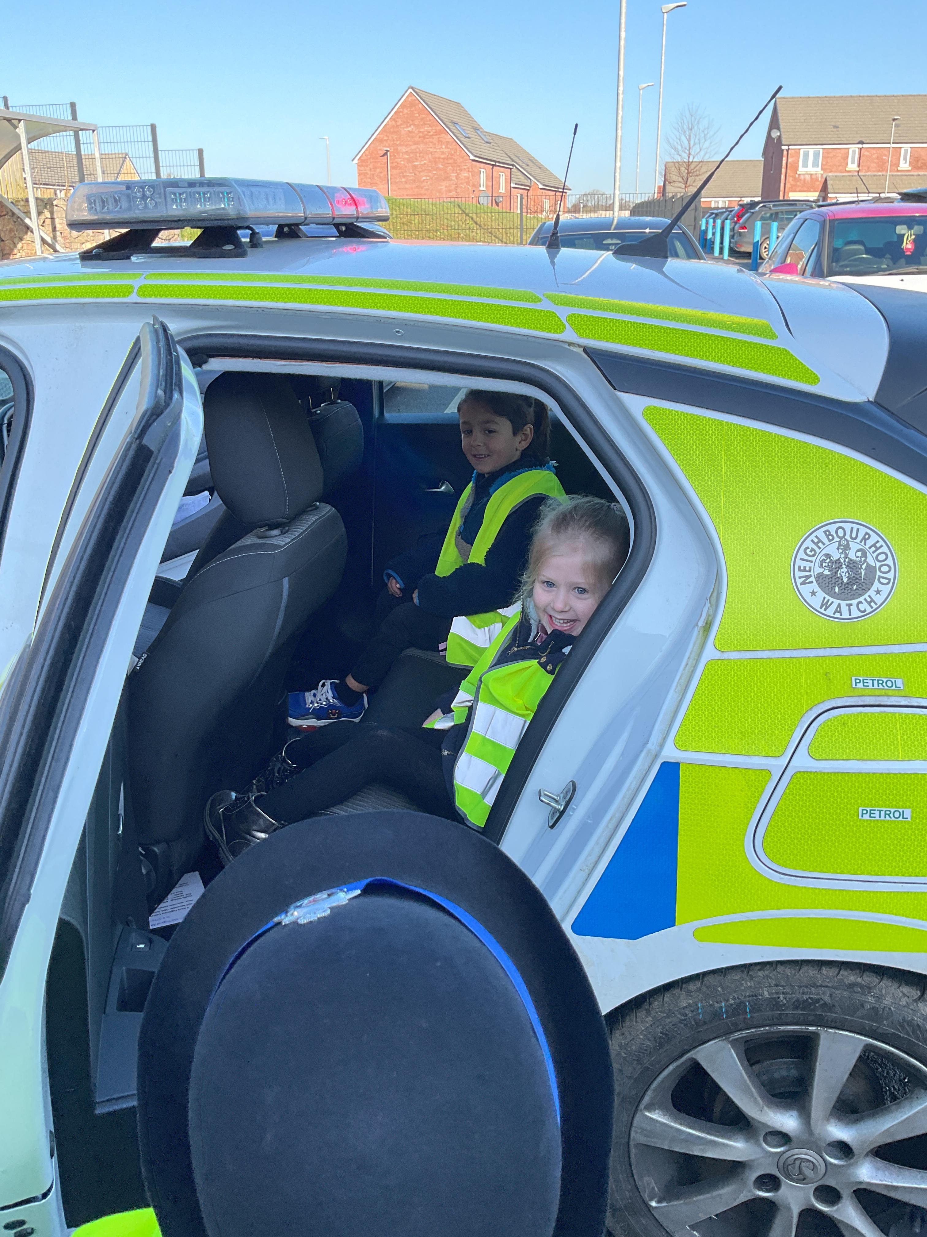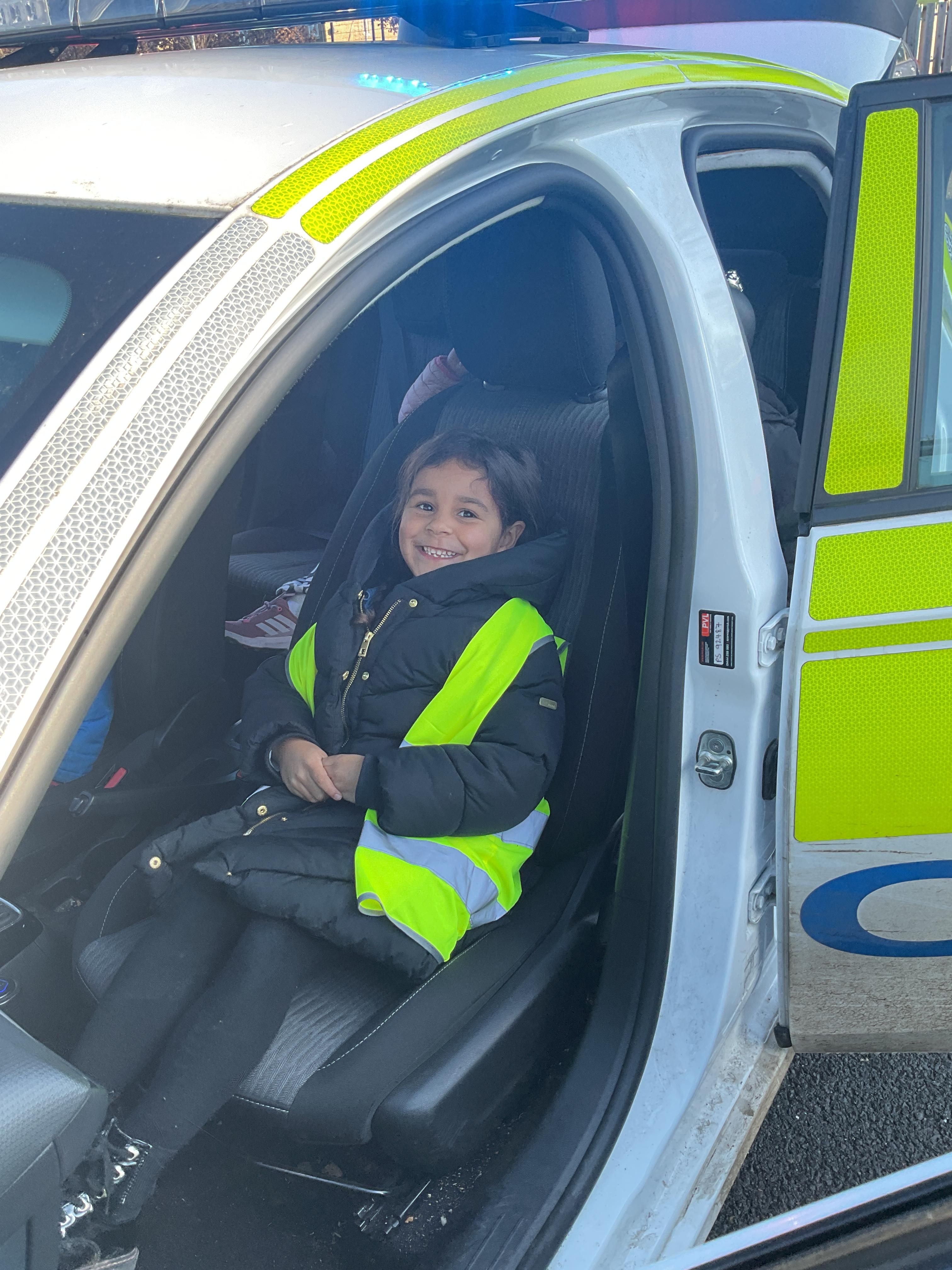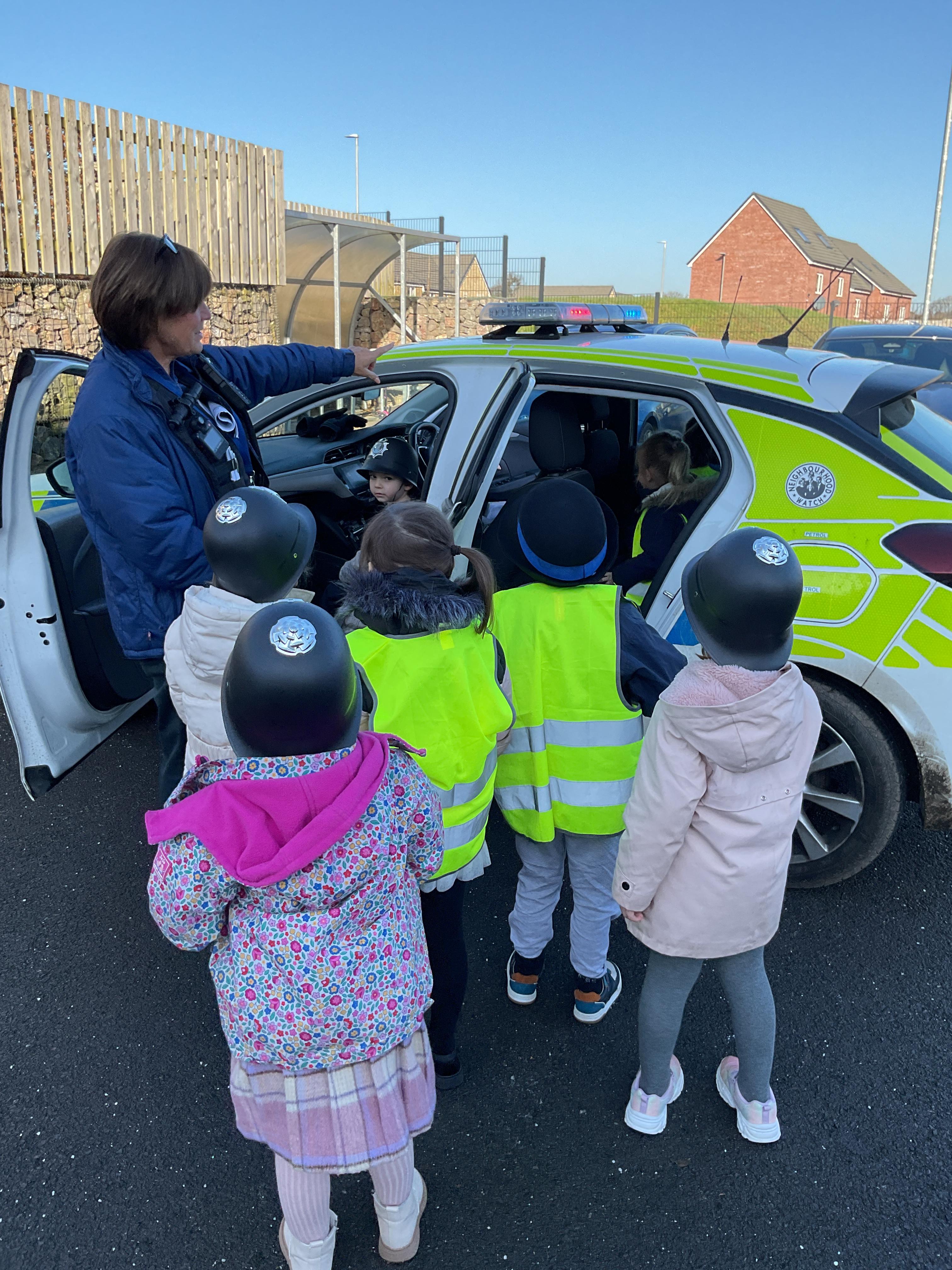 We really enjoyed having the PCSO come and visit us. She talked to us all about her job and how she can keep us safe. She then took us out to have a sit in the police car. Blue group even got to practise their traffic officer skills and coned off Mr Glentworths car!