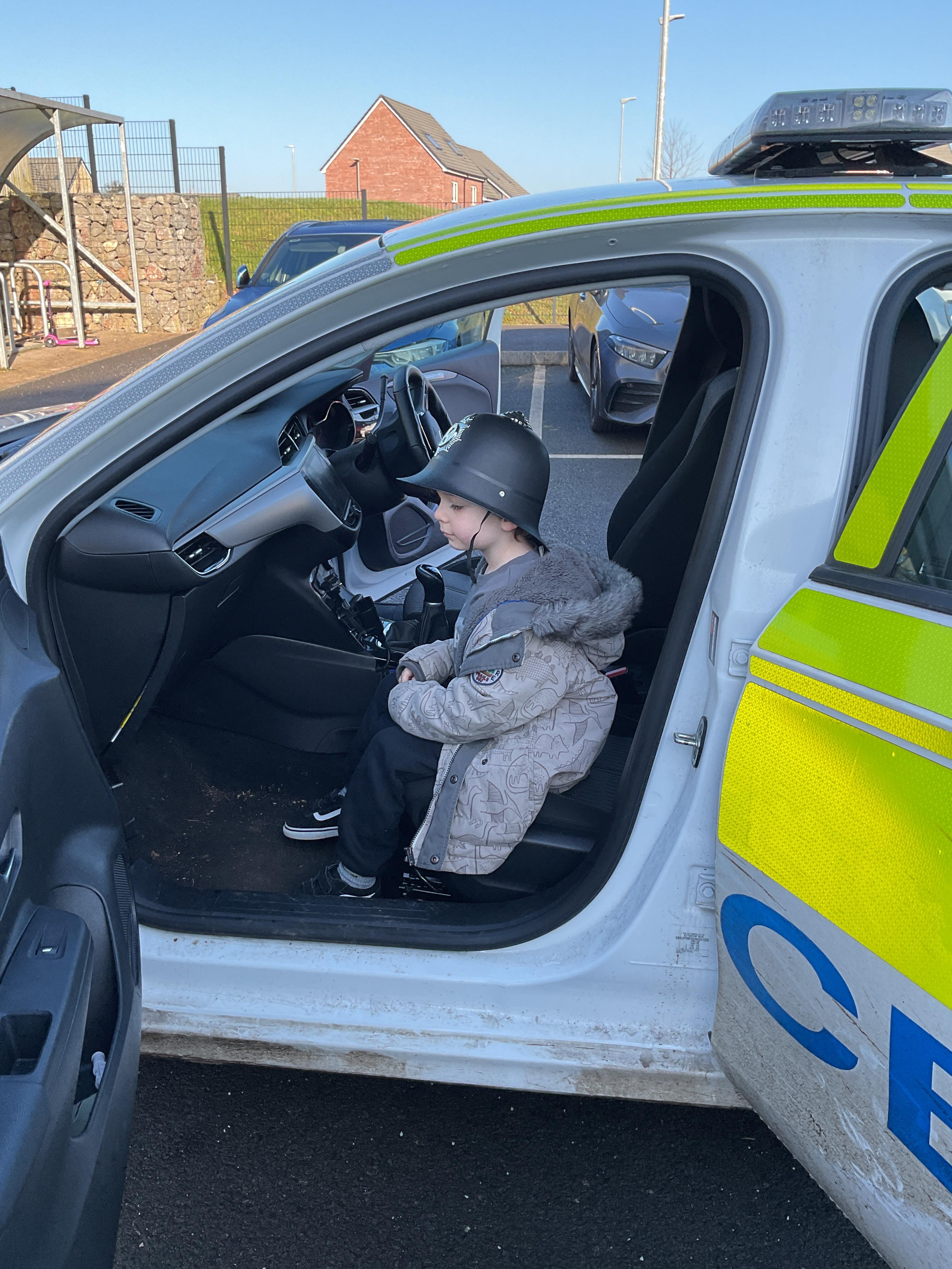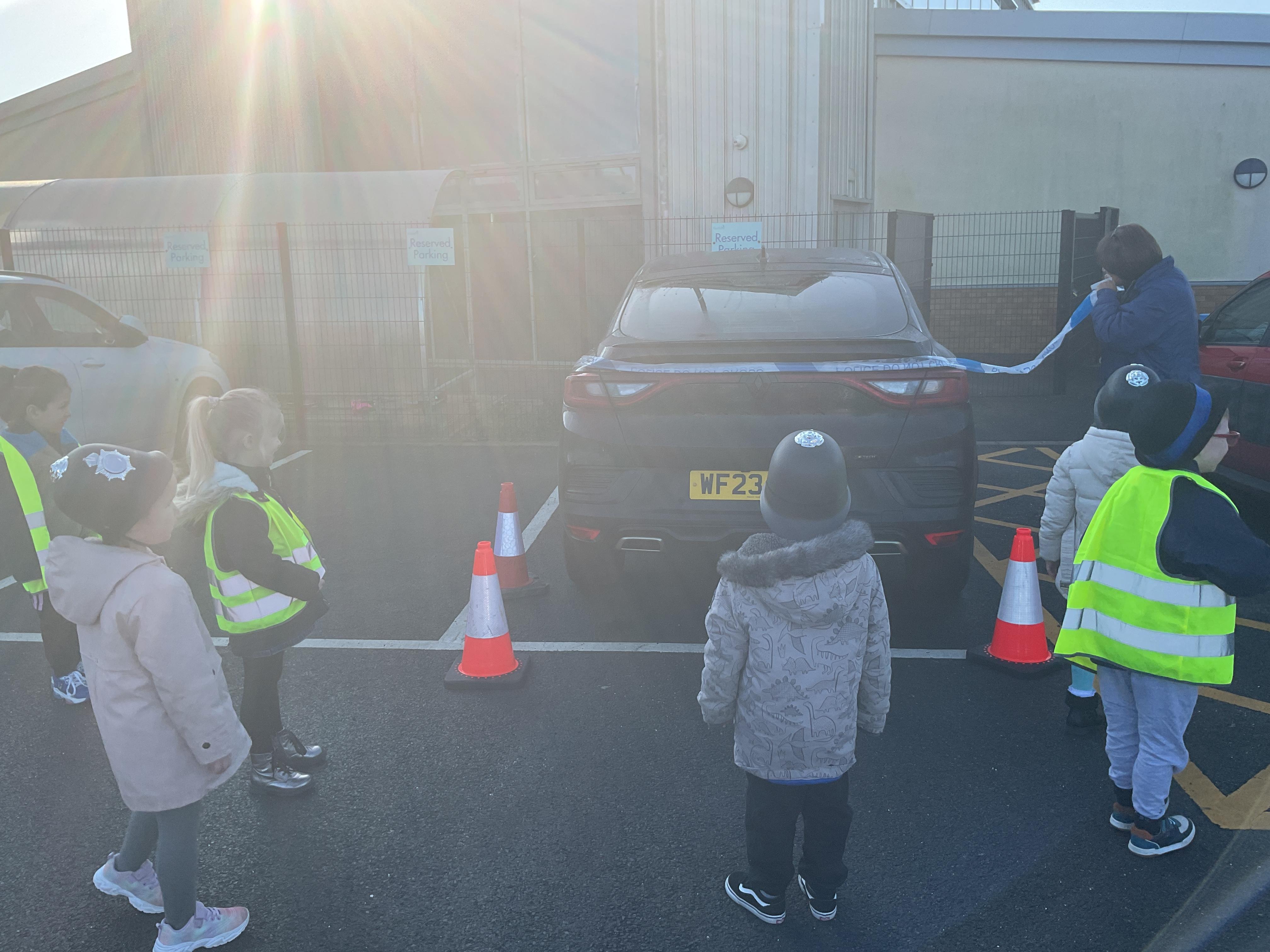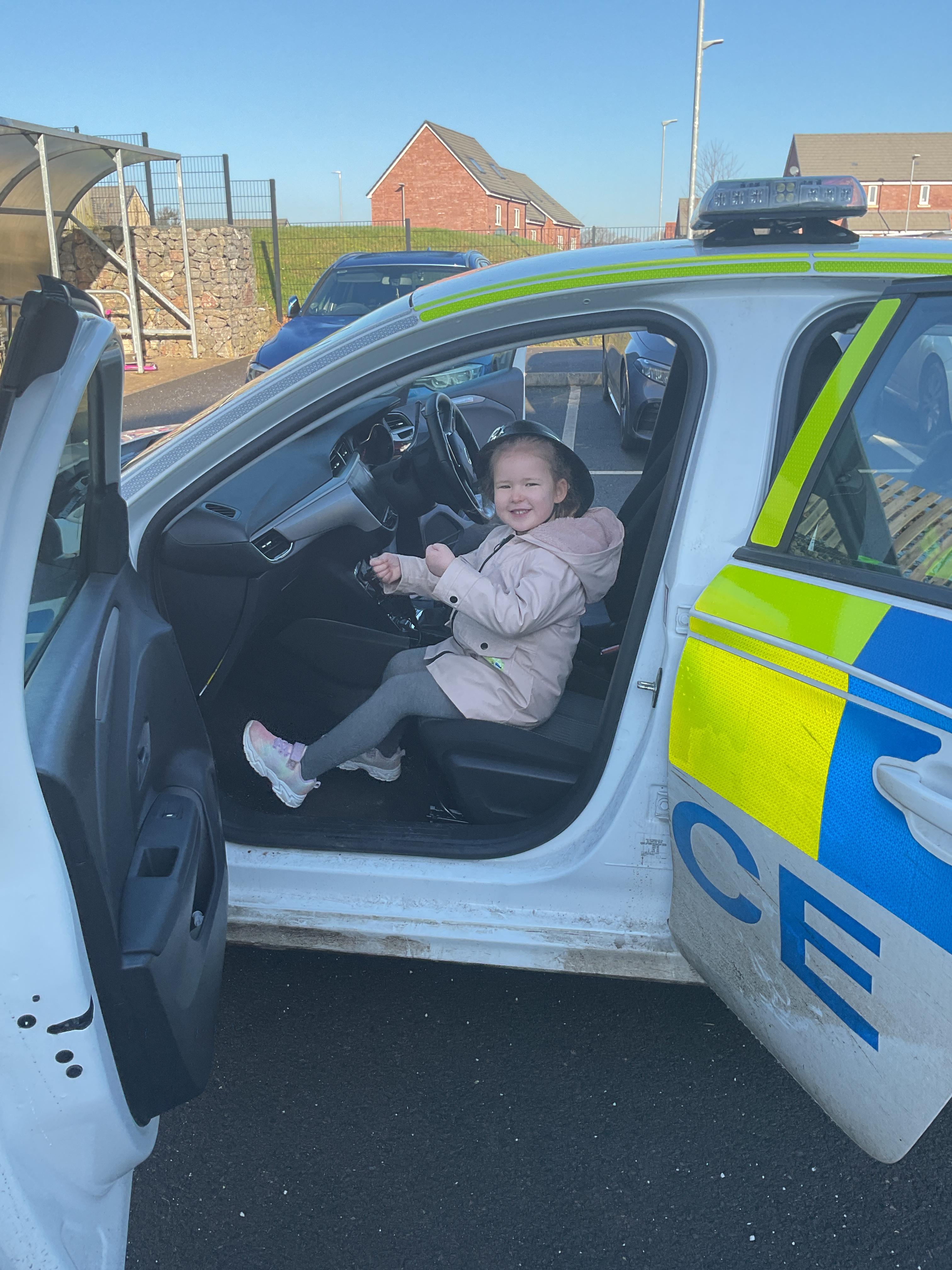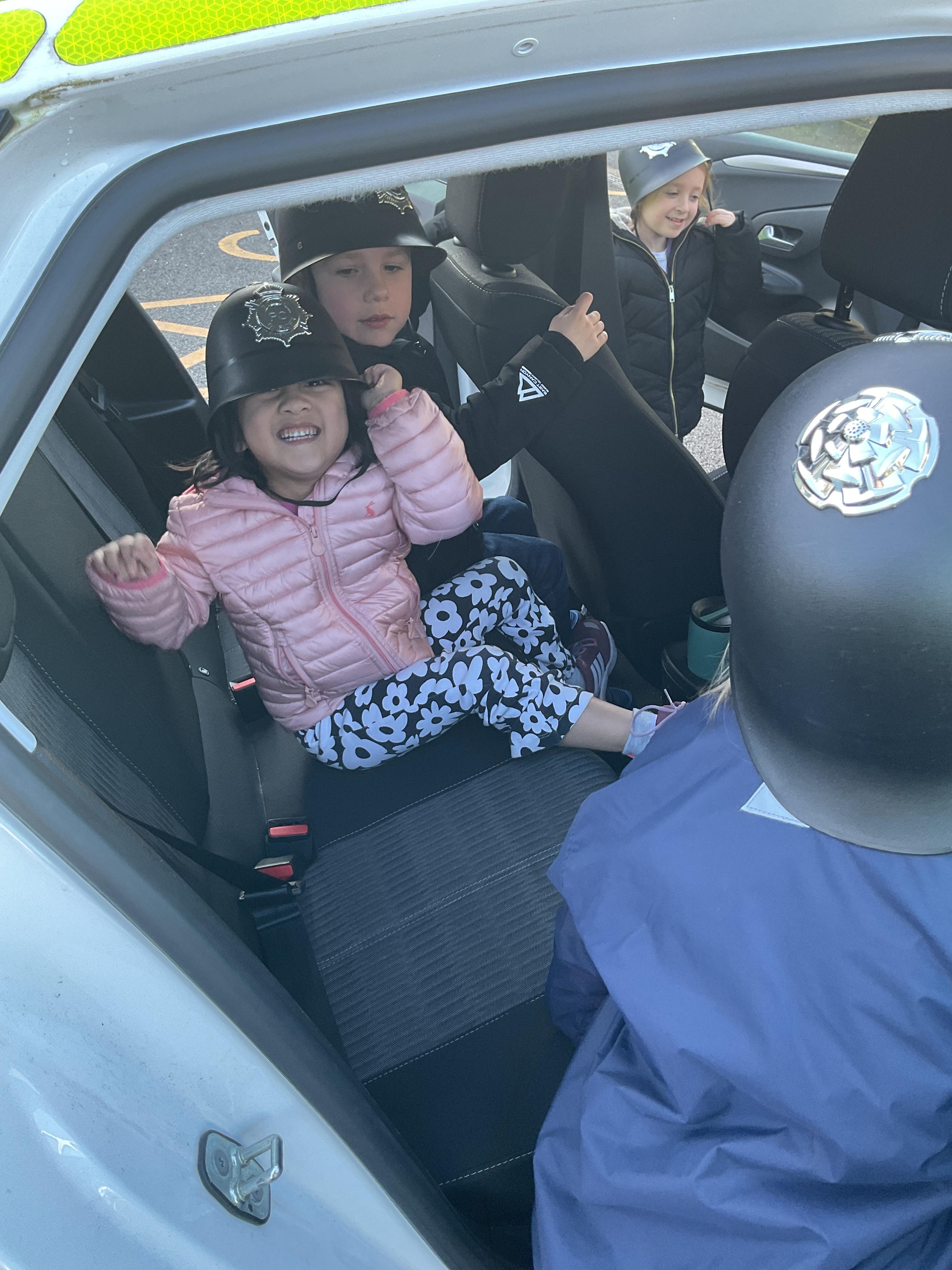 We really enjoyed having the PCSO come and visit us. She talked to us all about her job and how she can keep us safe. She then took us out to have a sit in the police car. Blue group even got to practise their traffic officer skills and coned off Mr Glentworths car!