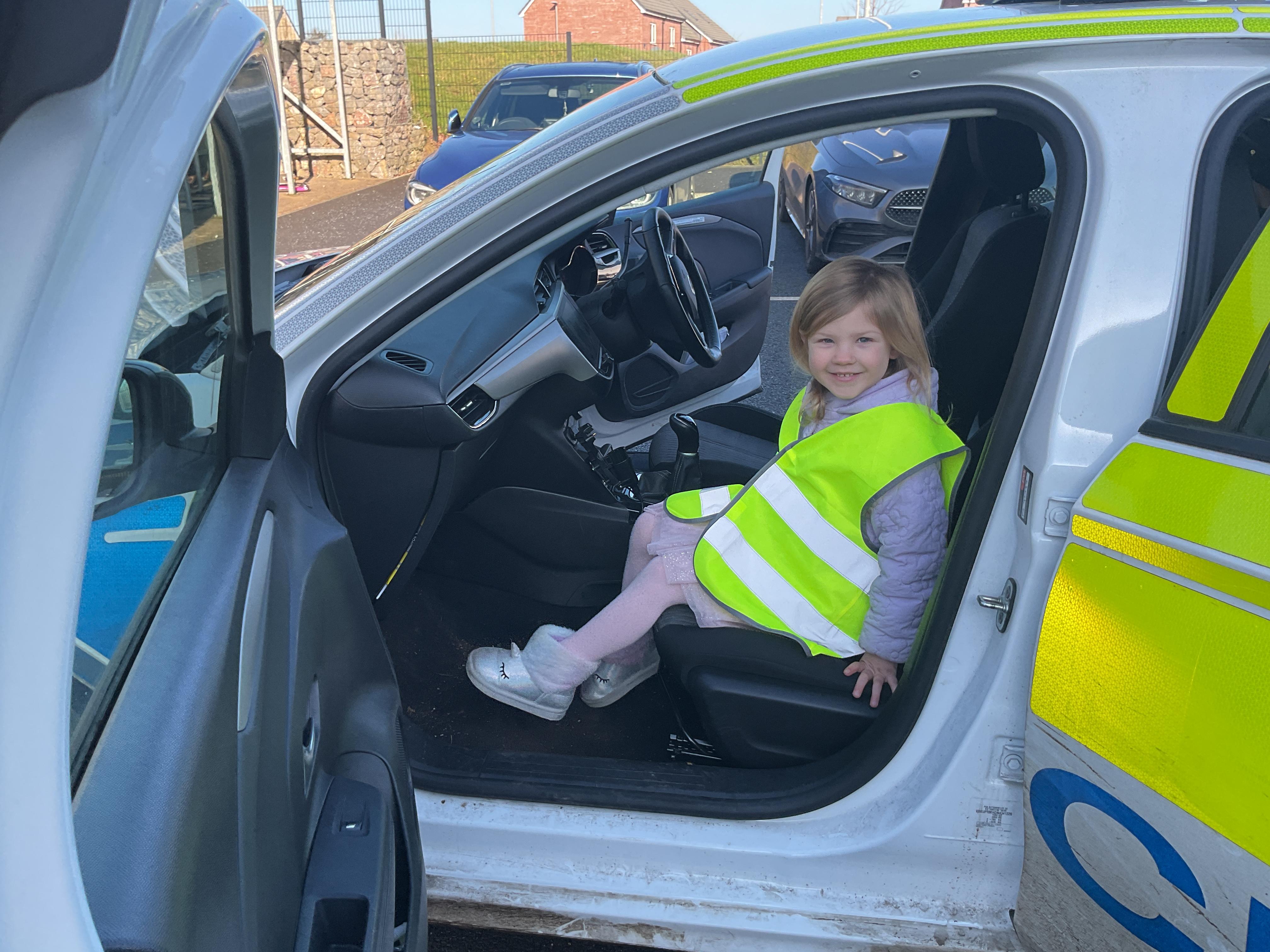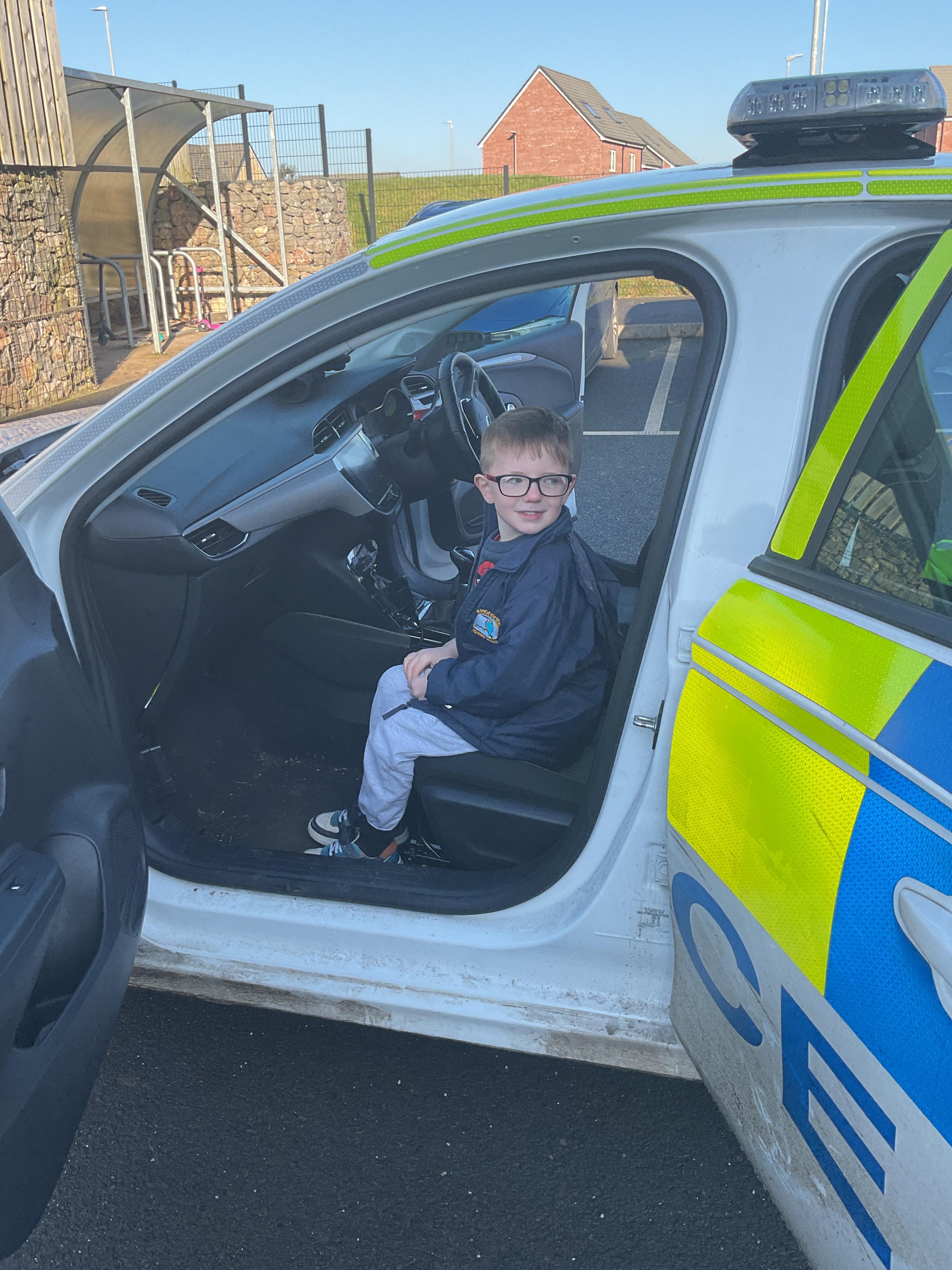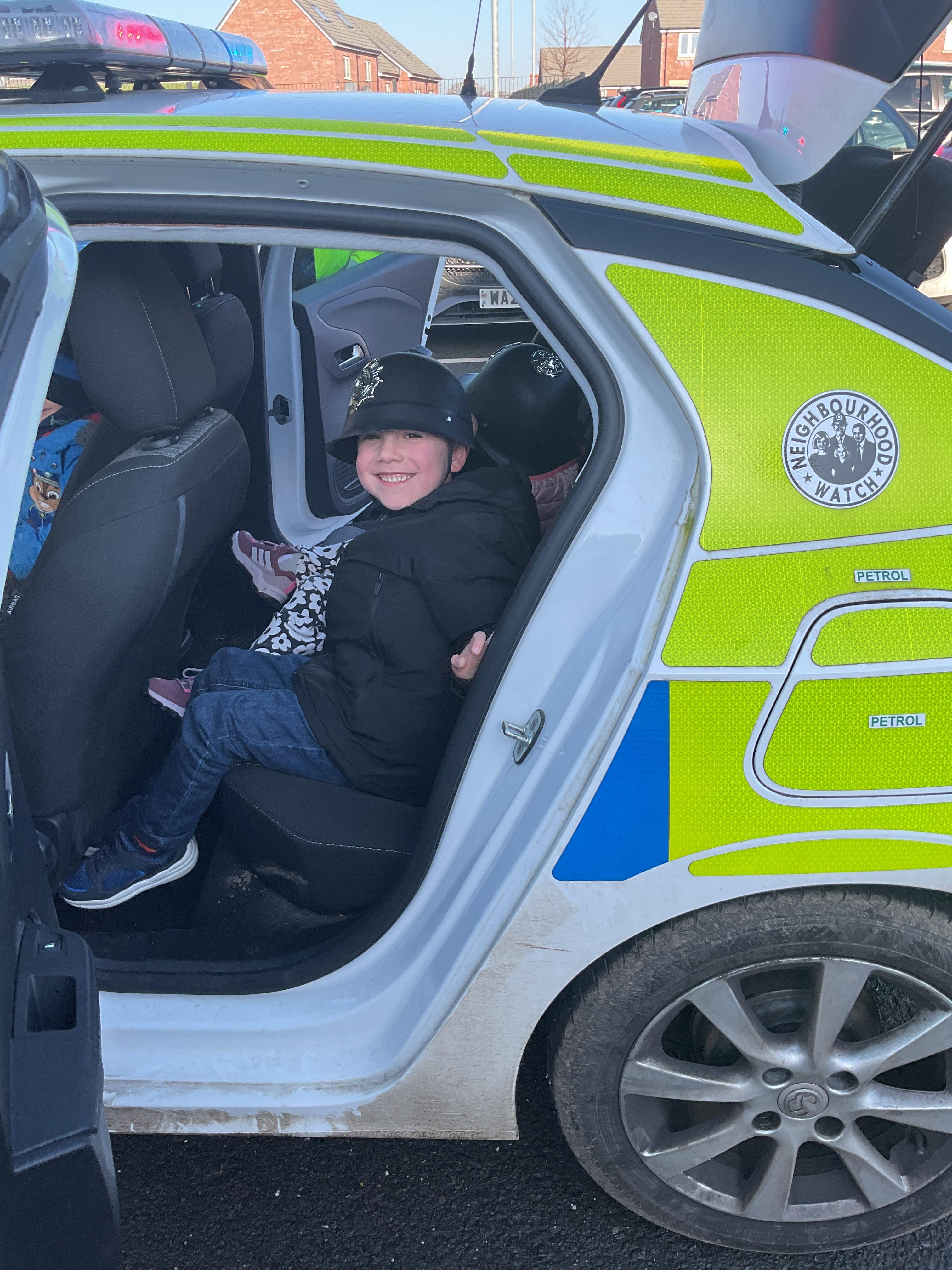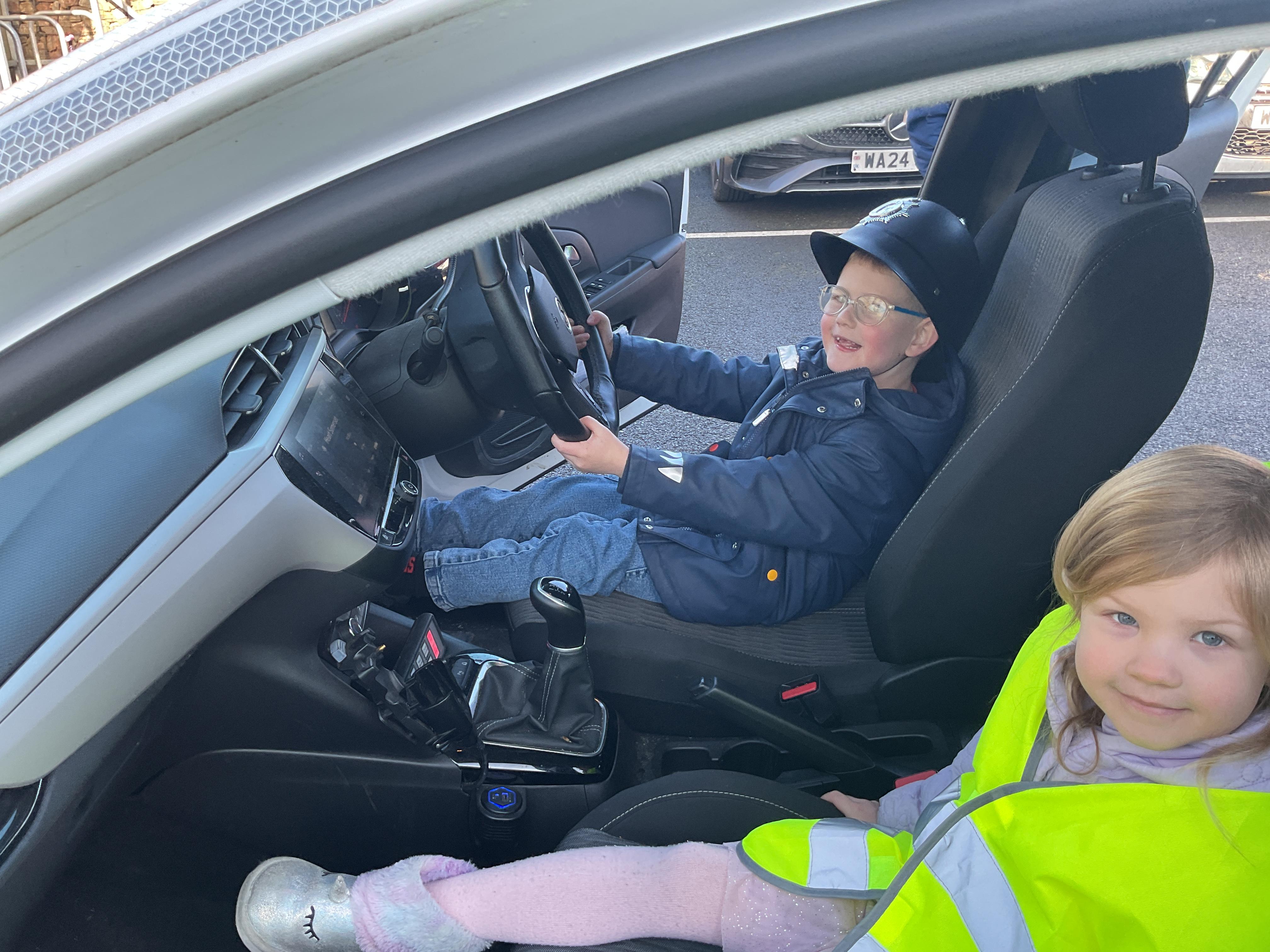 We really enjoyed having the PCSO come and visit us. She talked to us all about her job and how she can keep us safe. She then took us out to have a sit in the police car. Blue group even got to practise their traffic officer skills and coned off Mr Glentworths car!
