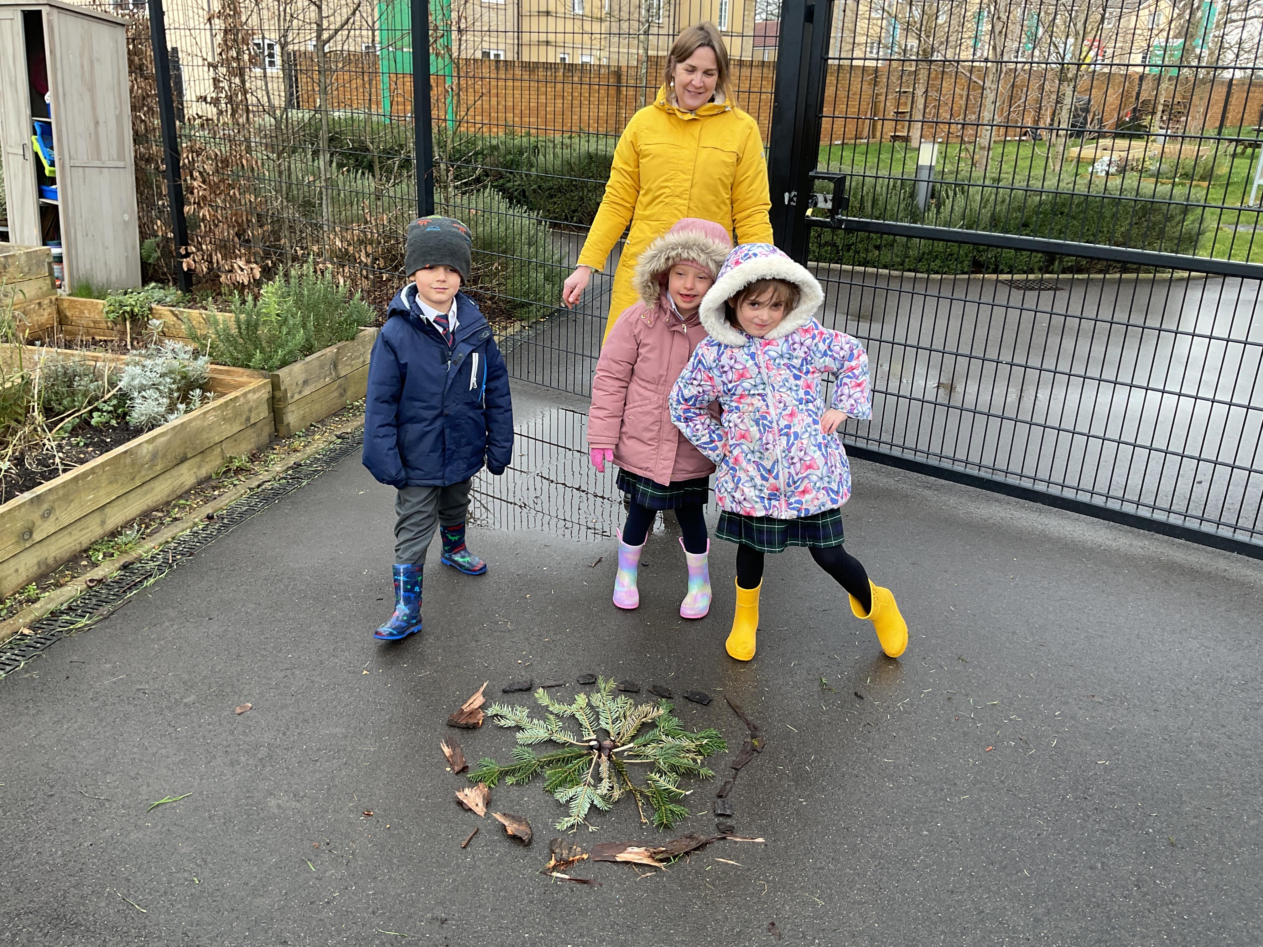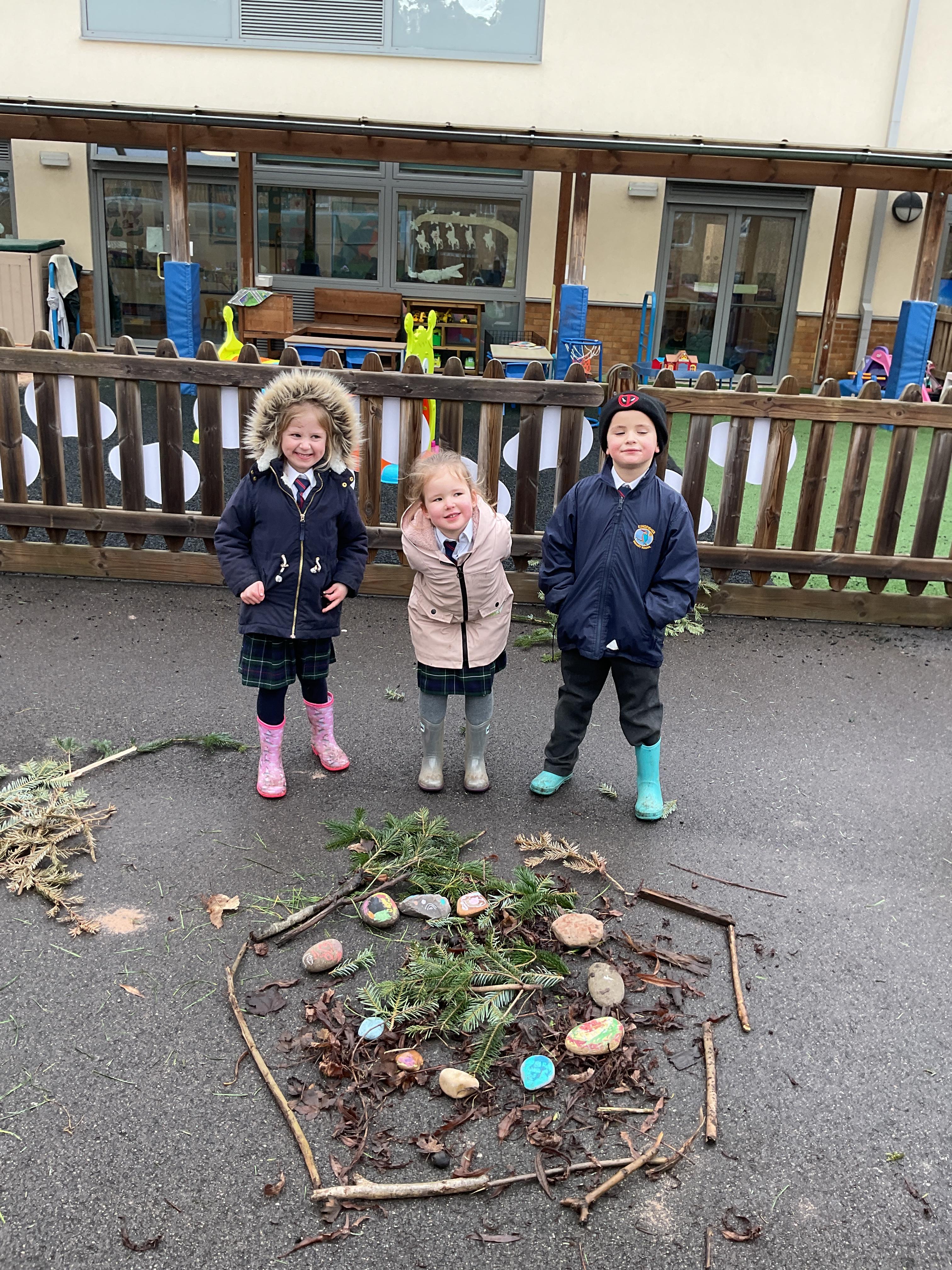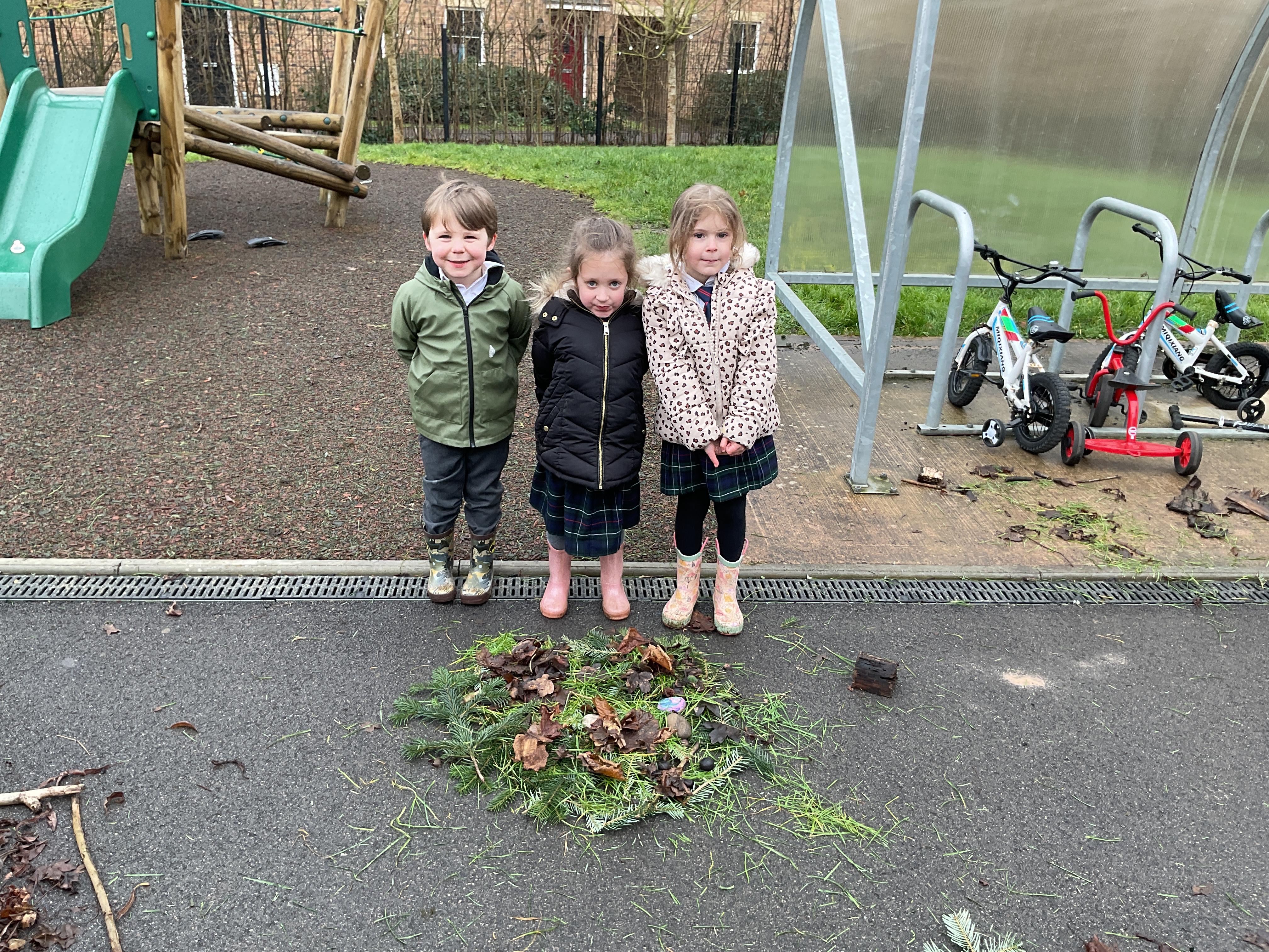 In outdoor learning this week the children had a go at making their own art in the style of Andy Goldsworthy using a variety of natural objects.