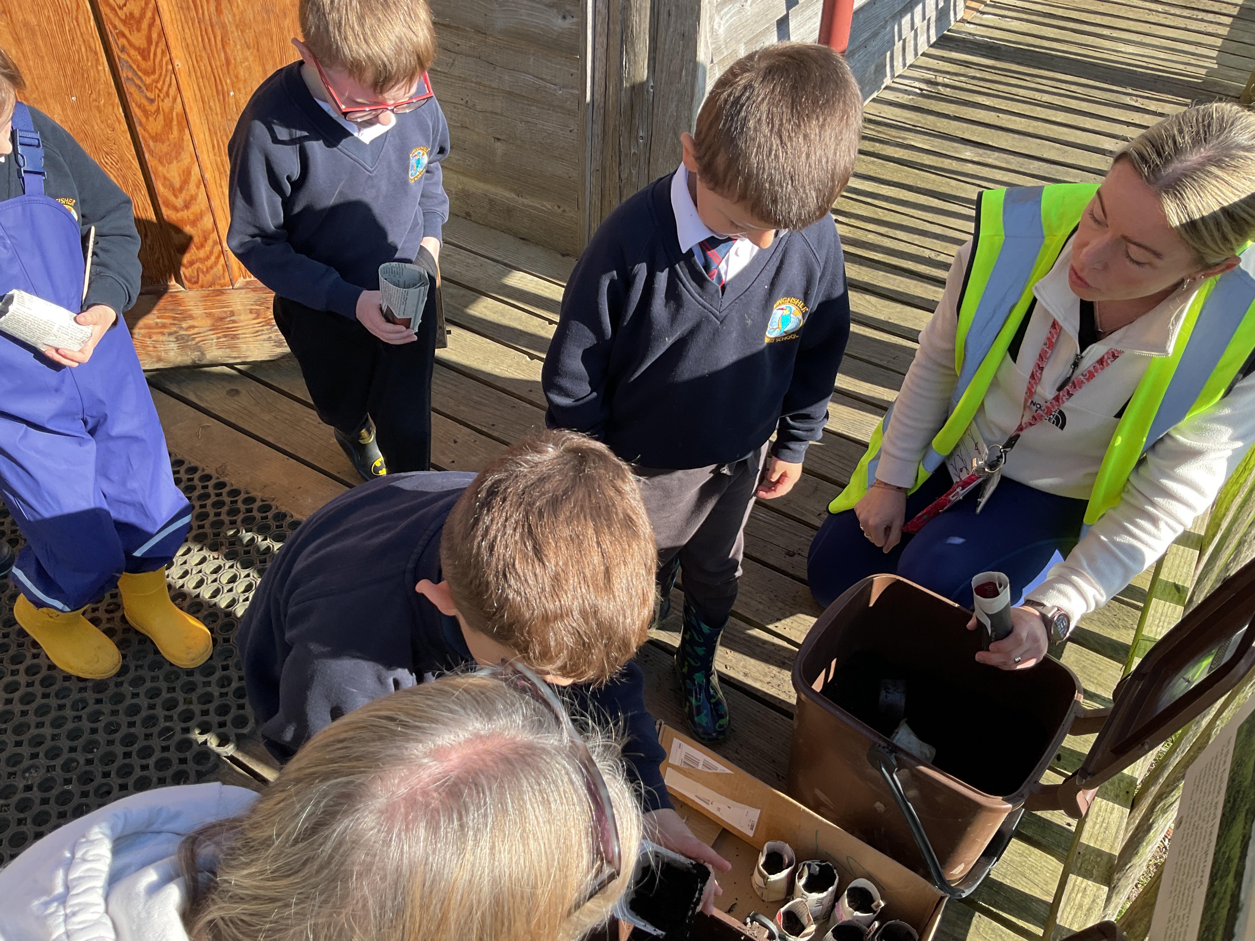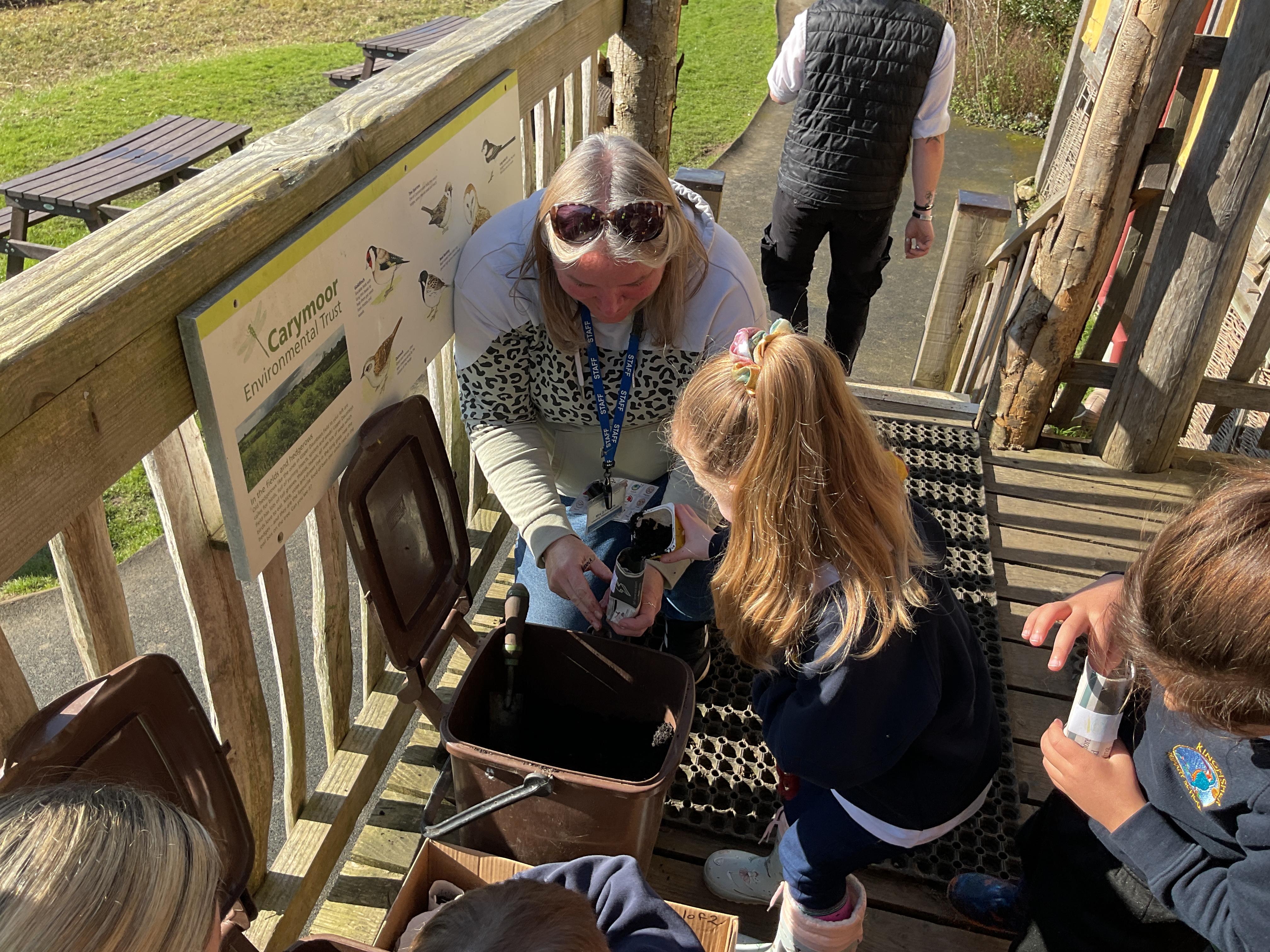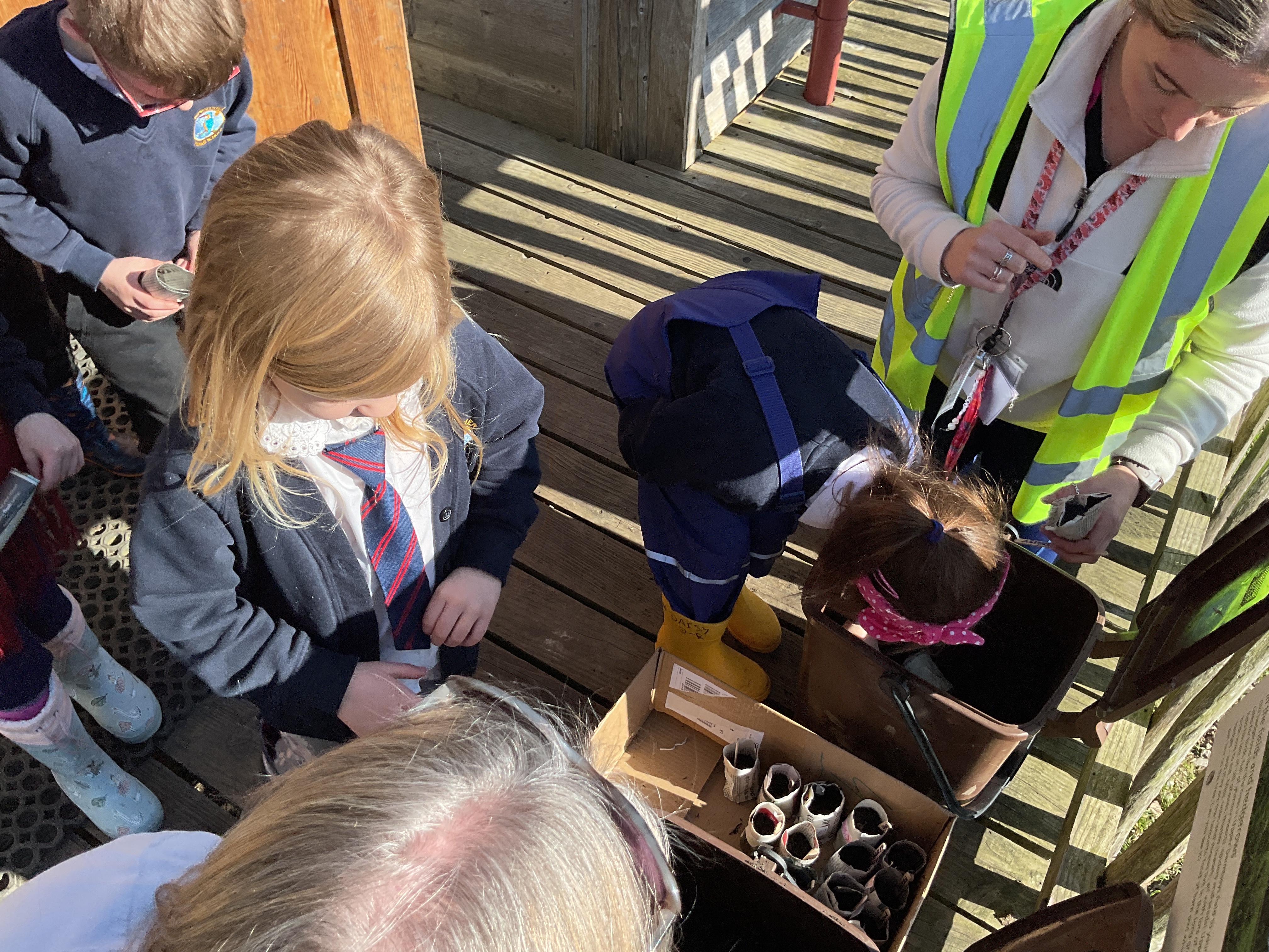 We had a lovely time on our school trip to Carymoor. We learnt all about plants and how they grow. We enjoyed making our own planters out of newspaper and then planted some sunflower seeds. We went outside and talked about all the things a plant needs to help it grow and played a game to help us remember. Finally after lunch we went down to woods and explored the trees, looking at their different leaves.