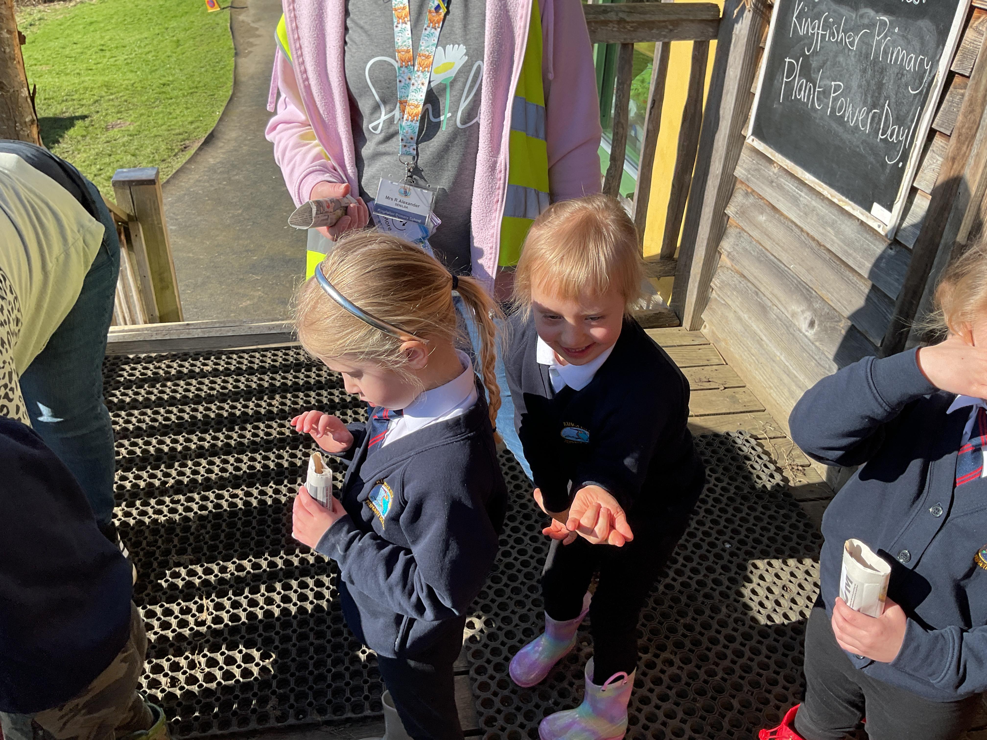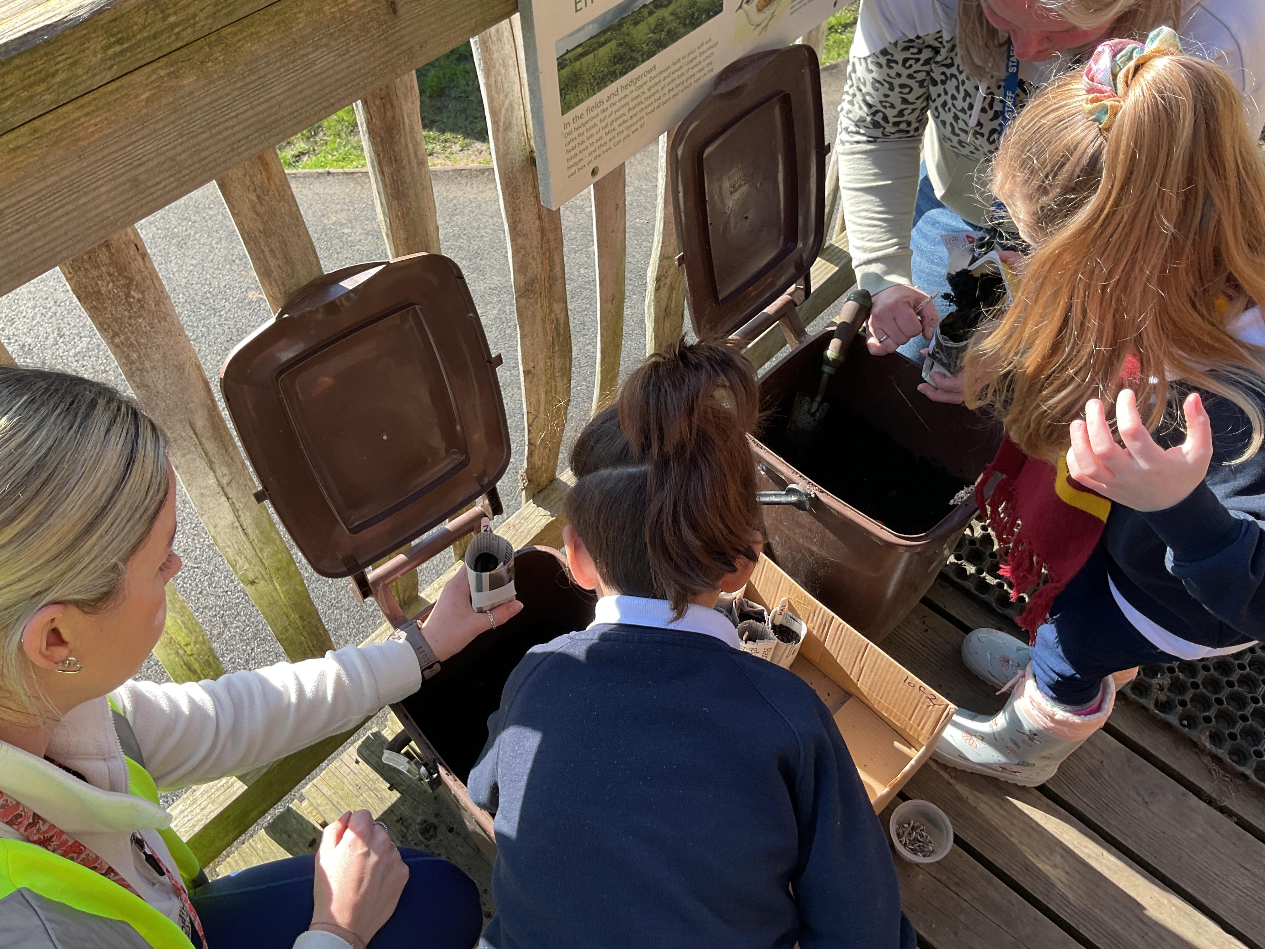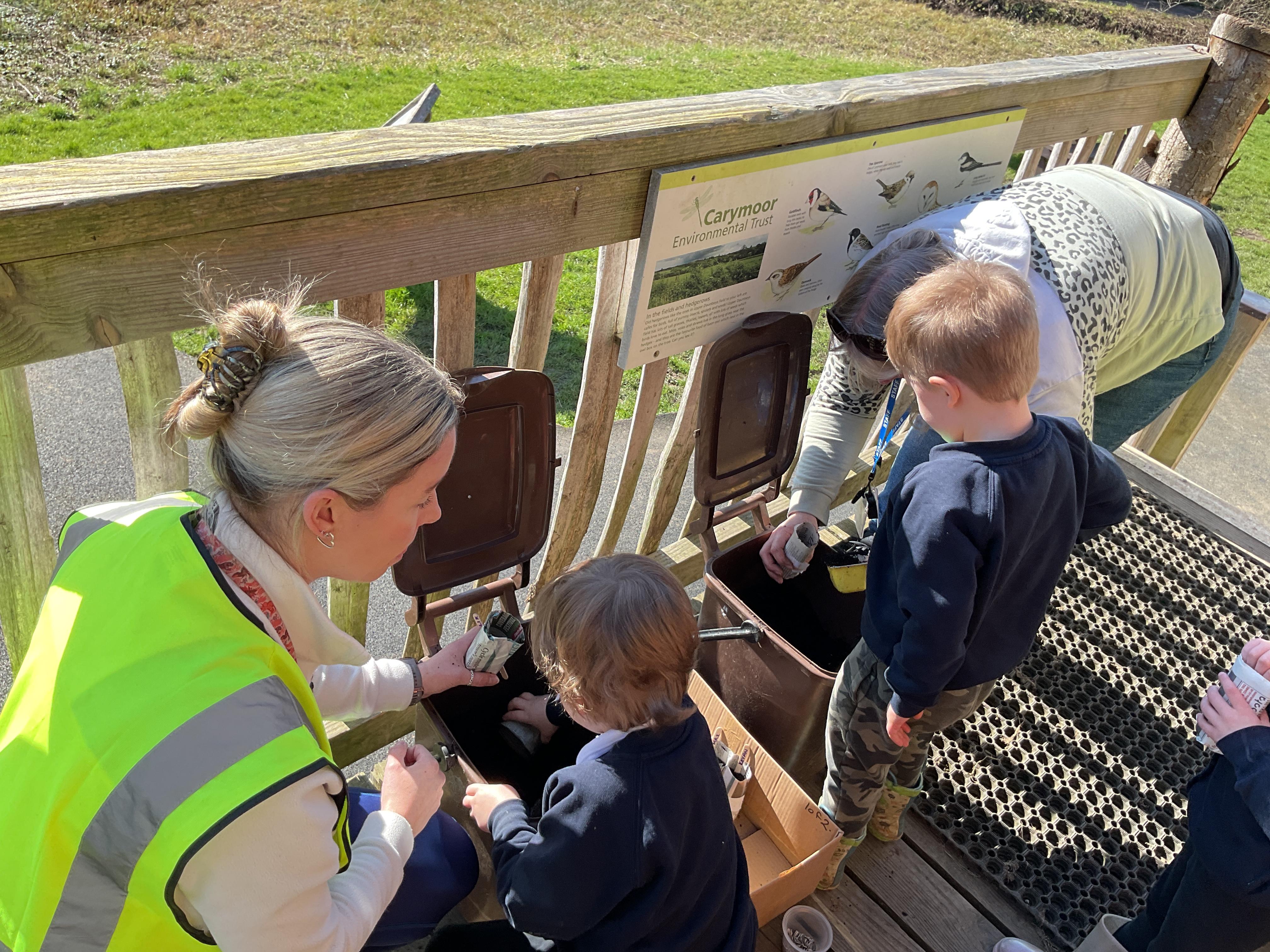 We had a lovely time on our school trip to Carymoor. We learnt all about plants and how they grow. We enjoyed making our own planters out of newspaper and then planted some sunflower seeds. We went outside and talked about all the things a plant needs to help it grow and played a game to help us remember. Finally after lunch we went down to woods and explored the trees, looking at their different leaves.