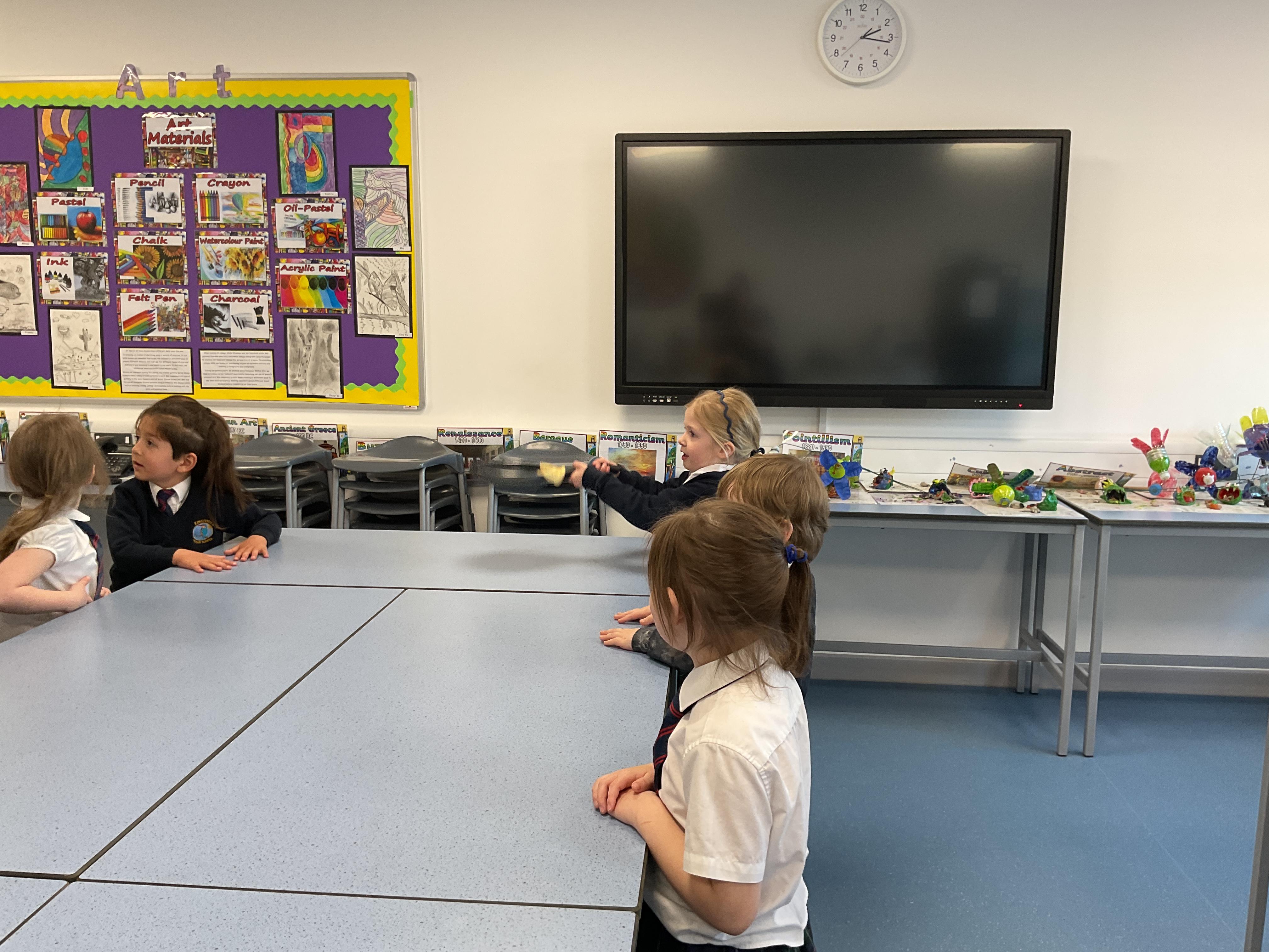 We were lucky to have Iris in to visit us and she brought her guide dog Nancy along. She talked to us about how guide dogs are helpful and what Nancy is learning to do. We then had the opportunity to stroke Nancy if we wanted to.