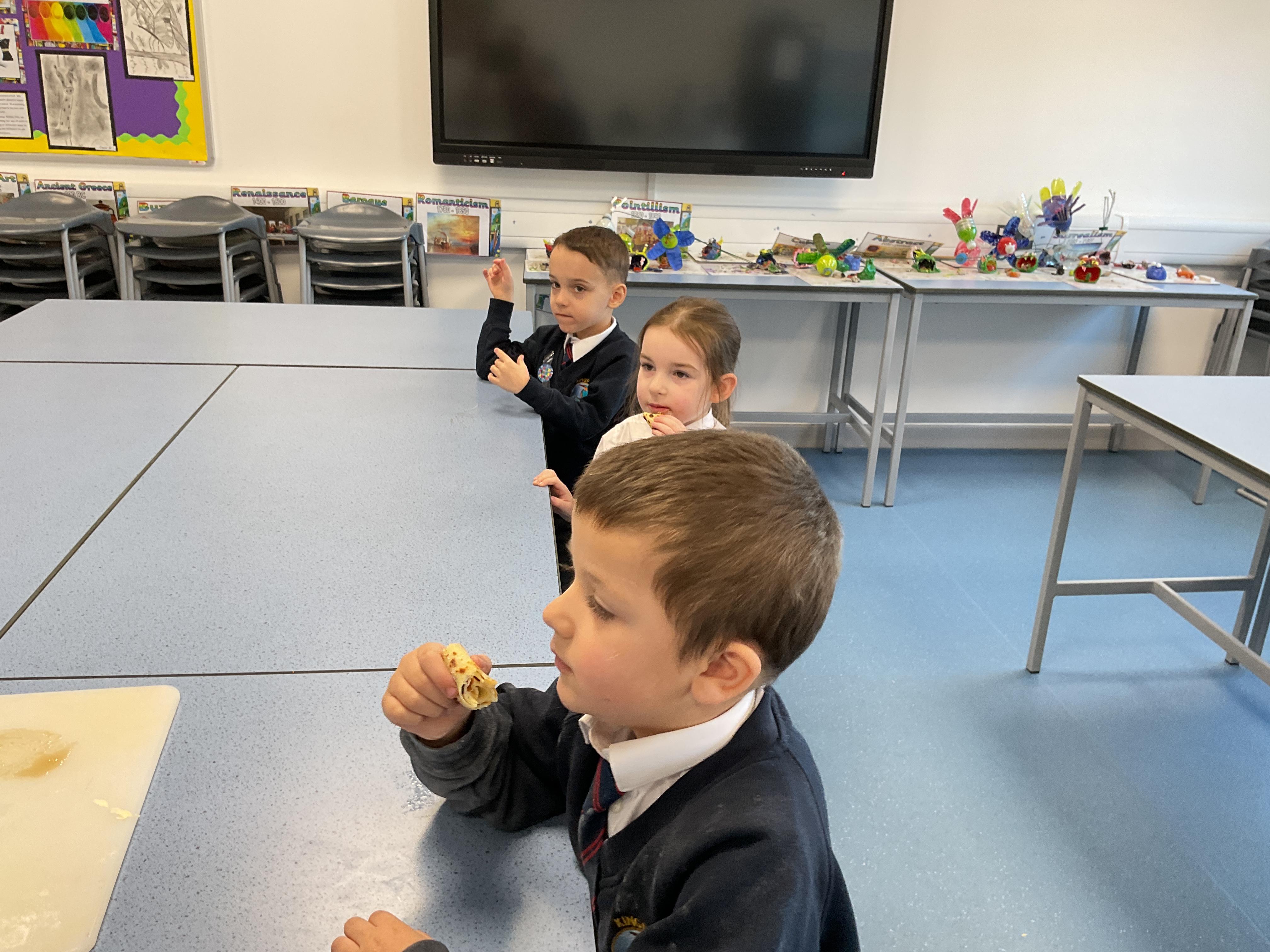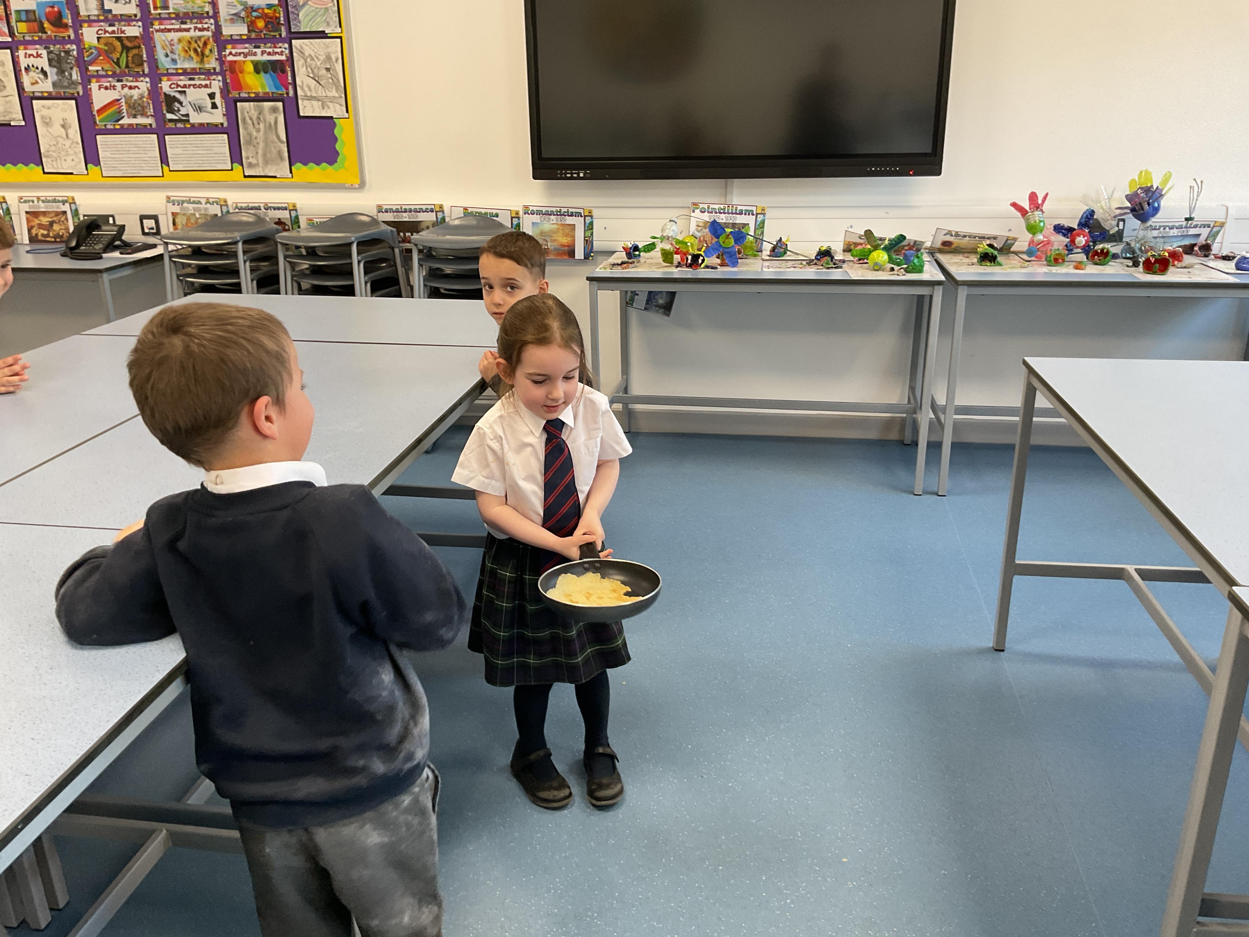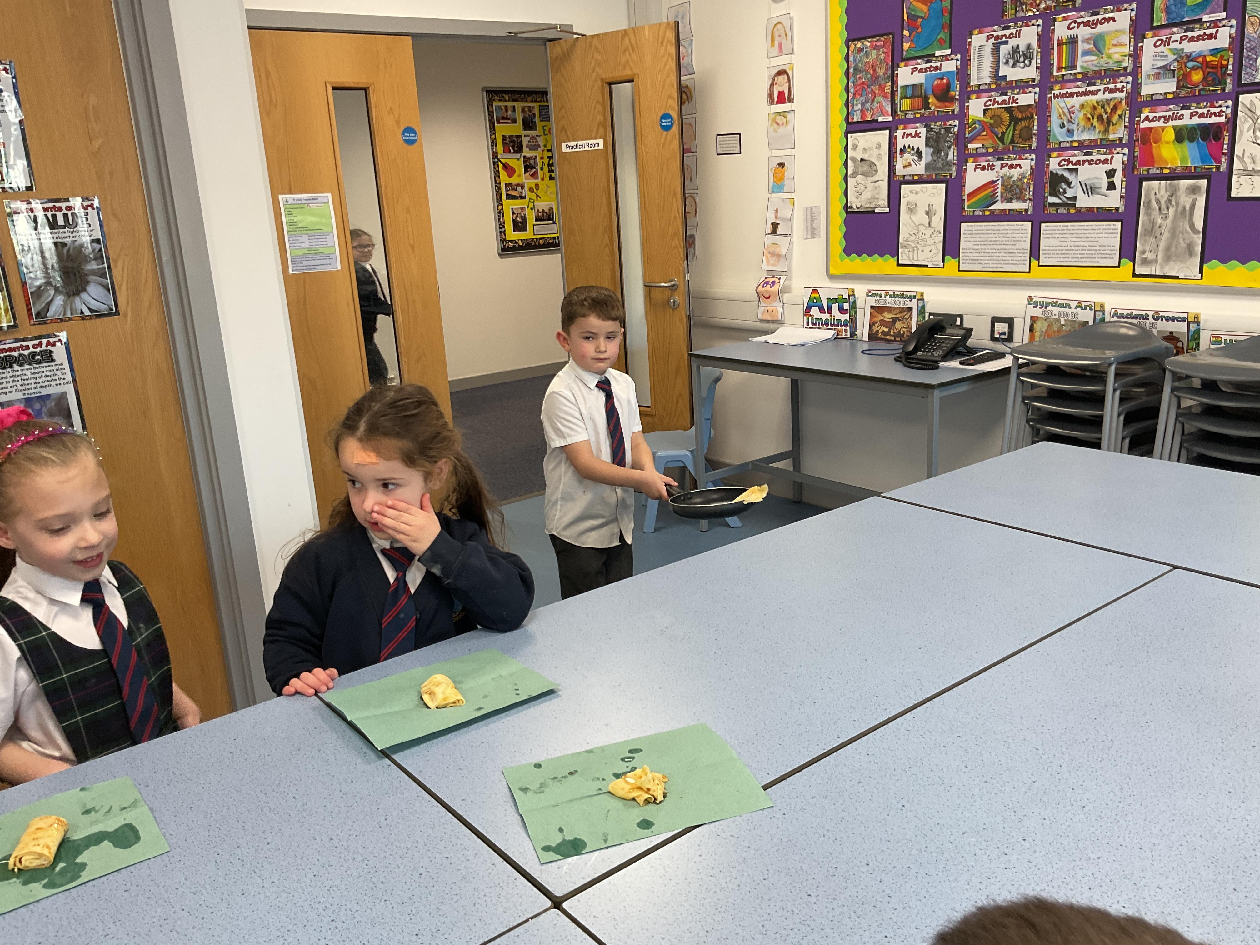 The children had great fun making, flipping and tasting pancakes with Mrs Ostridge on pancake day.