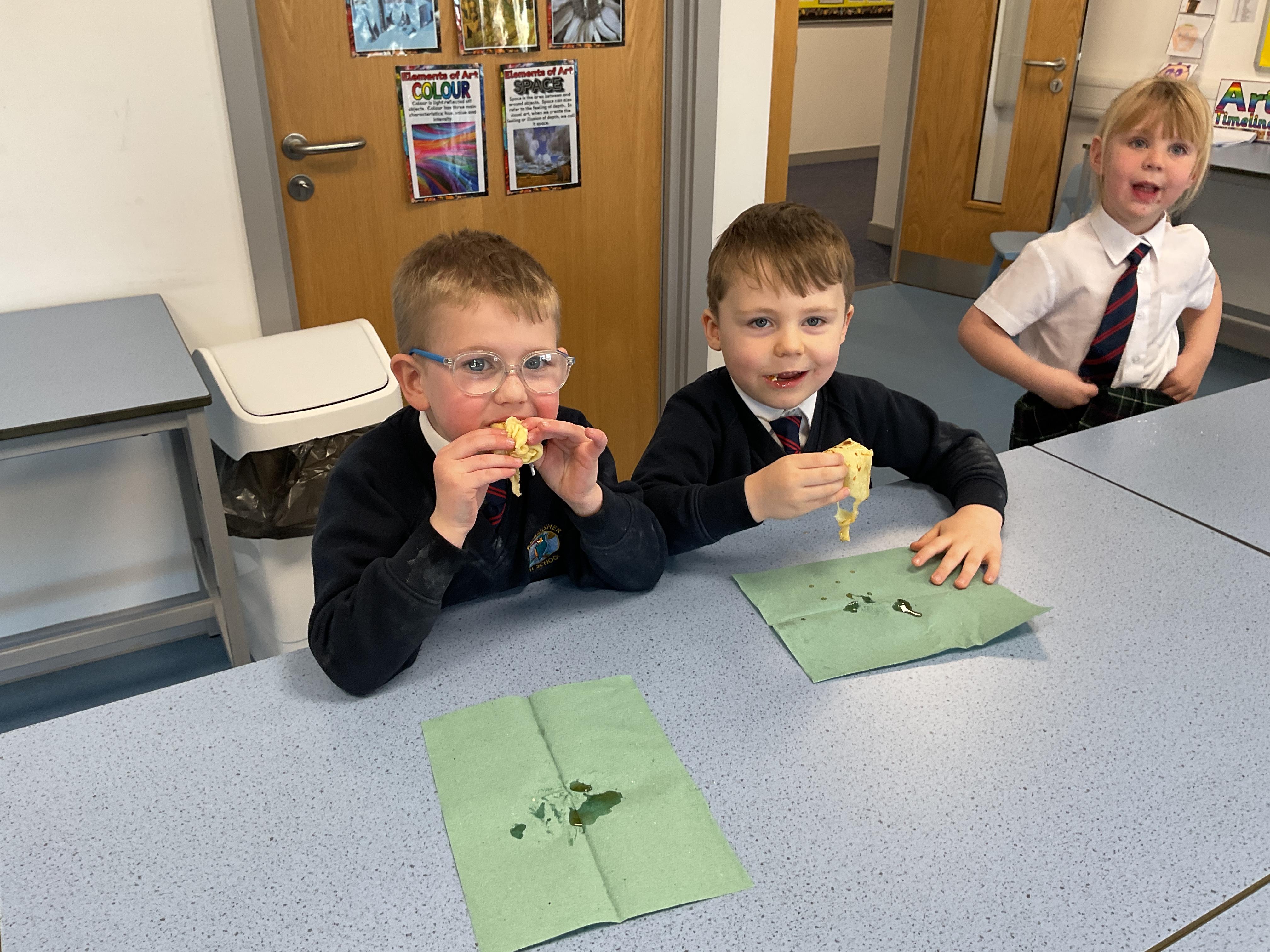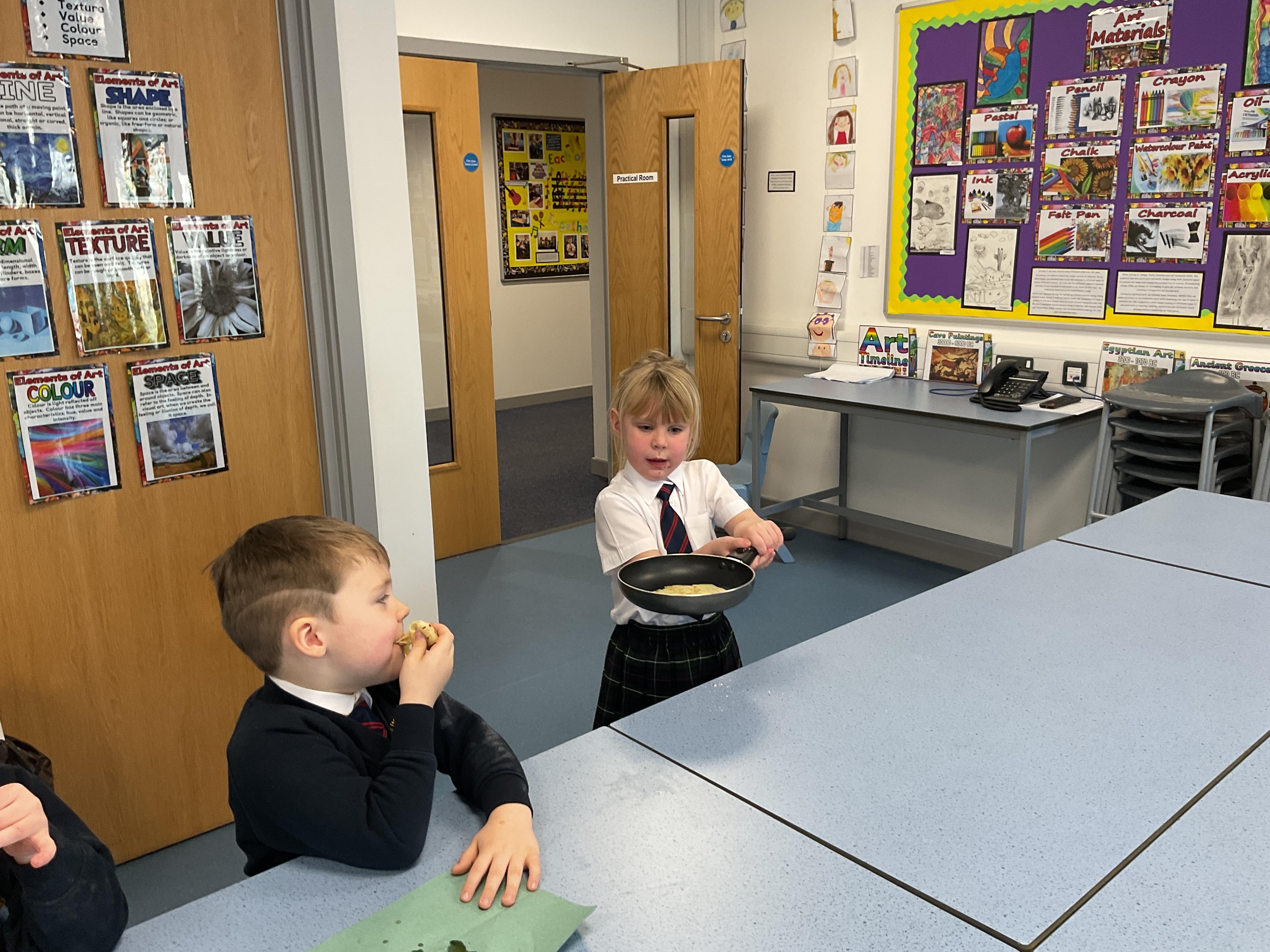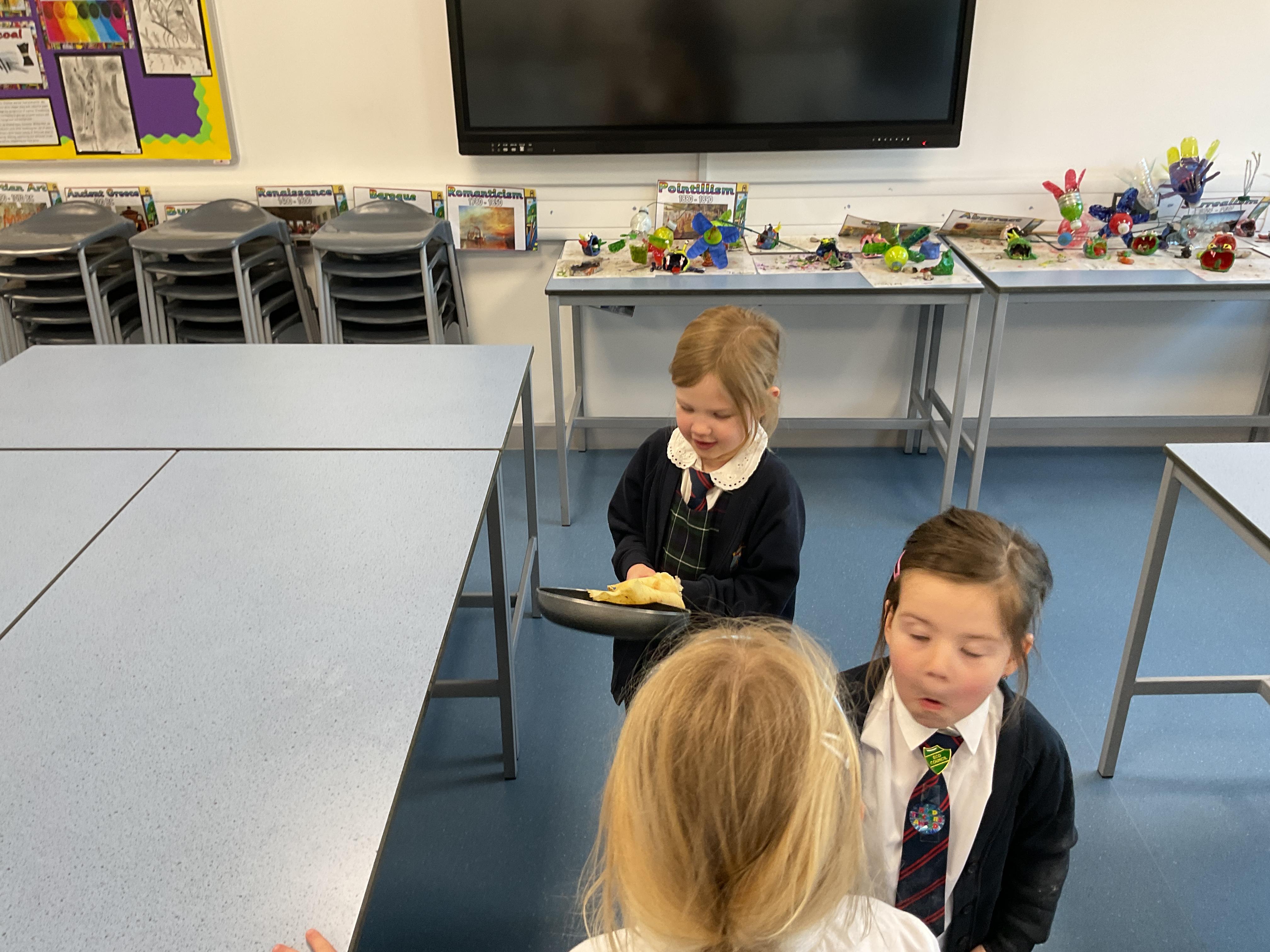 The children had great fun making, flipping and tasting pancakes with Mrs Ostridge on pancake day.