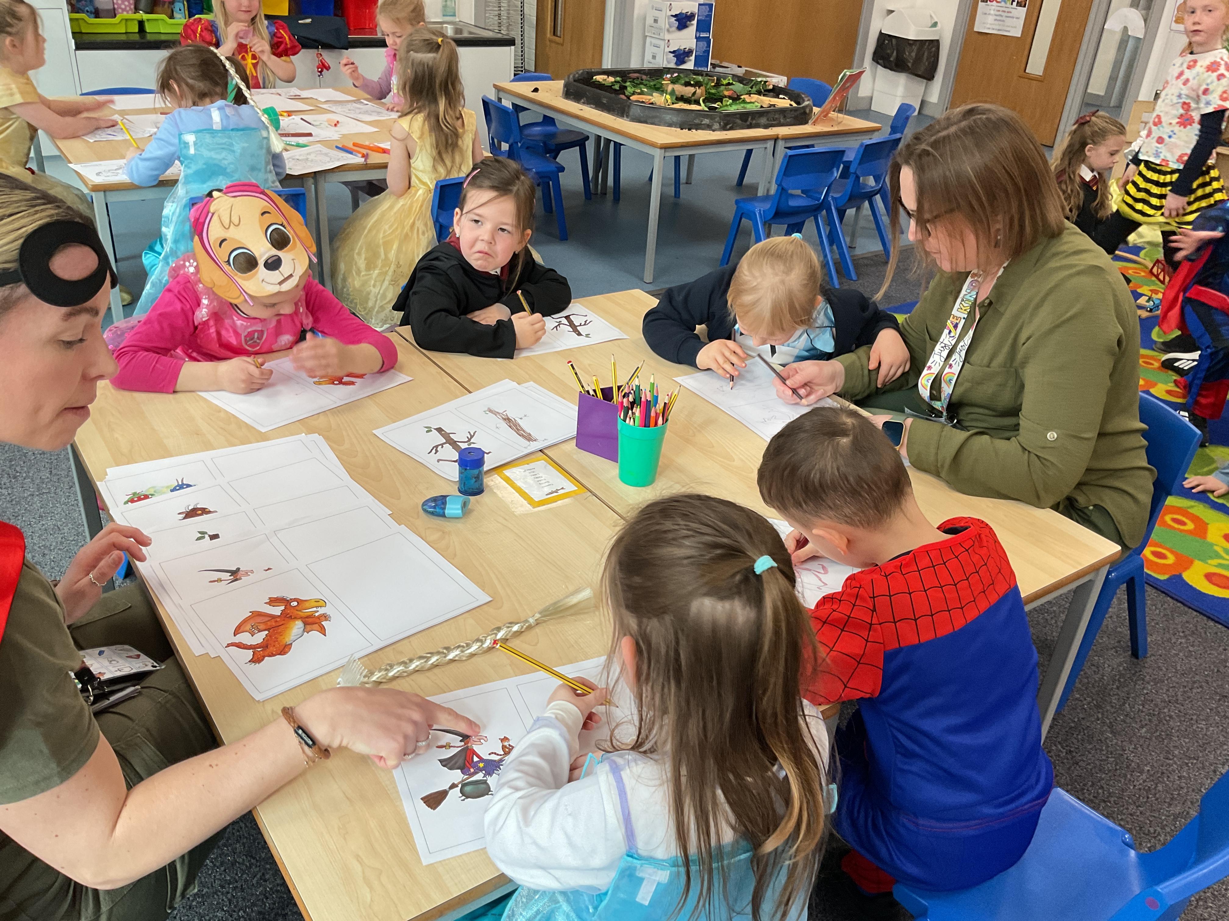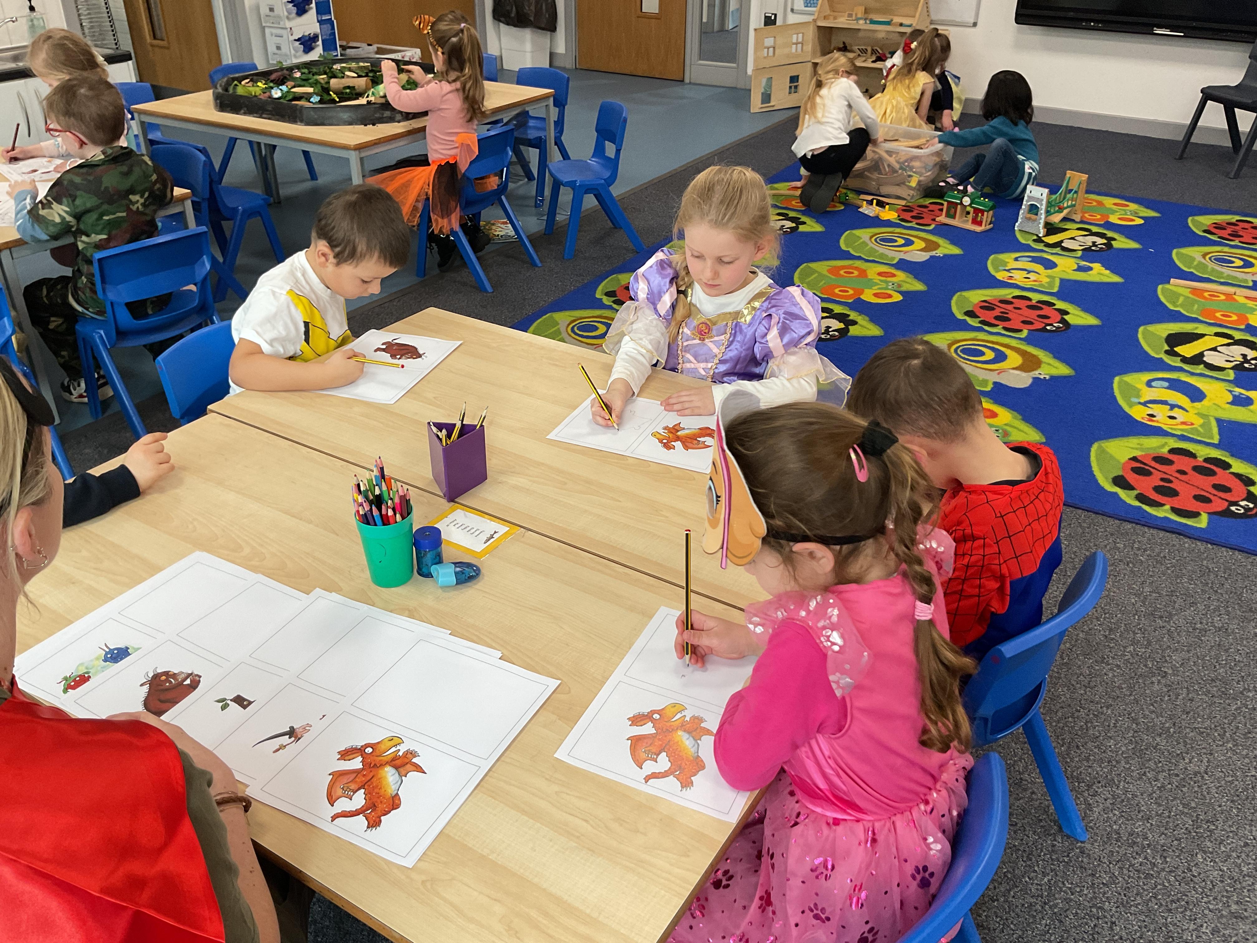 We had a wonderful time on world book day. All of the children looked amazing in their costumes. In Minnows we had a focus on Axel Scheffler, we enjoyed retelling the stories of Superworm and Tiddler and we all had a go at drawing some of Axel Schefflers characters. Finally we had Sean from Somerset Cricket Federation come in and read us a story about resilience and always trying our best.