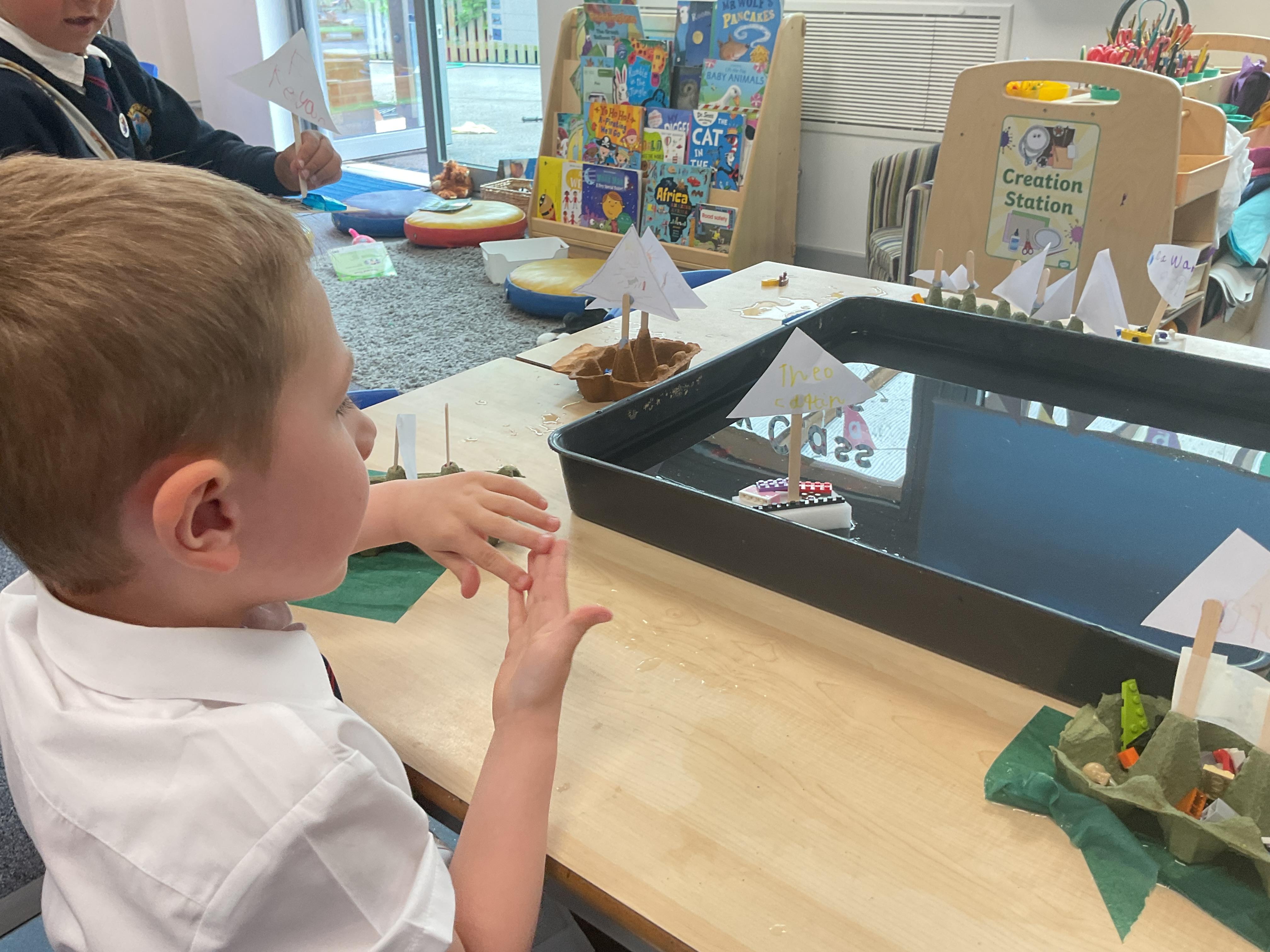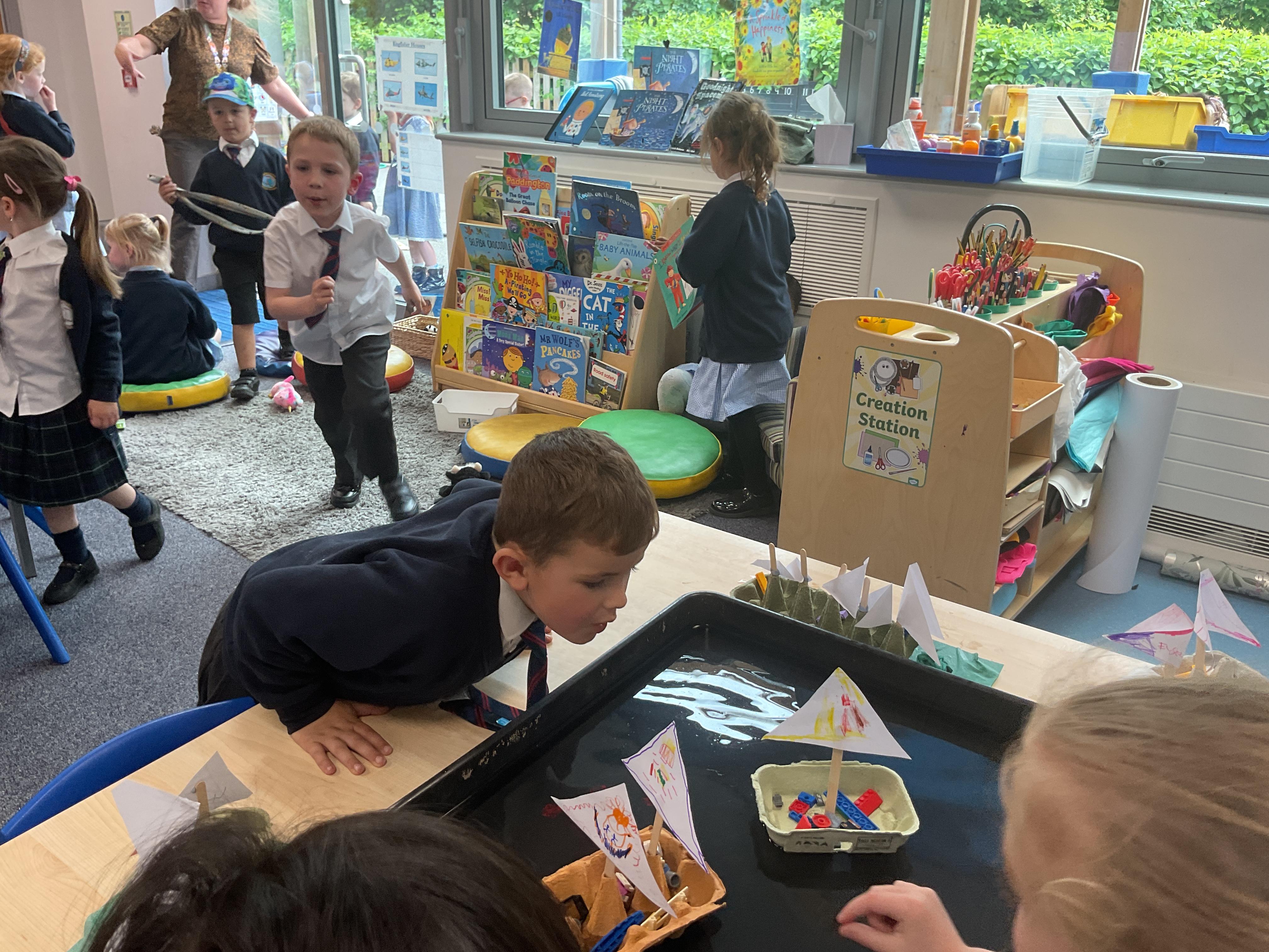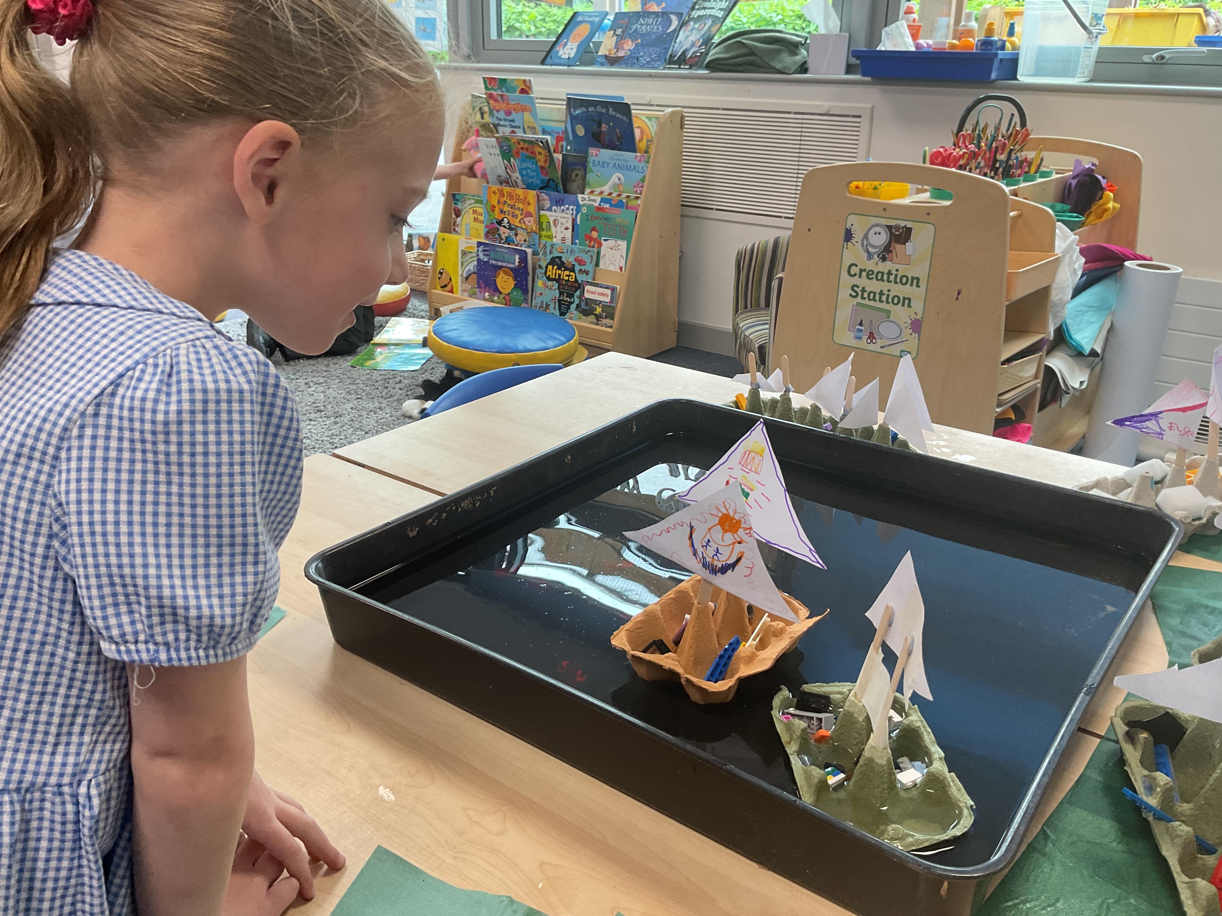 Last we in Minnows our topic was Pirates. We learnt all about pirate ships and the key features a boat needs. We then had a go at using the different materials to make our own boats and tested them on the water to see if they would float or sink.