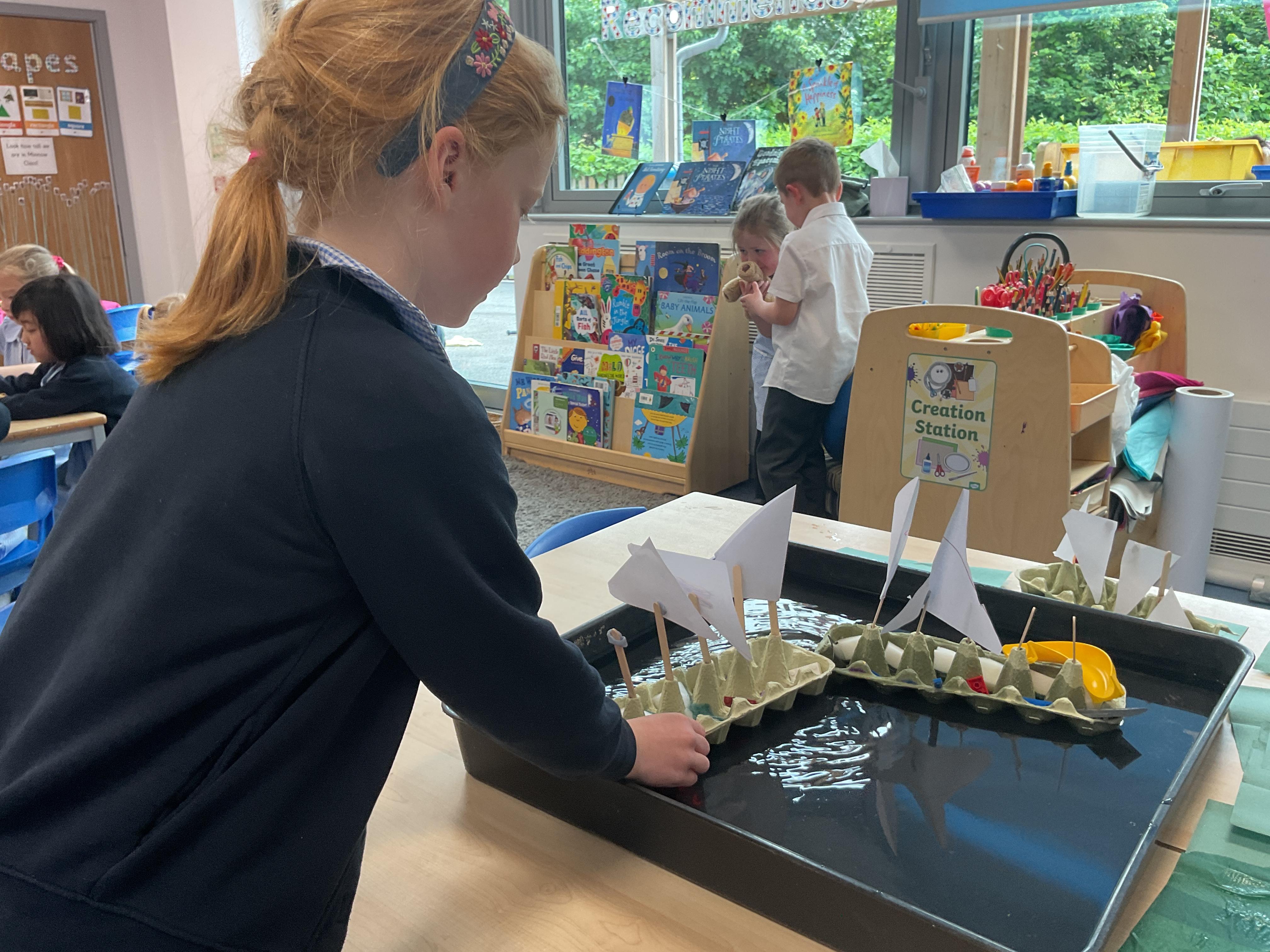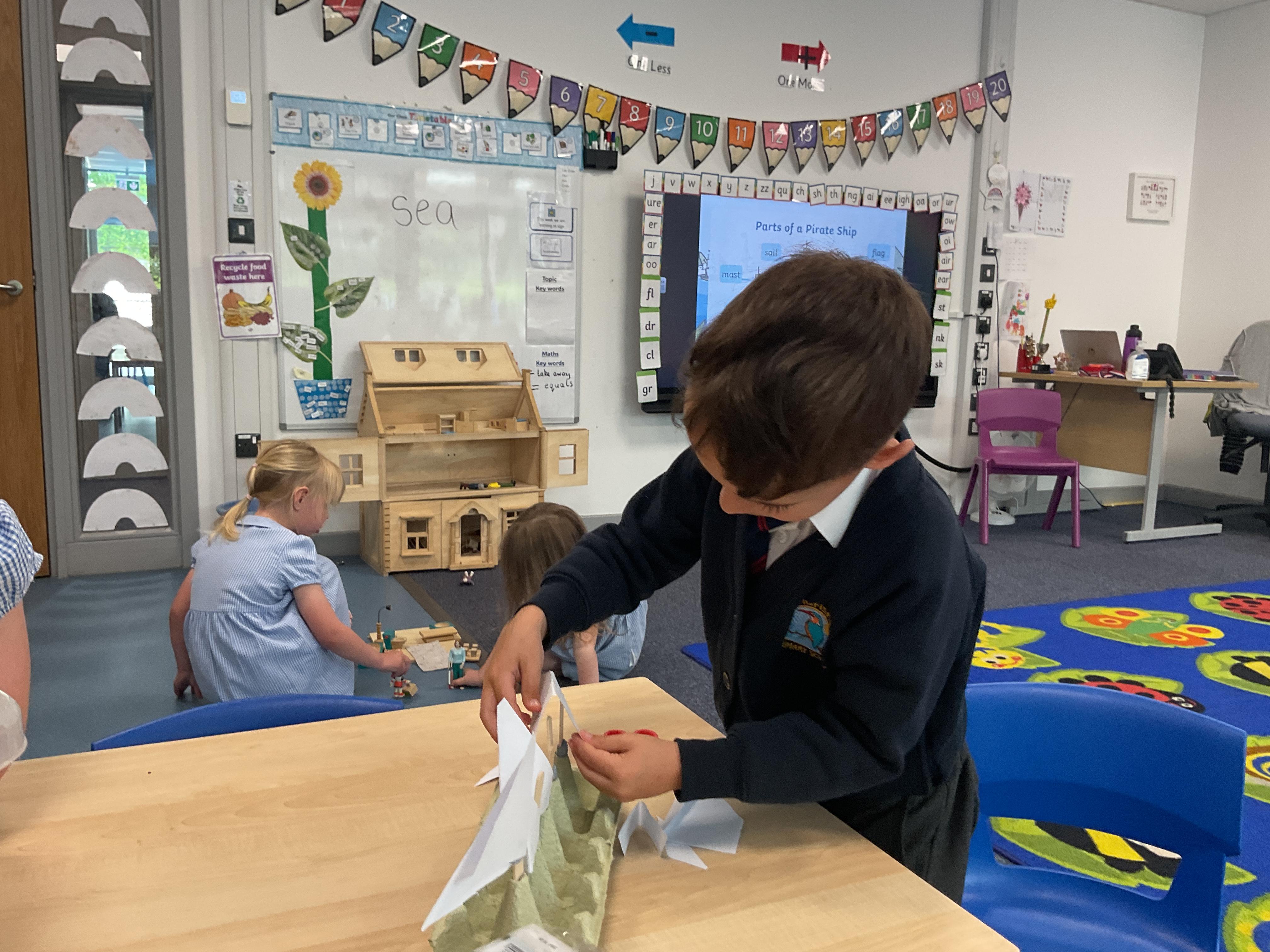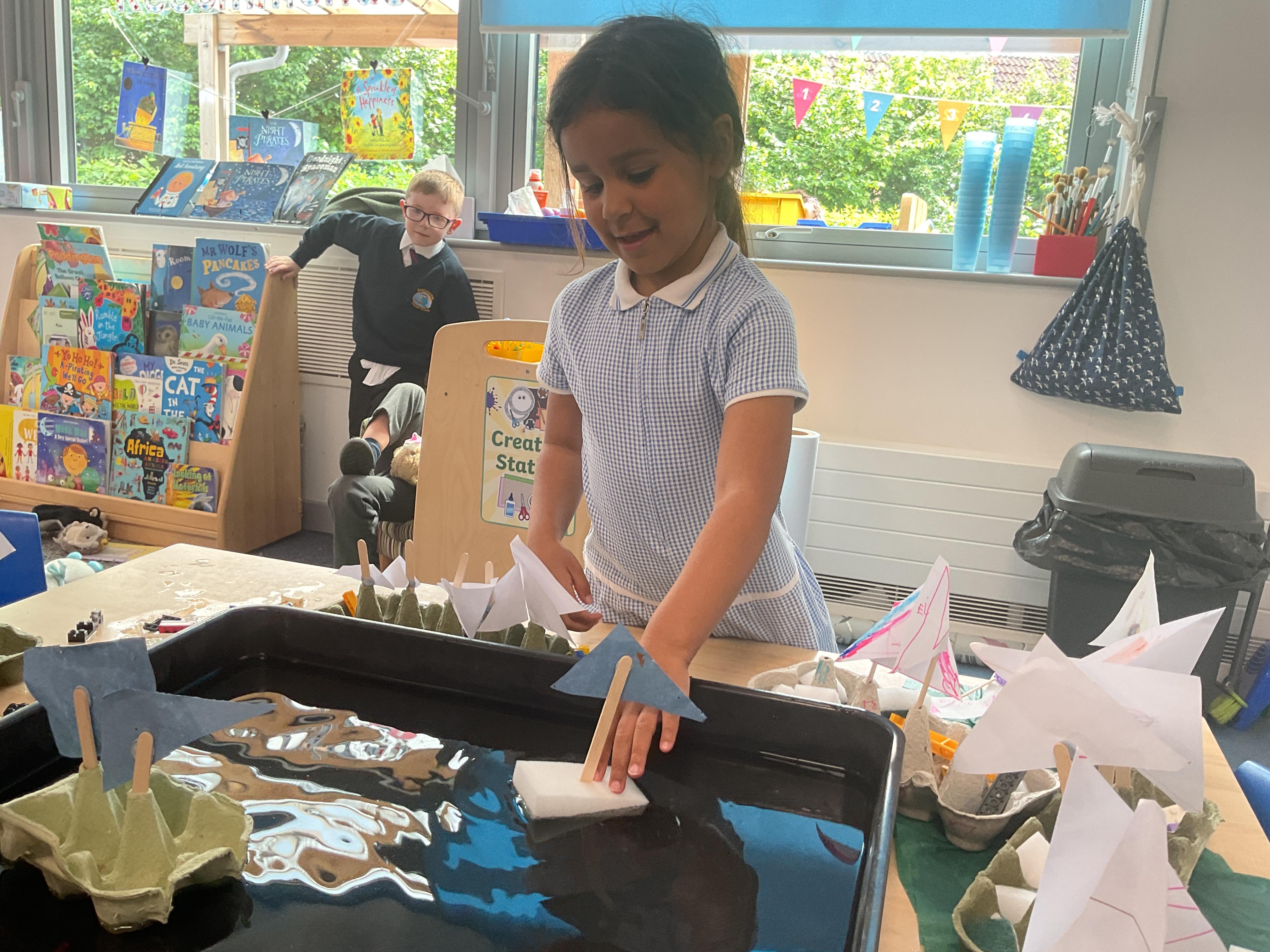 Last we in Minnows our topic was Pirates. We learnt all about pirate ships and the key features a boat needs. We then had a go at using the different materials to make our own boats and tested them on the water to see if they would float or sink.