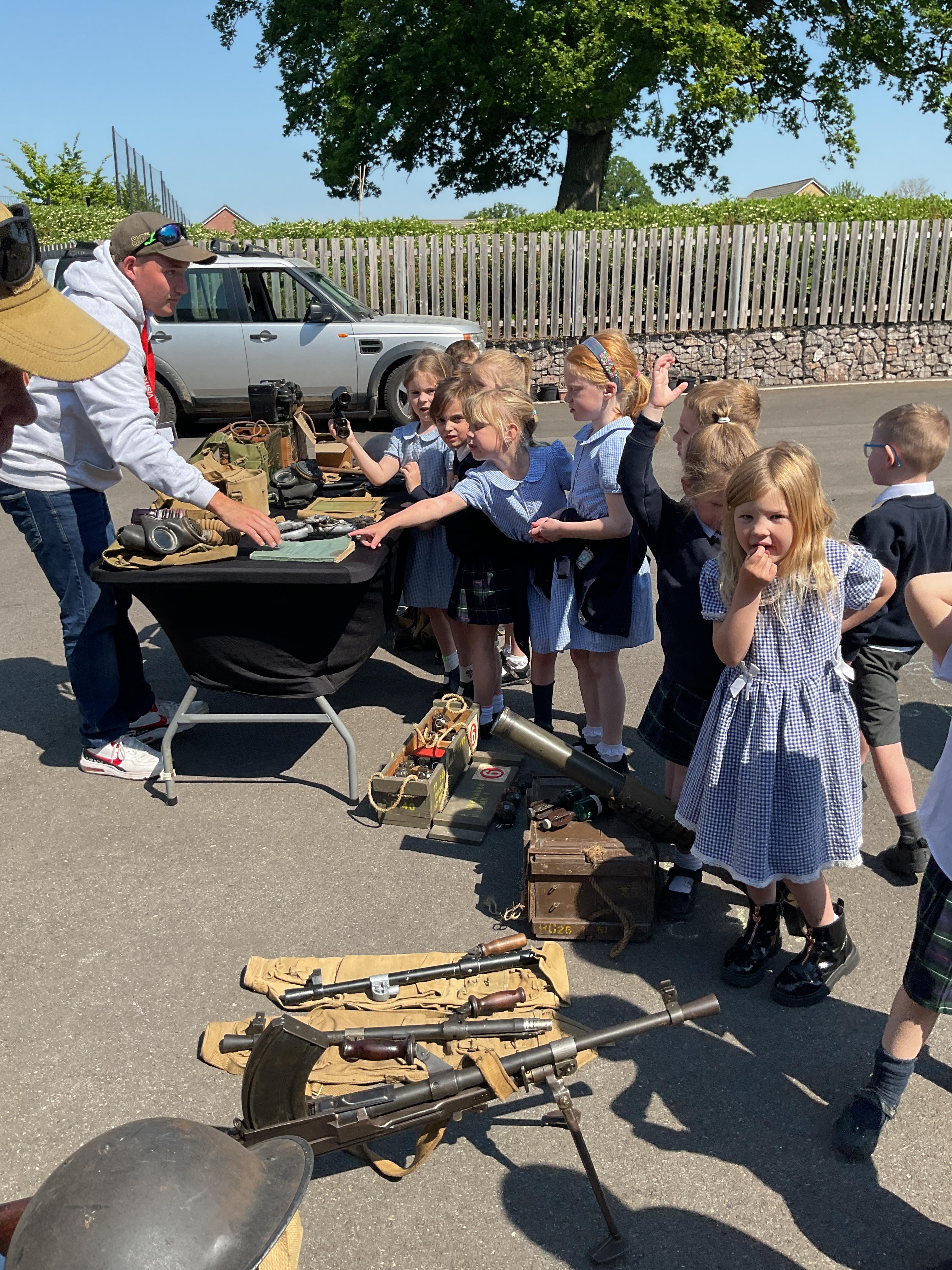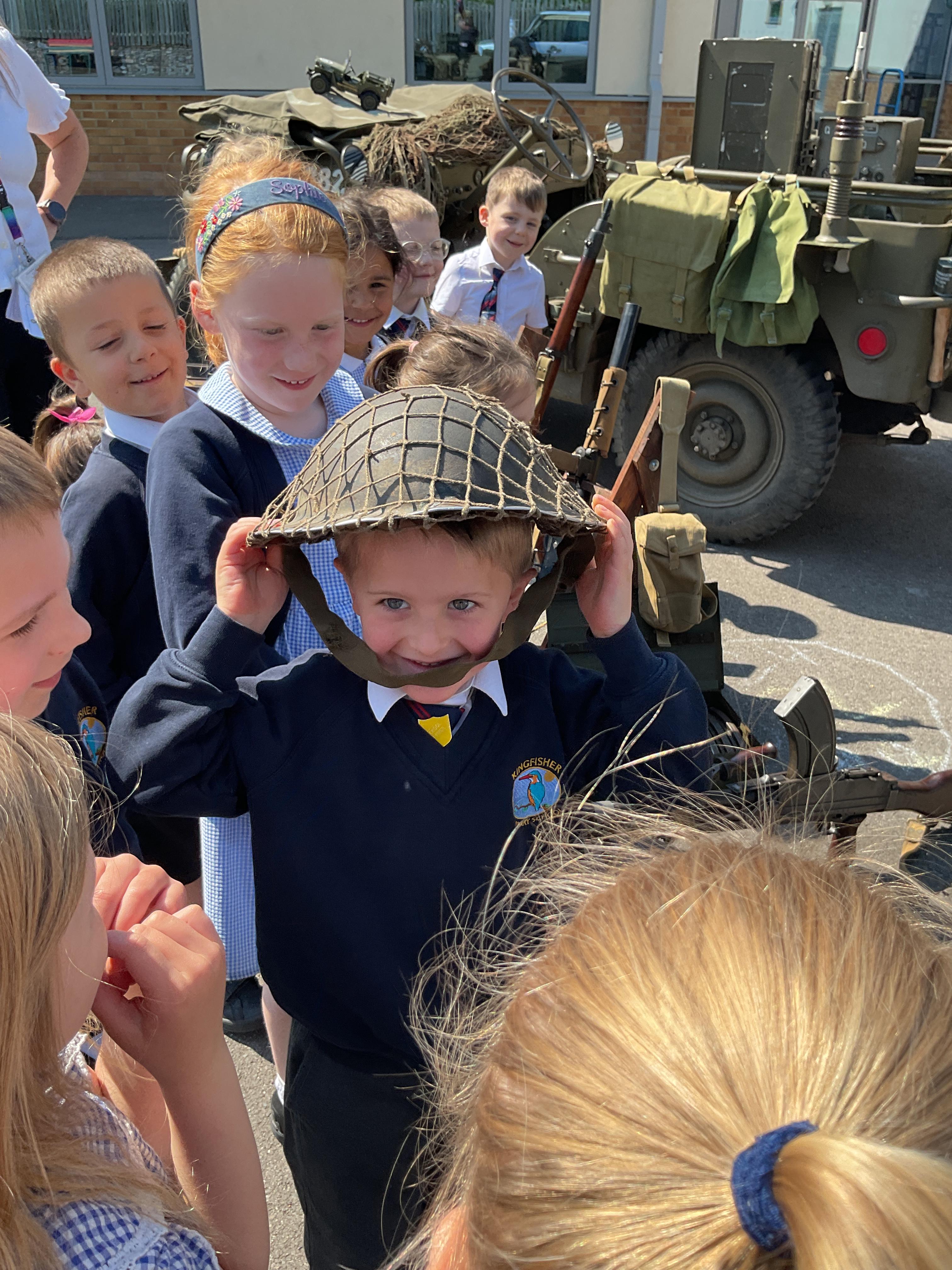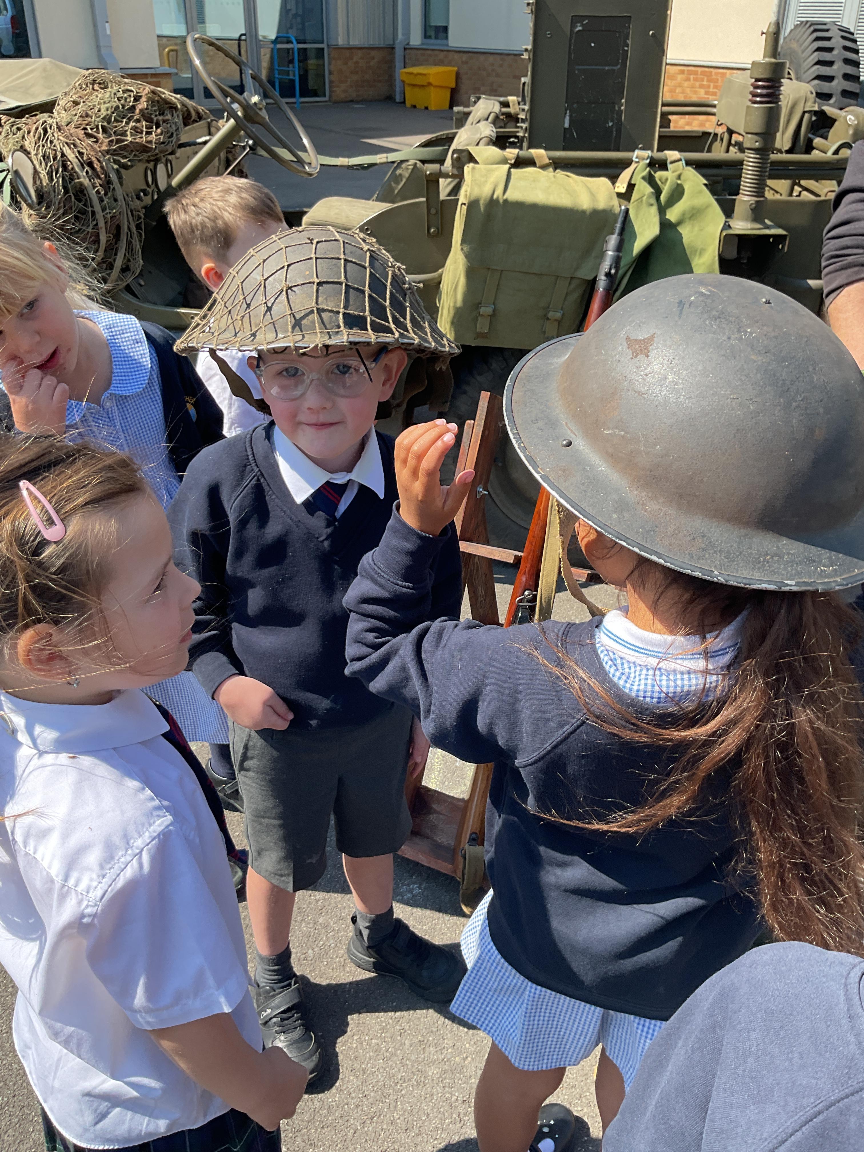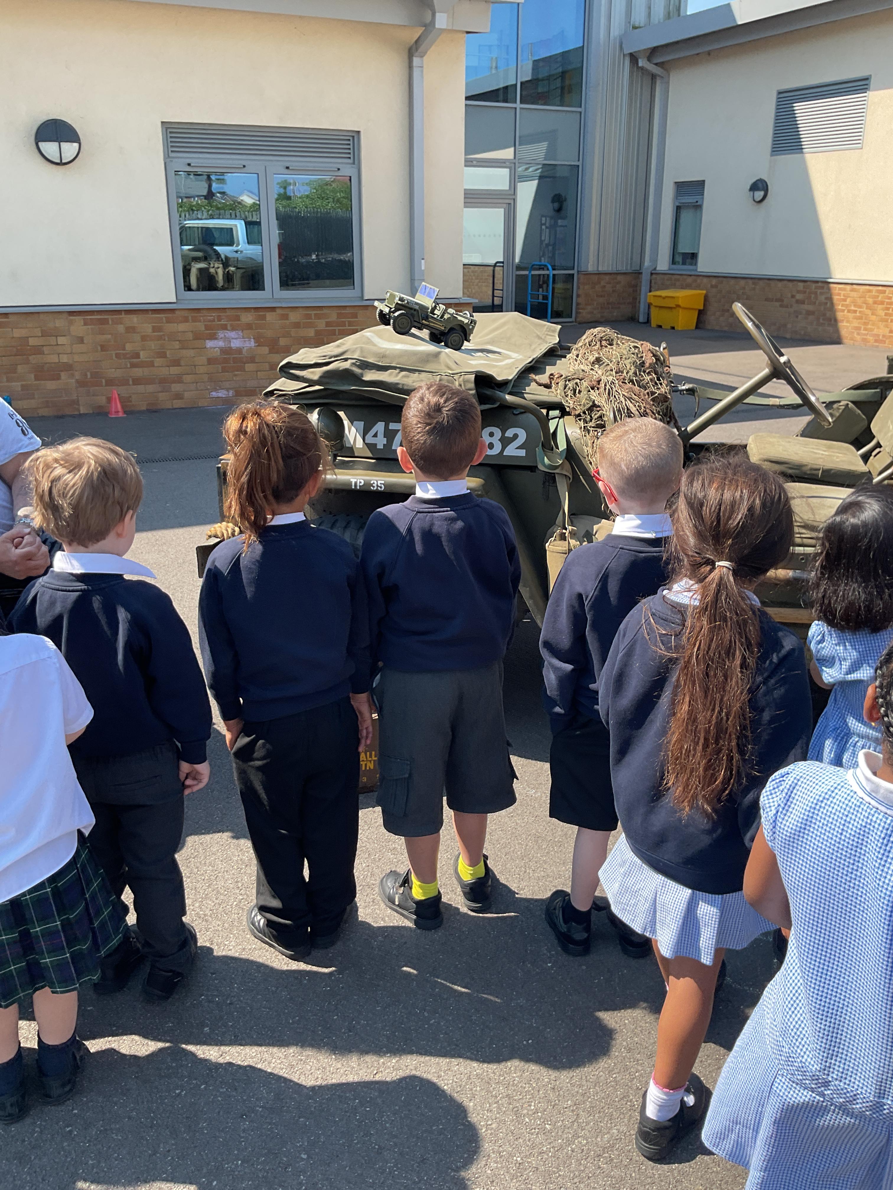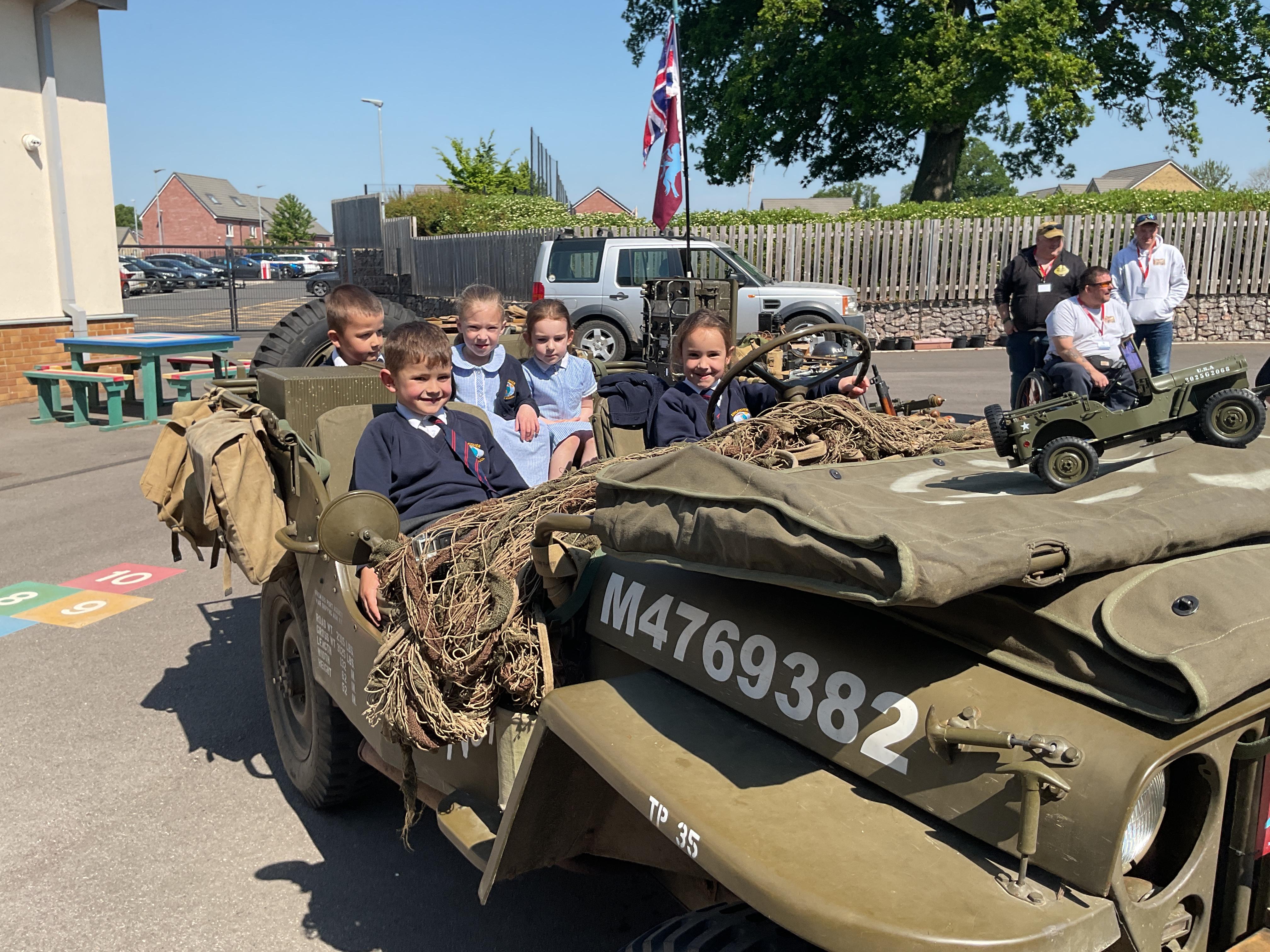 On the Friday after VE Day Mr Glentworth organised for some military vehicles to come into school to round off the  celebrations. We had a great time exploring all of the different artefacts they brought in and even got to have a turn in the jeep.