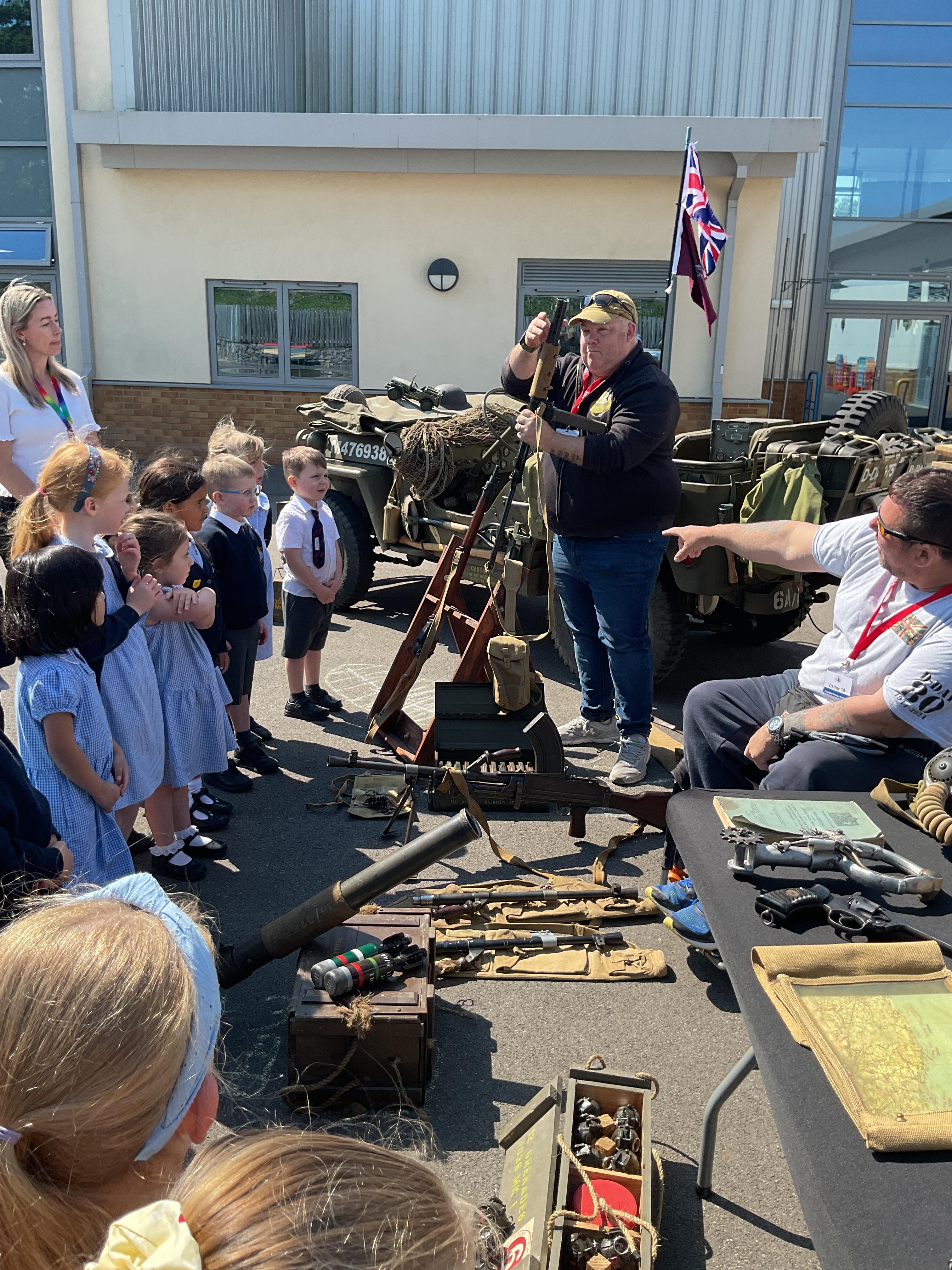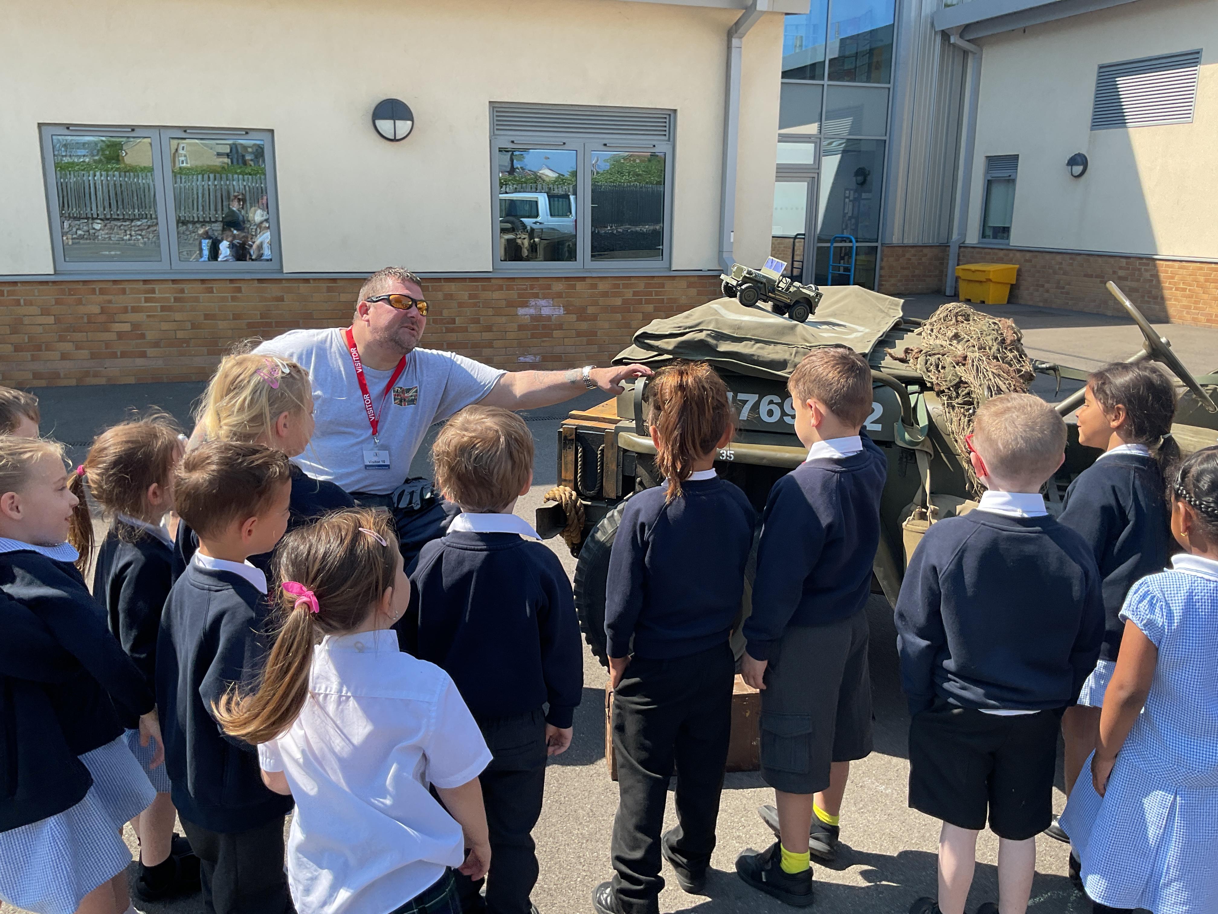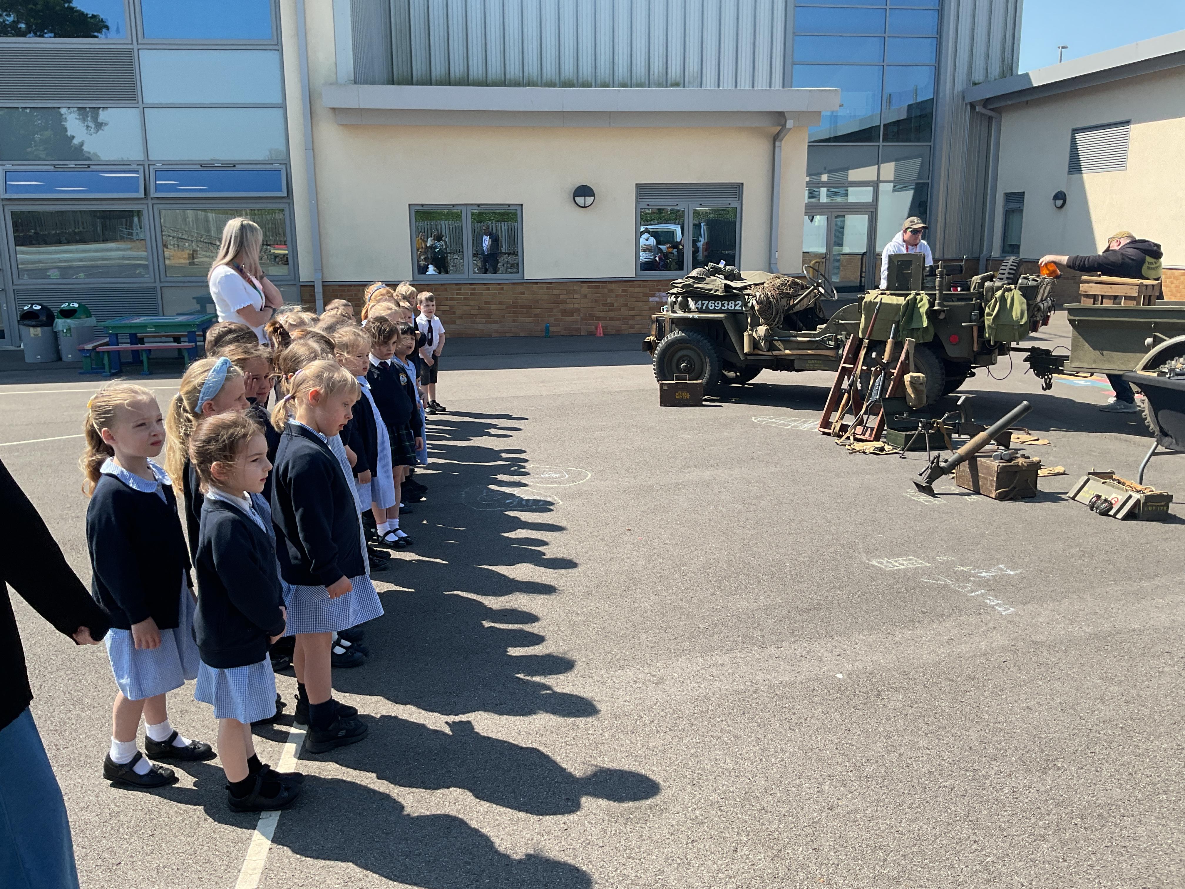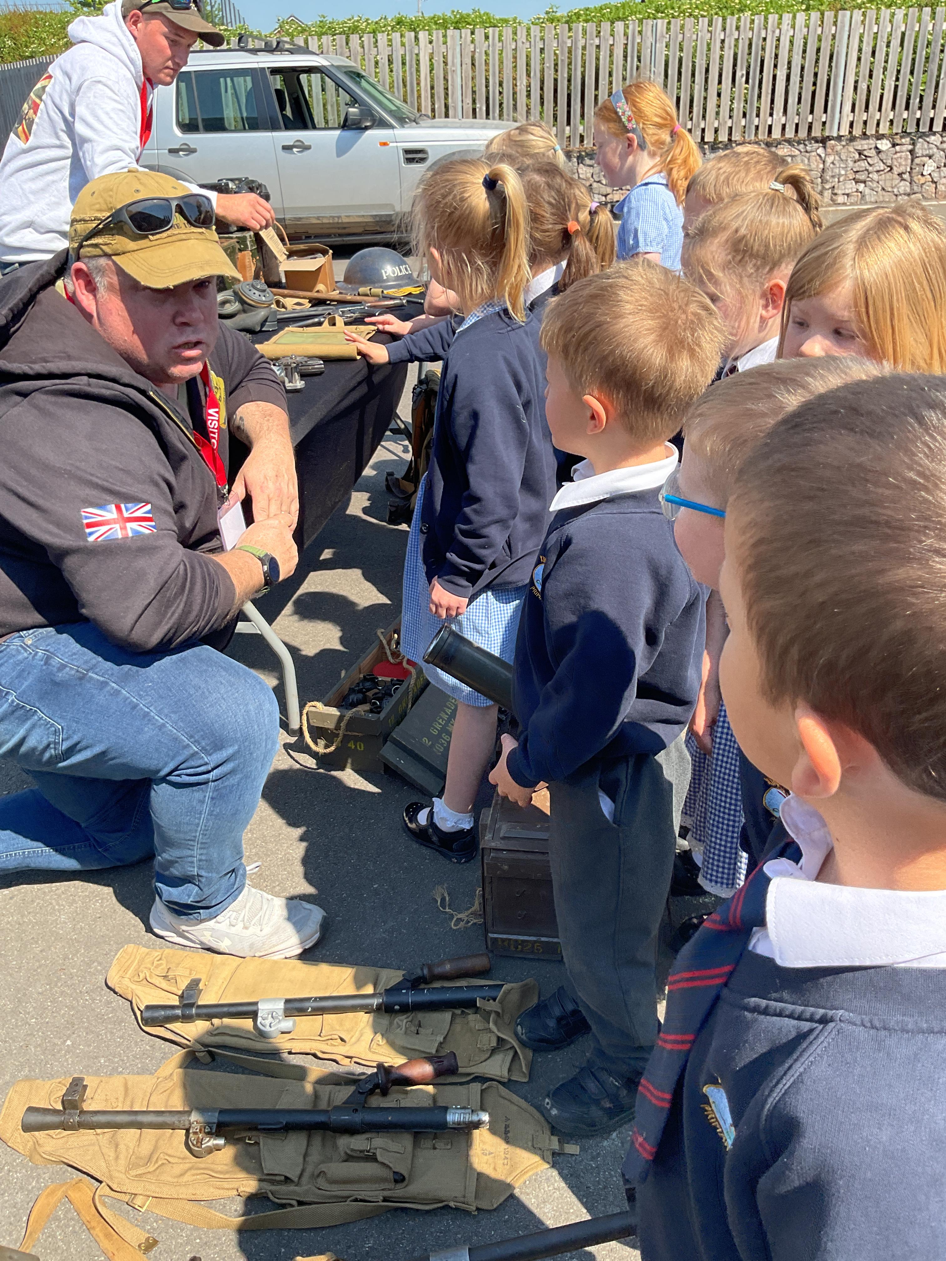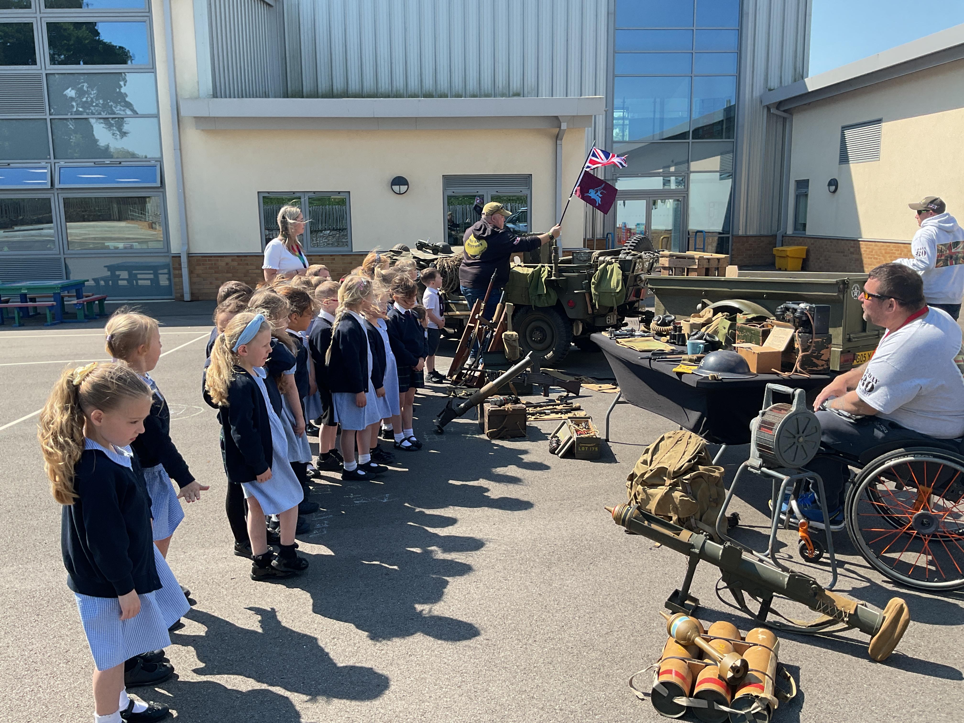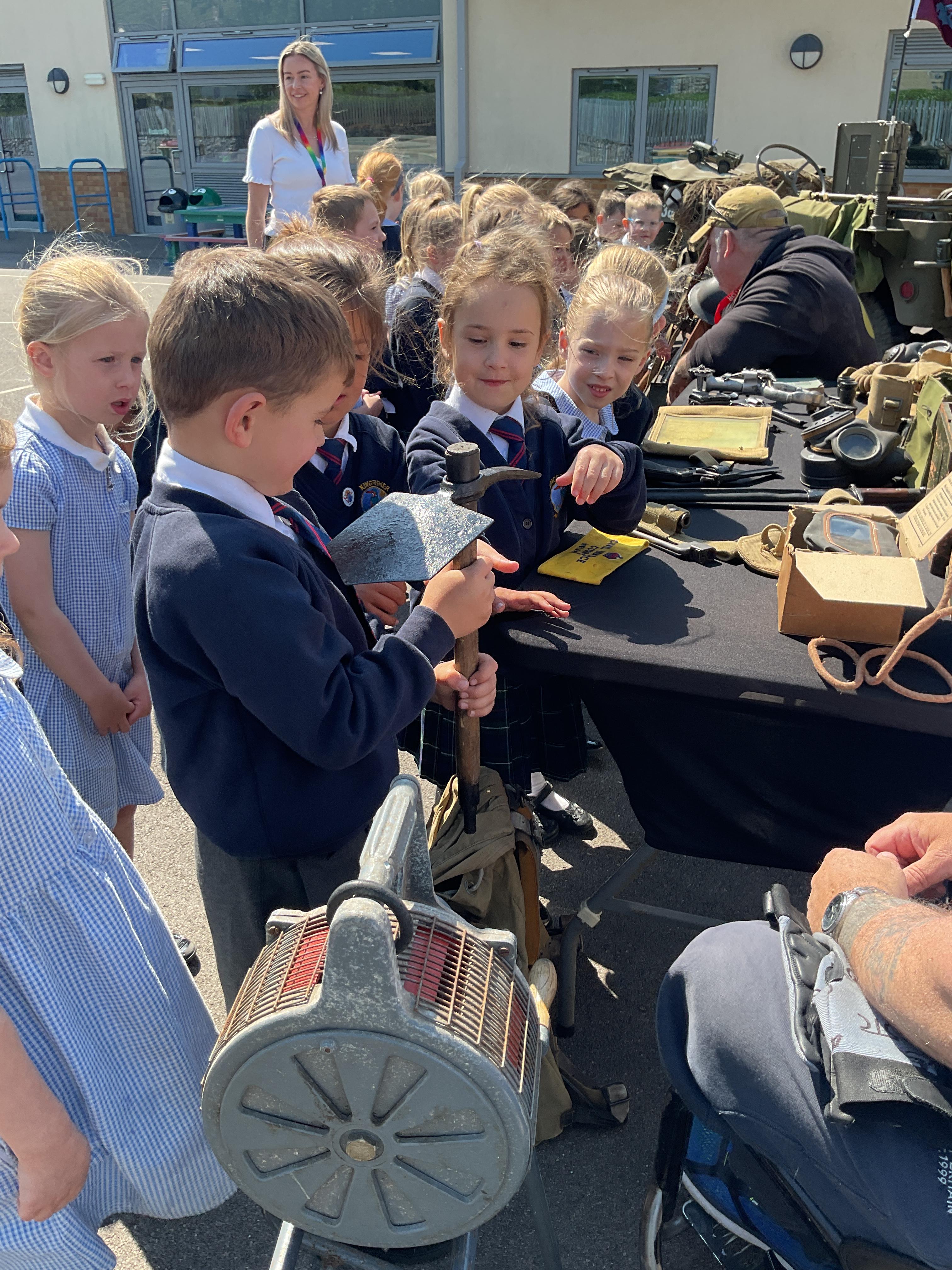 On the Friday after VE Day Mr Glentworth organised for some military vehicles to come into school to round off the  celebrations. We had a great time exploring all of the different artefacts they brought in and even got to have a turn in the jeep.