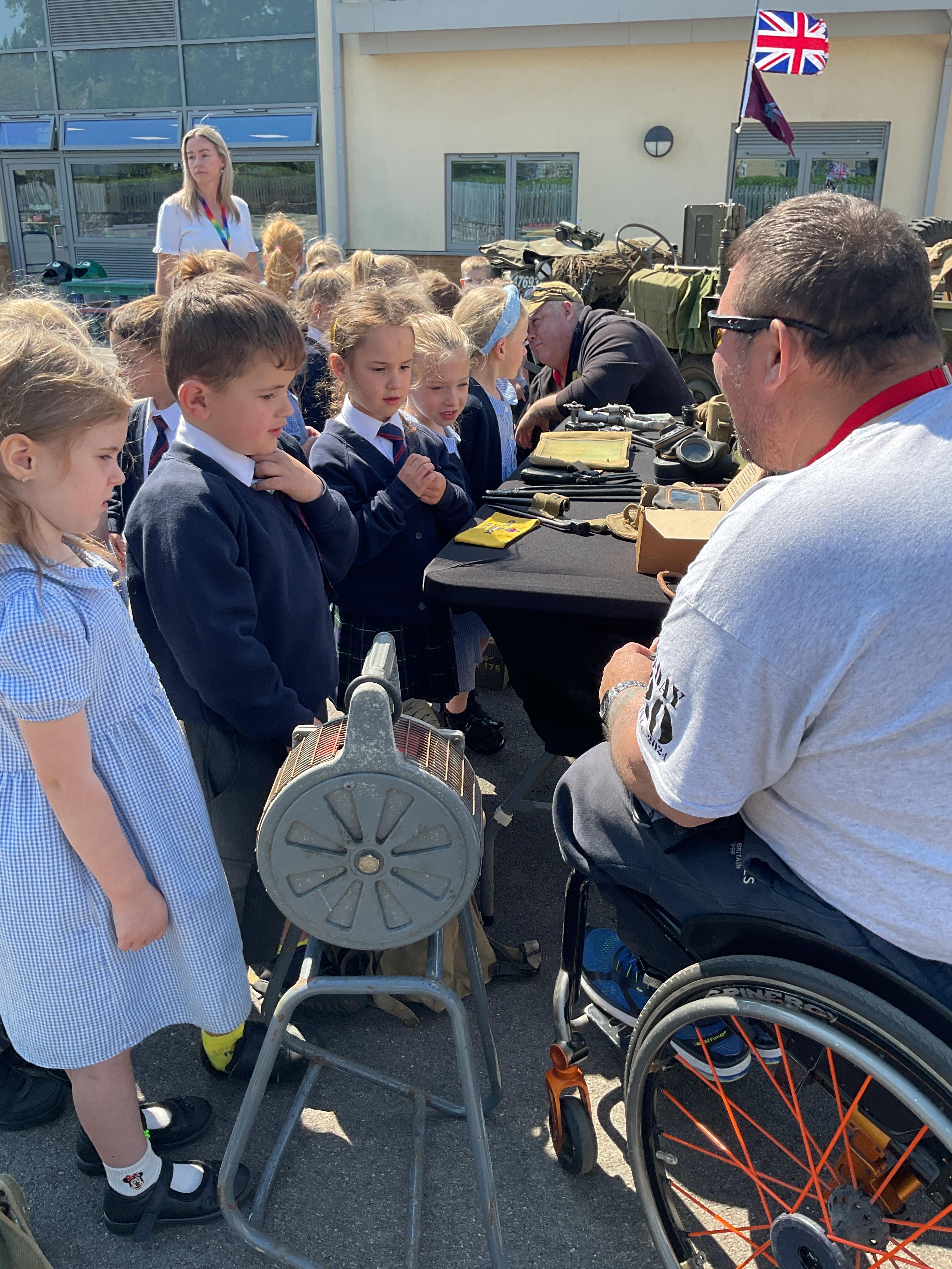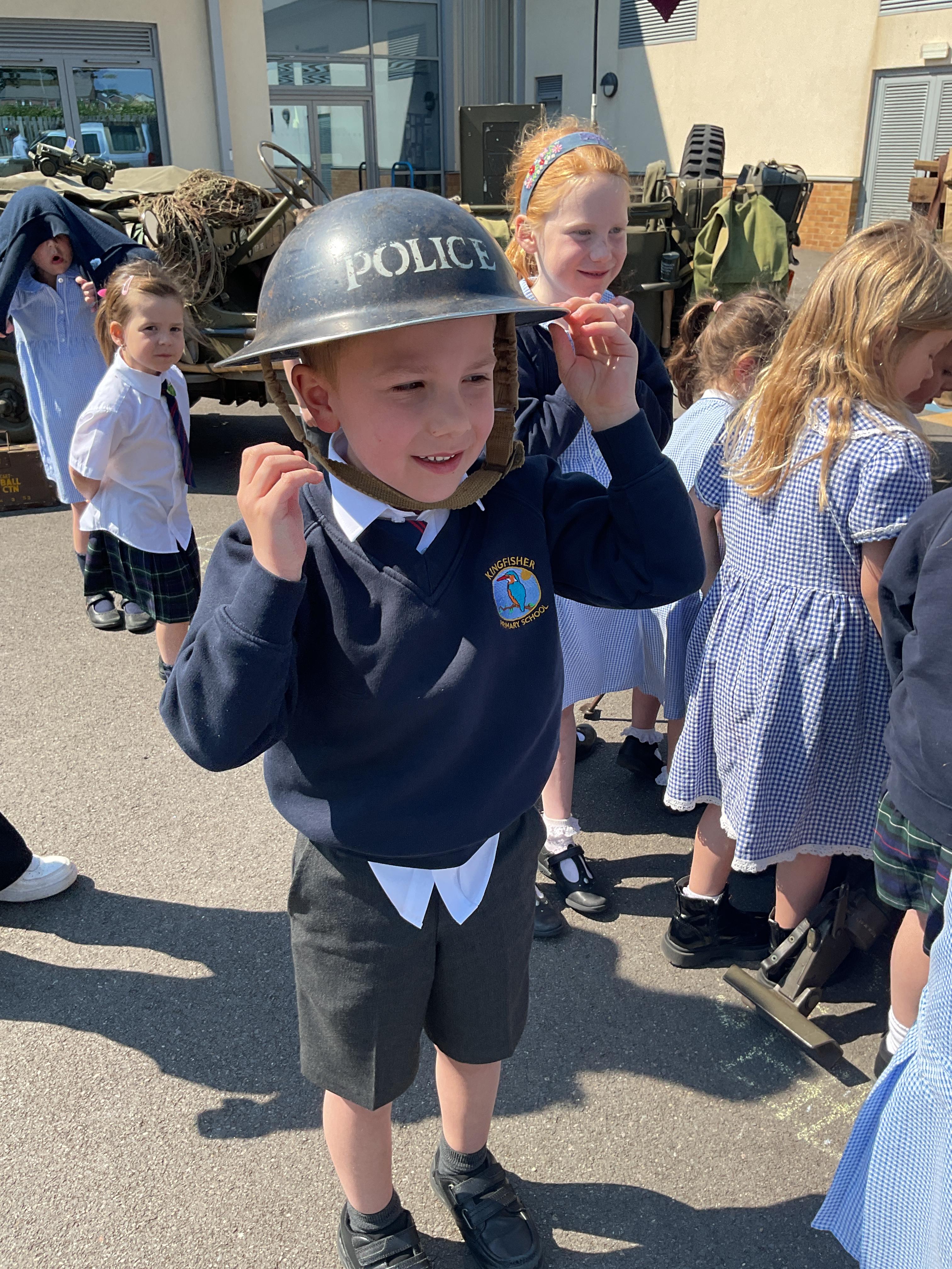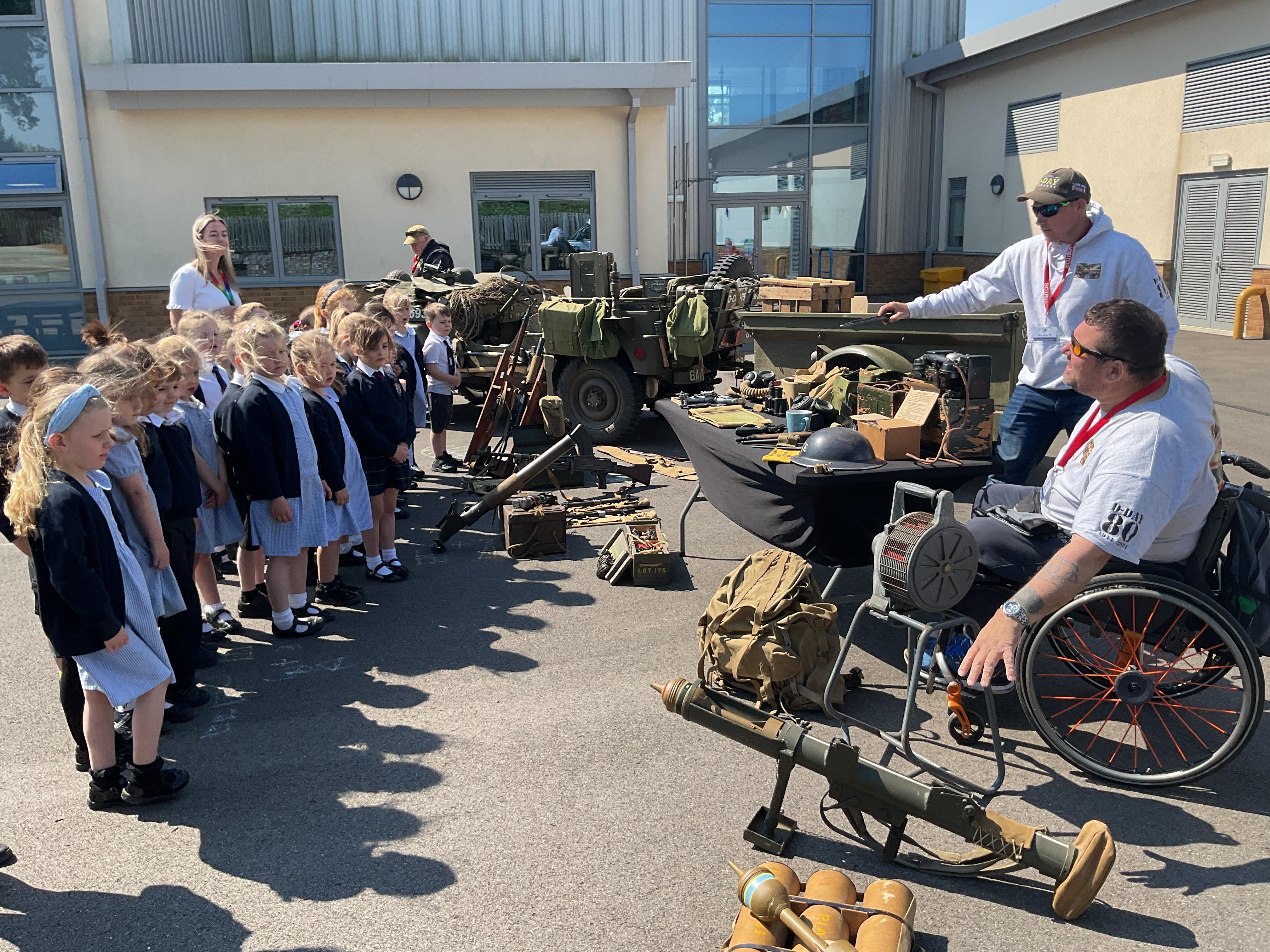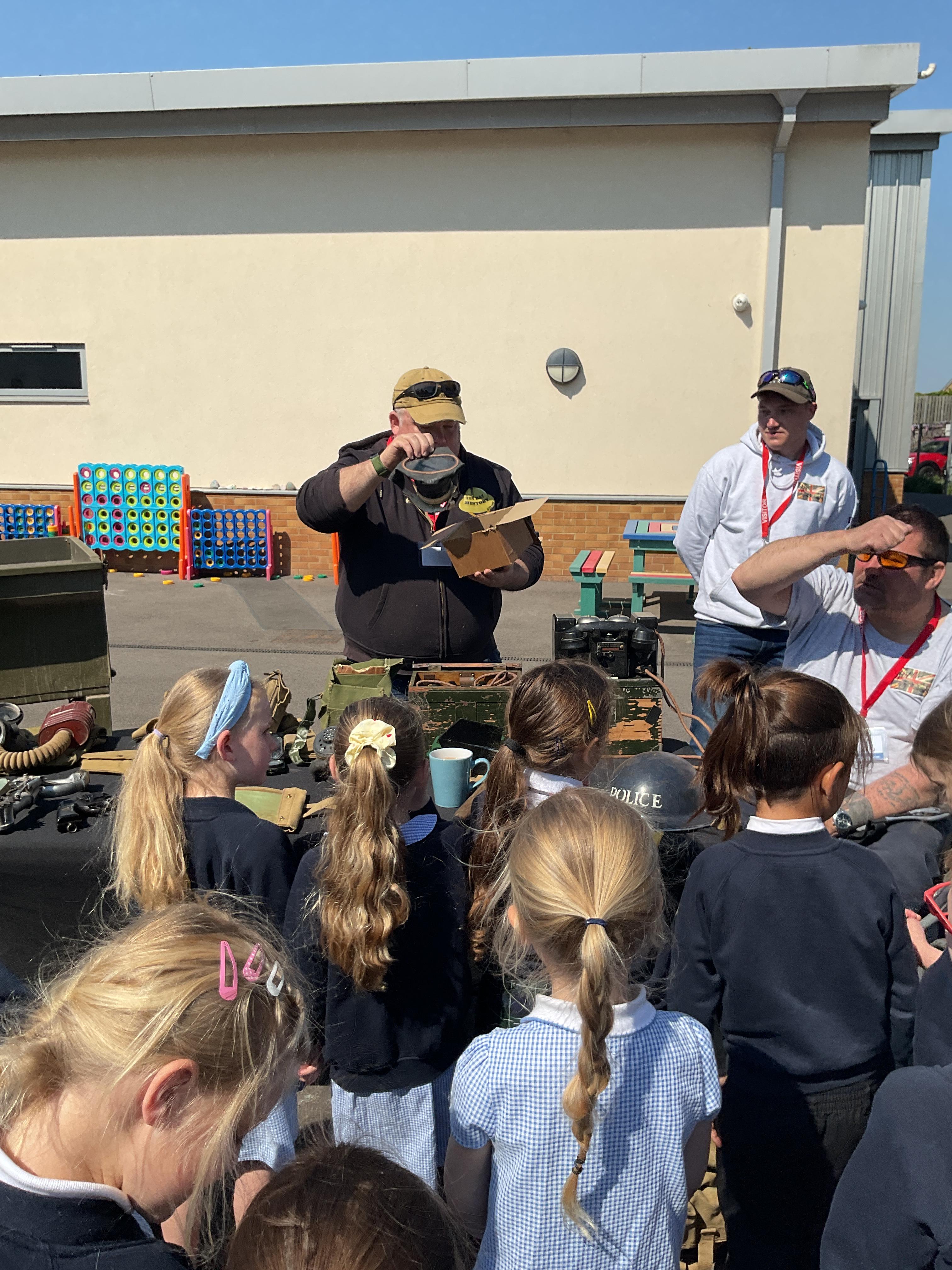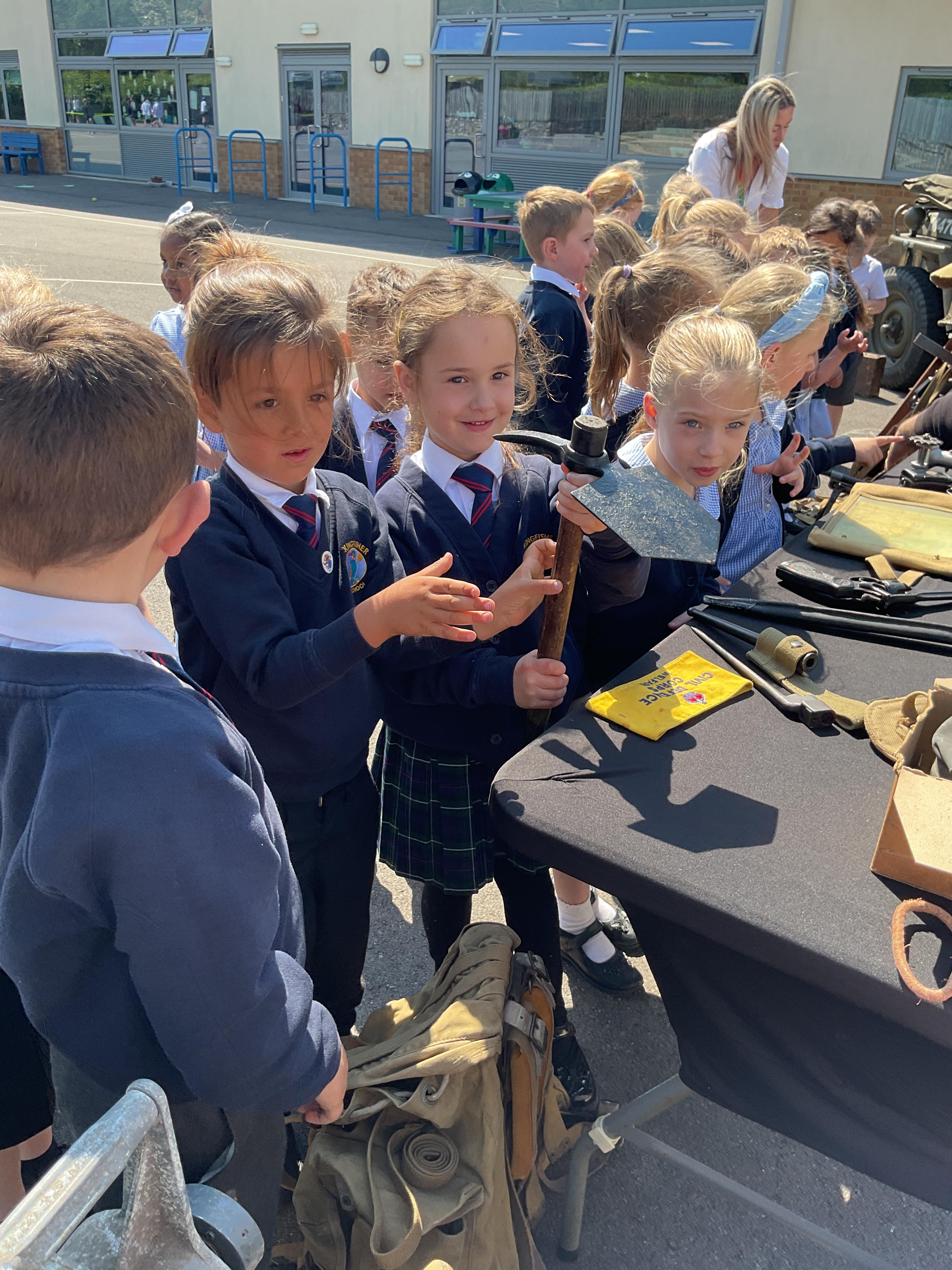 On the Friday after VE Day Mr Glentworth organised for some military vehicles to come into school to round off the  celebrations. We had a great time exploring all of the different artefacts they brought in and even got to have a turn in the jeep.
