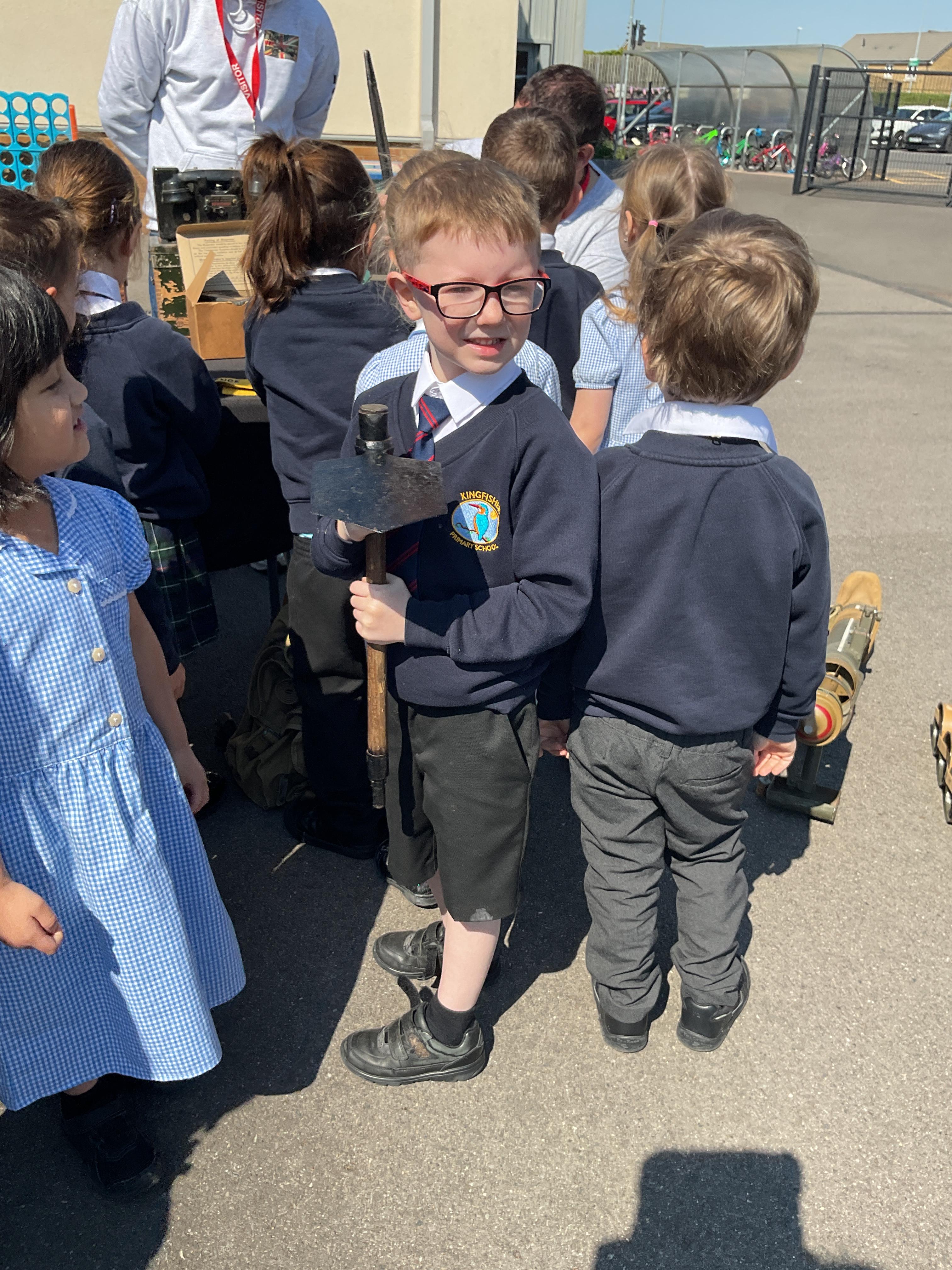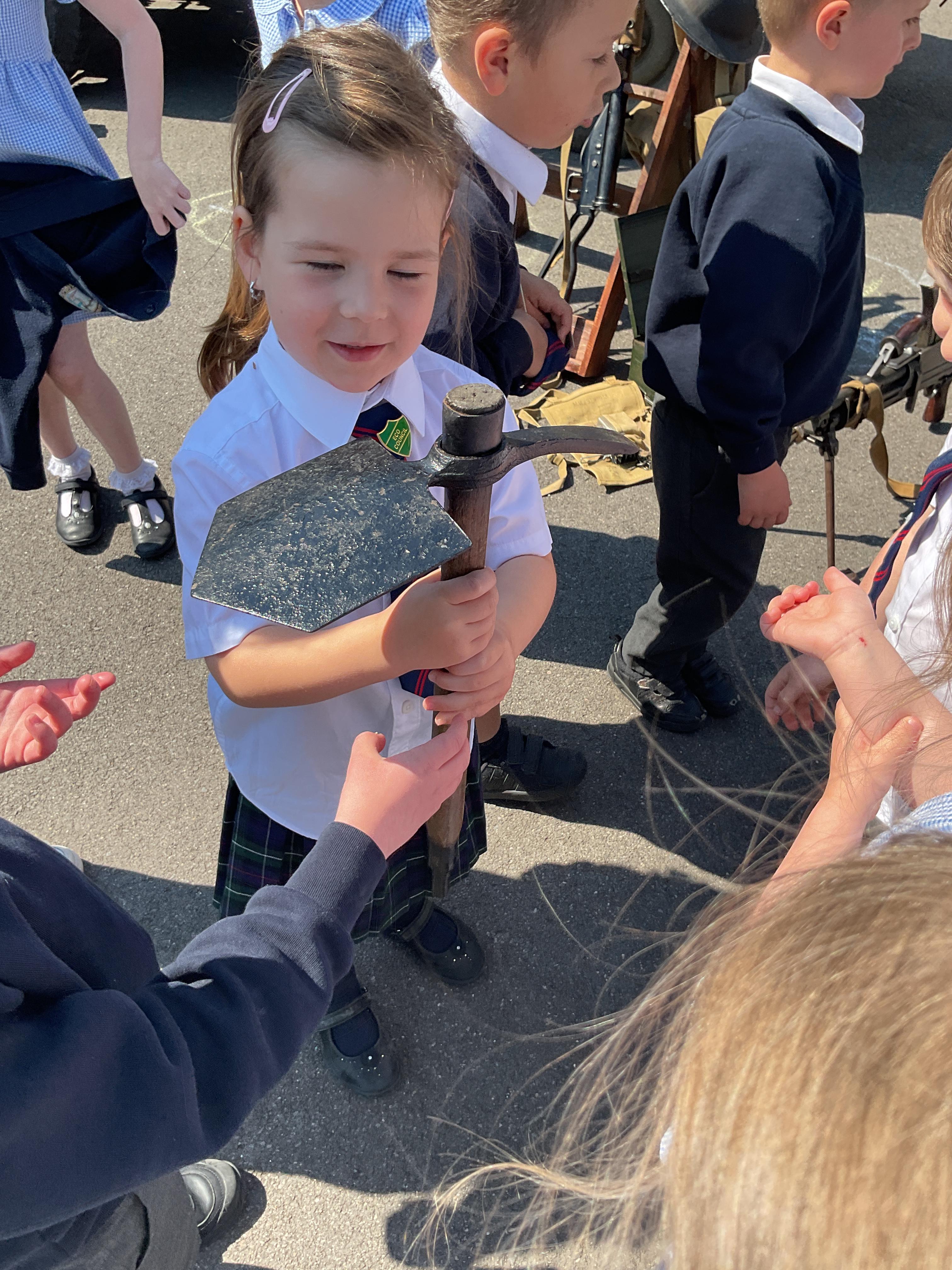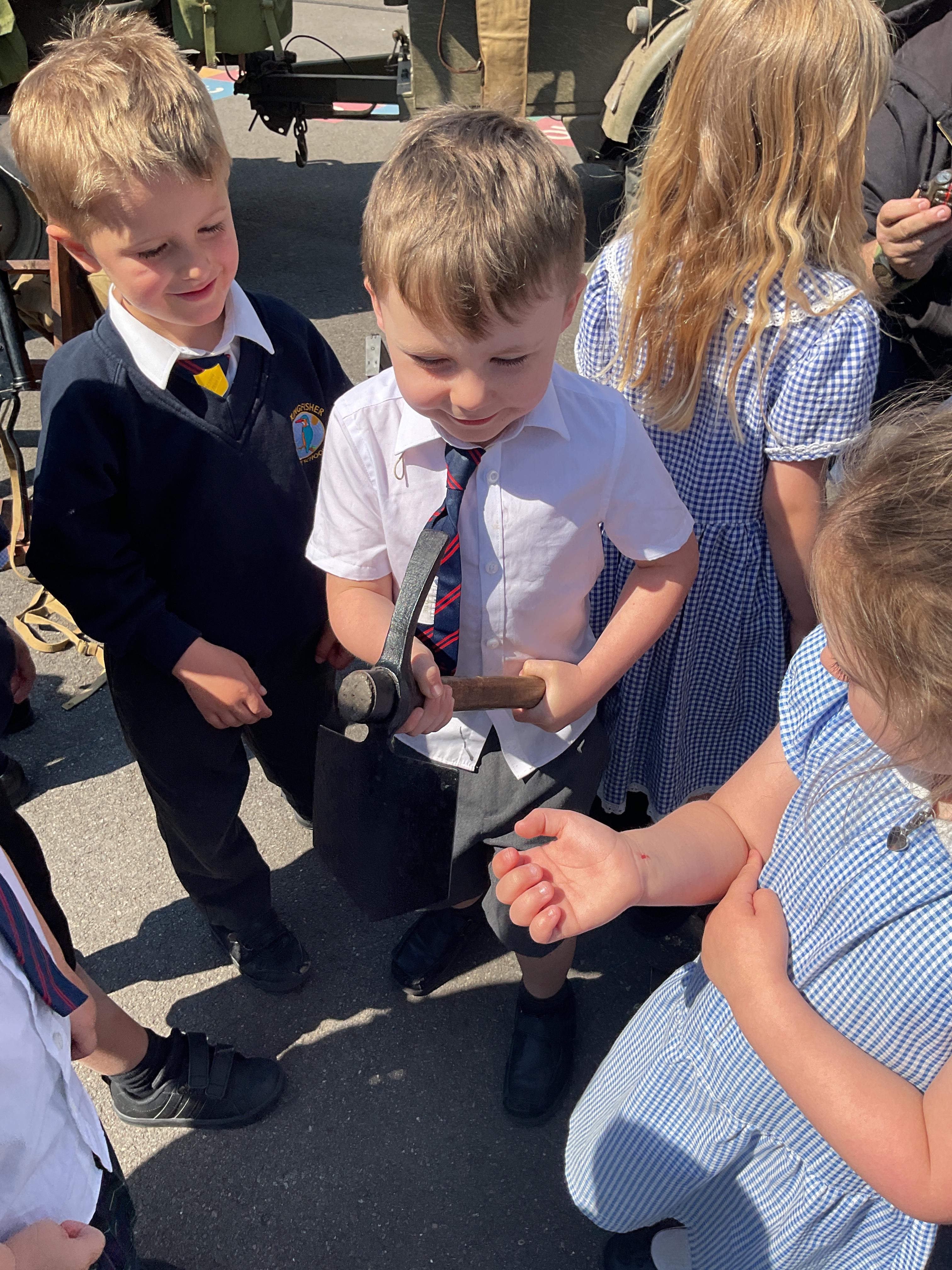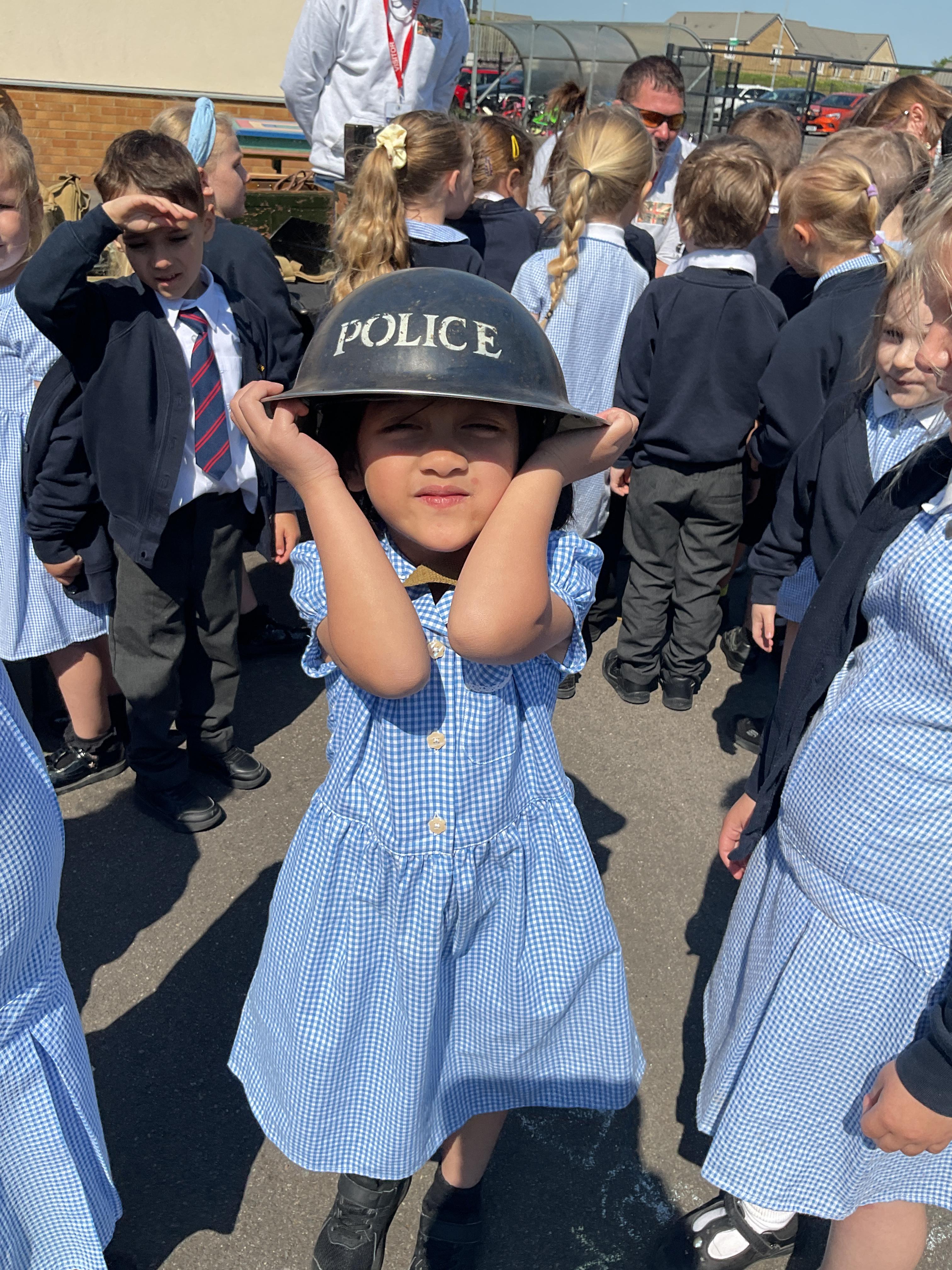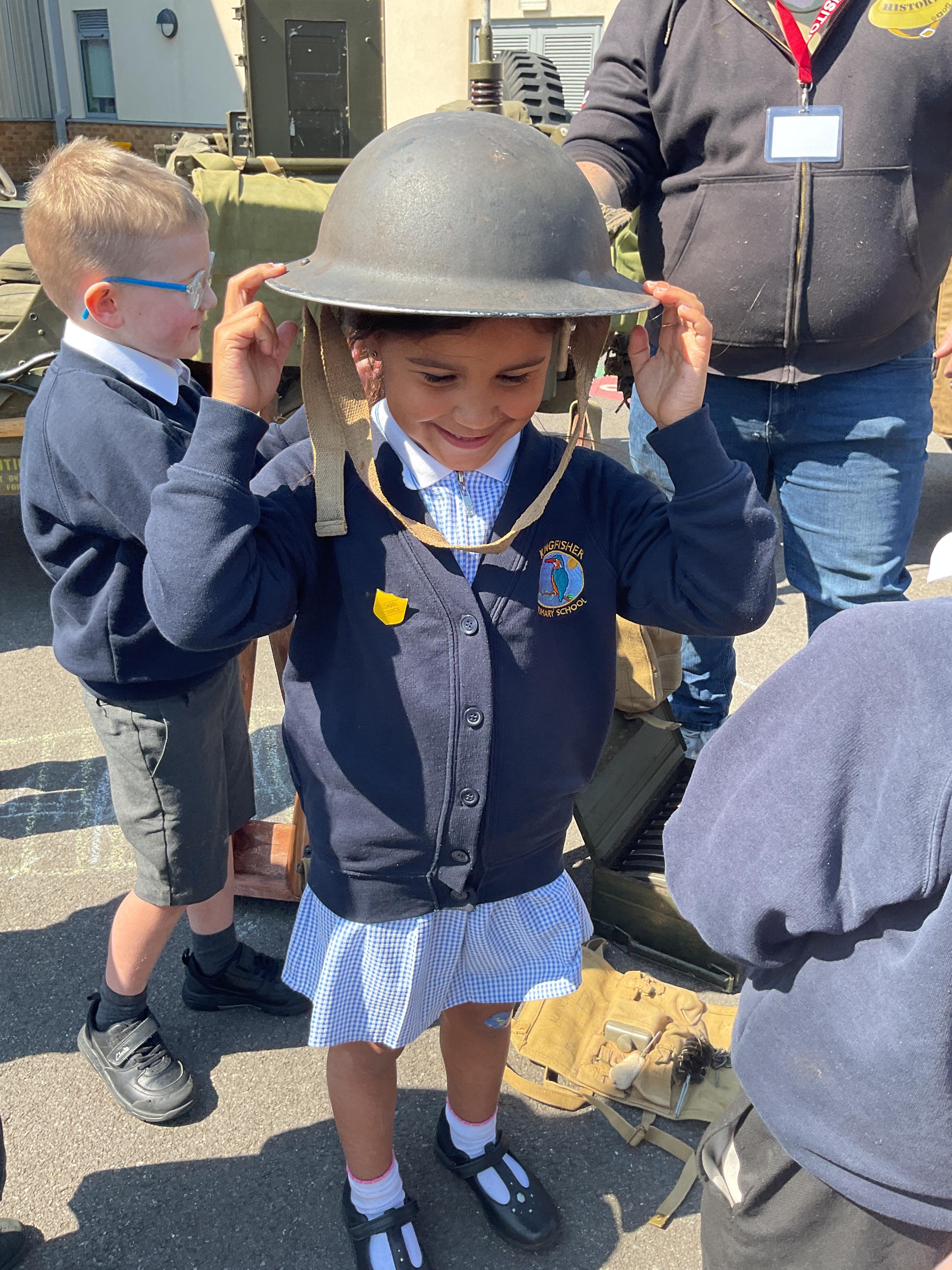 On the Friday after VE Day Mr Glentworth organised for some military vehicles to come into school to round off the  celebrations. We had a great time exploring all of the different artefacts they brought in and even got to have a turn in the jeep.