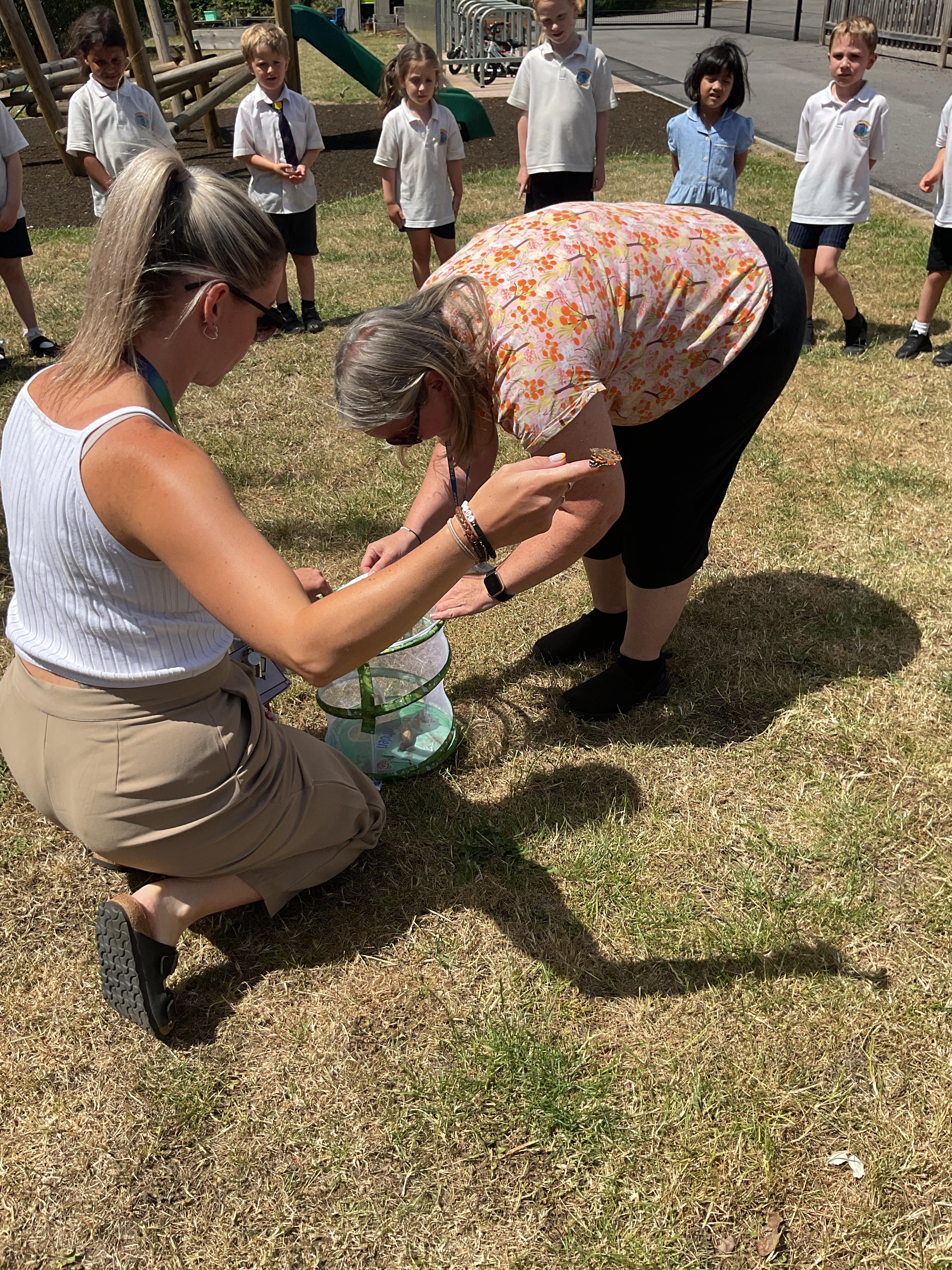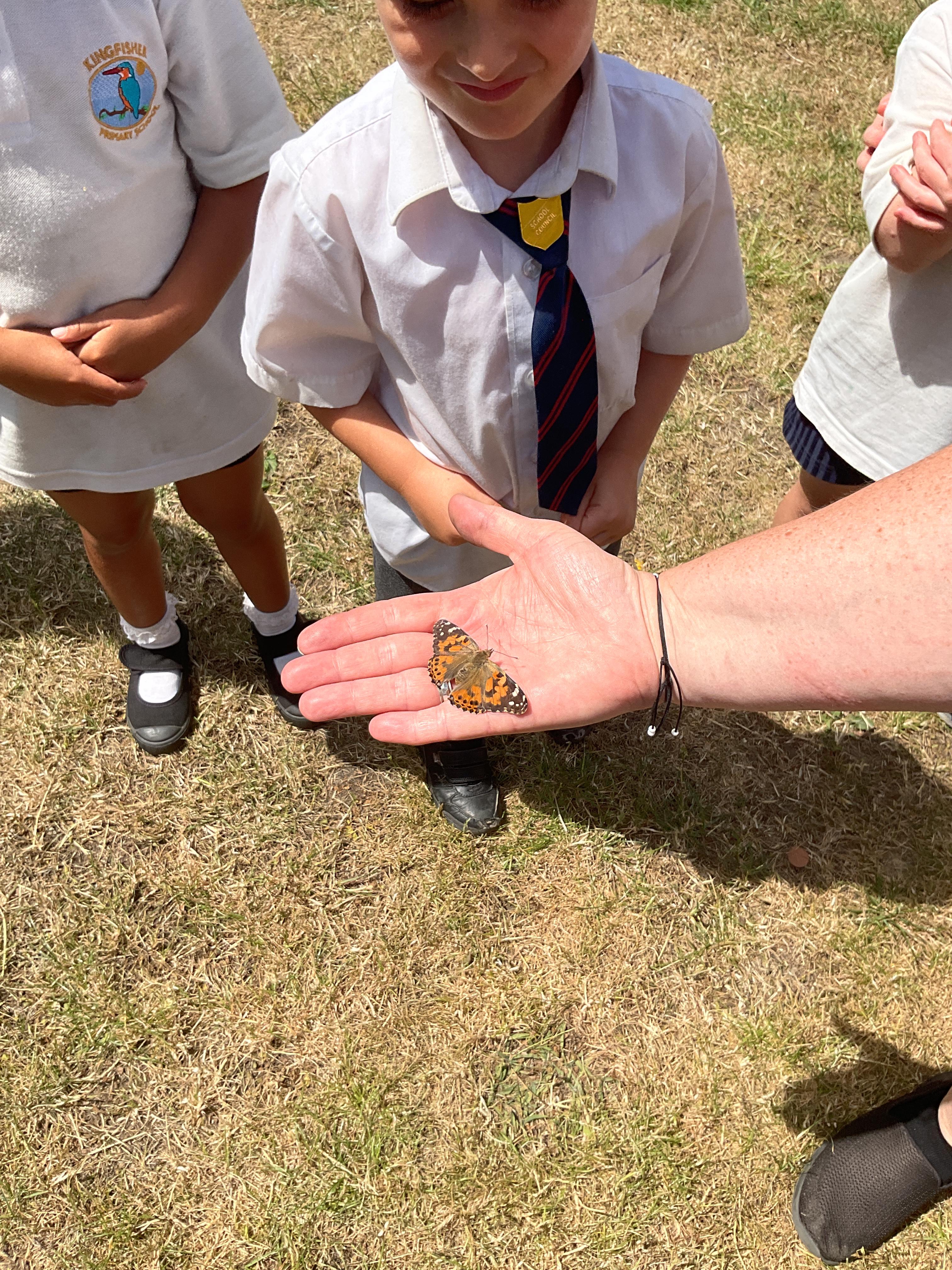 During our topic on mini beasts we got some caterpillars. We watched them grow and make their chrysalises before turning into butterflies. We then released the butterflies into our outdoor area.