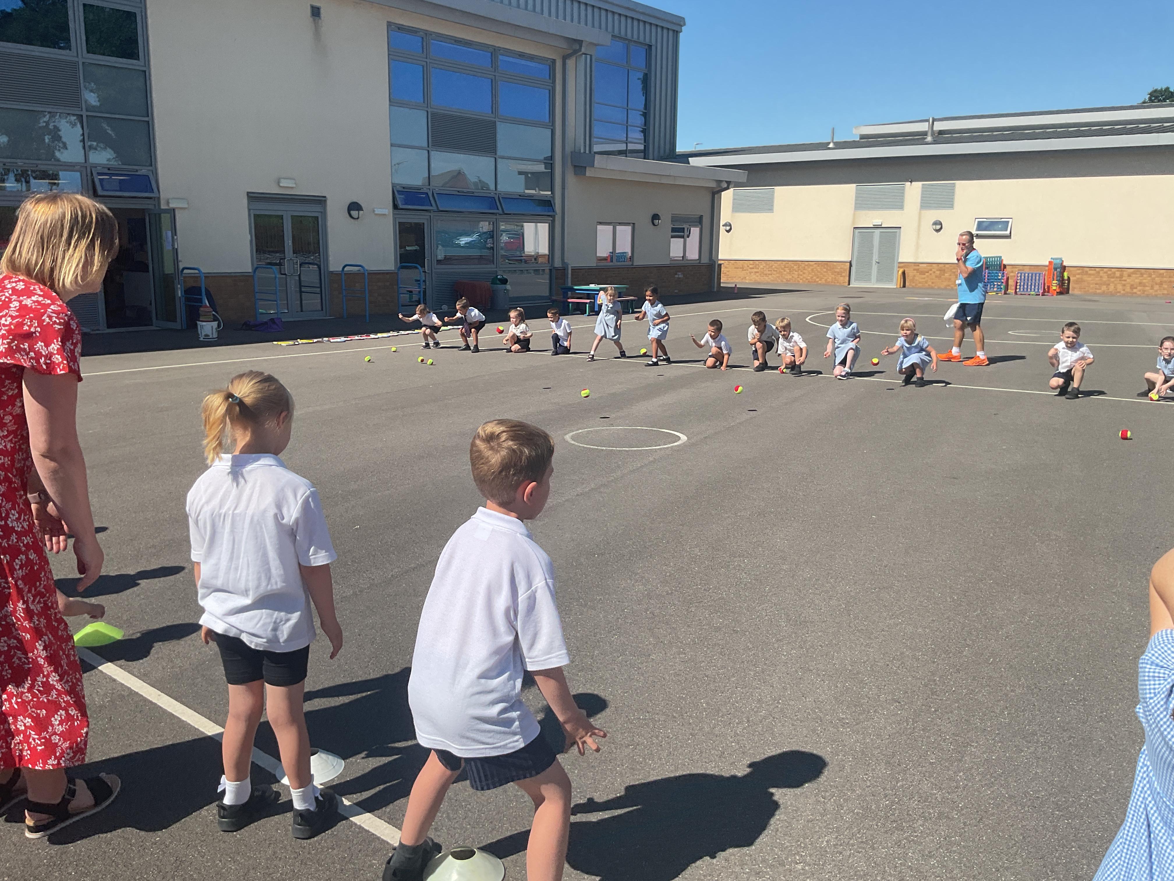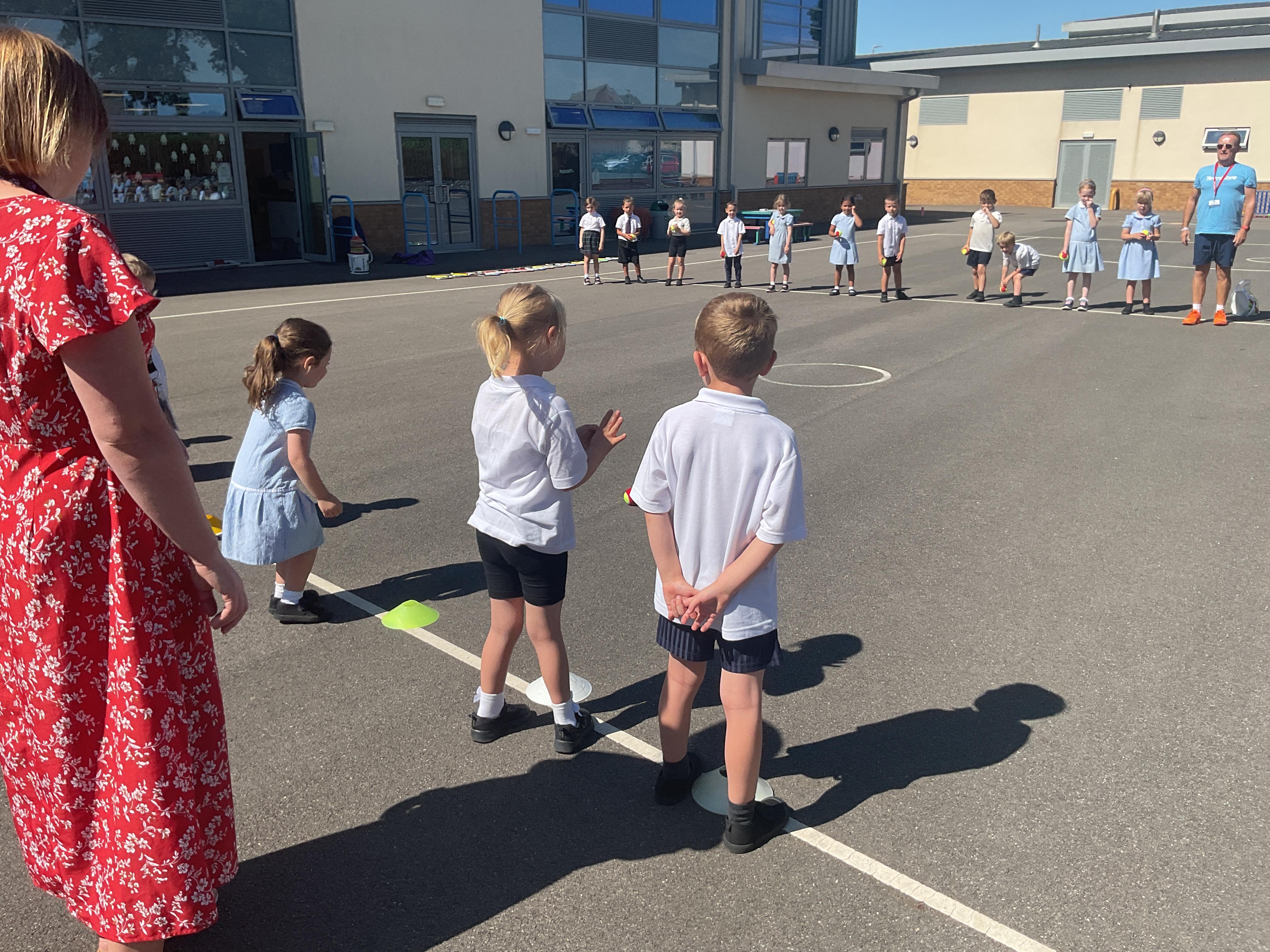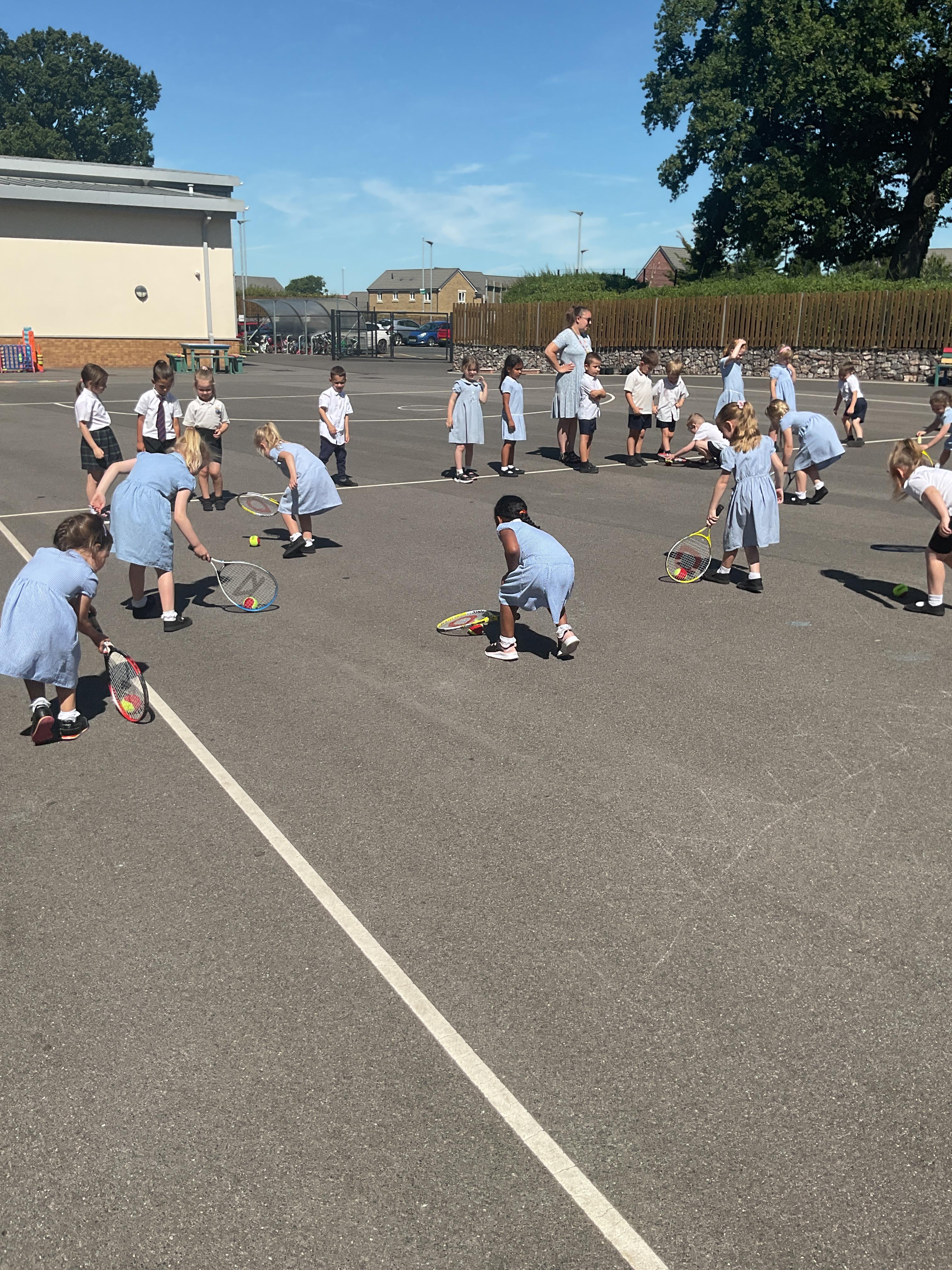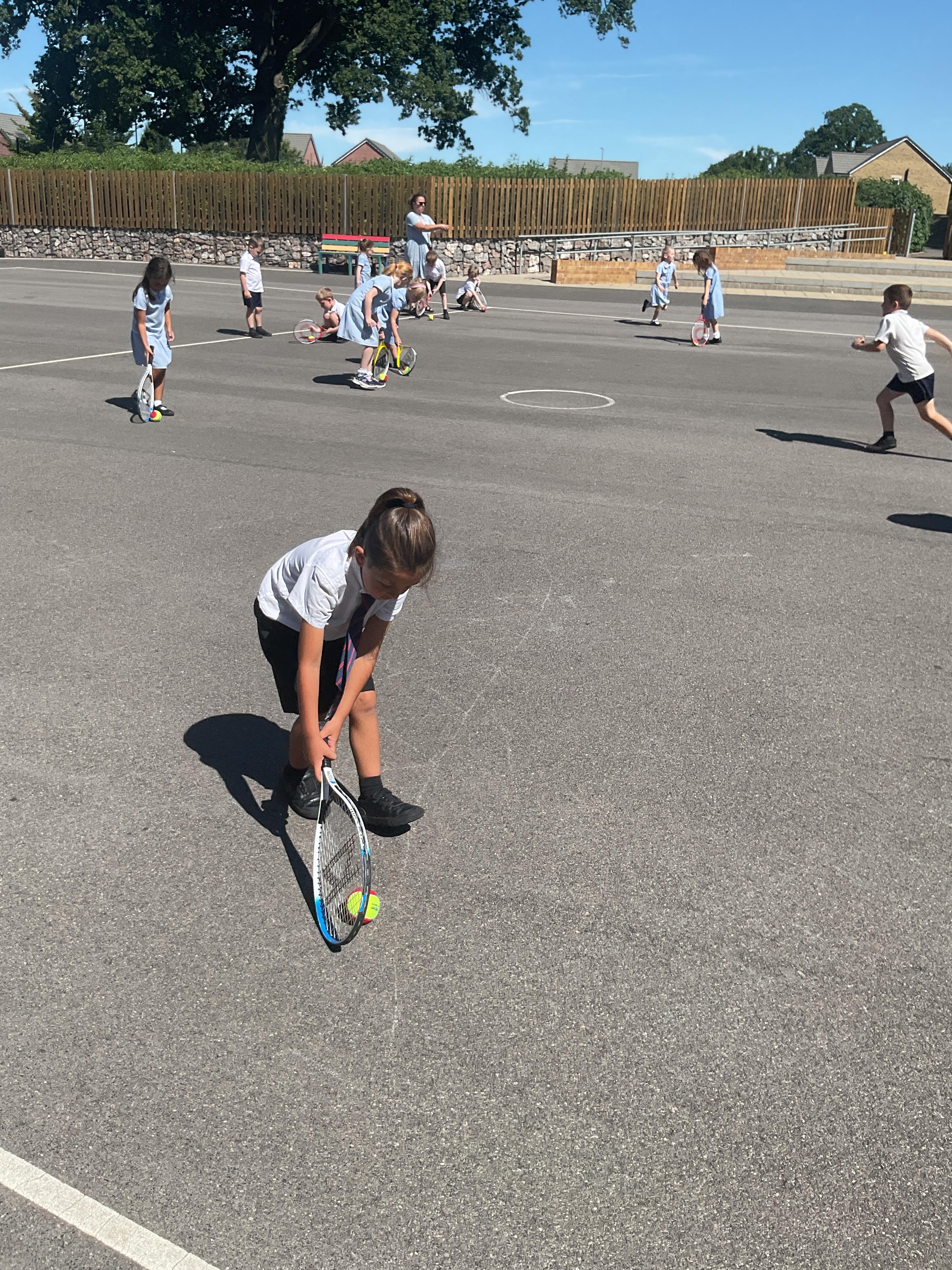 The children enjoyed taking part in some tennis coaching. They practised serves and returns using both their body and a racket and ball.